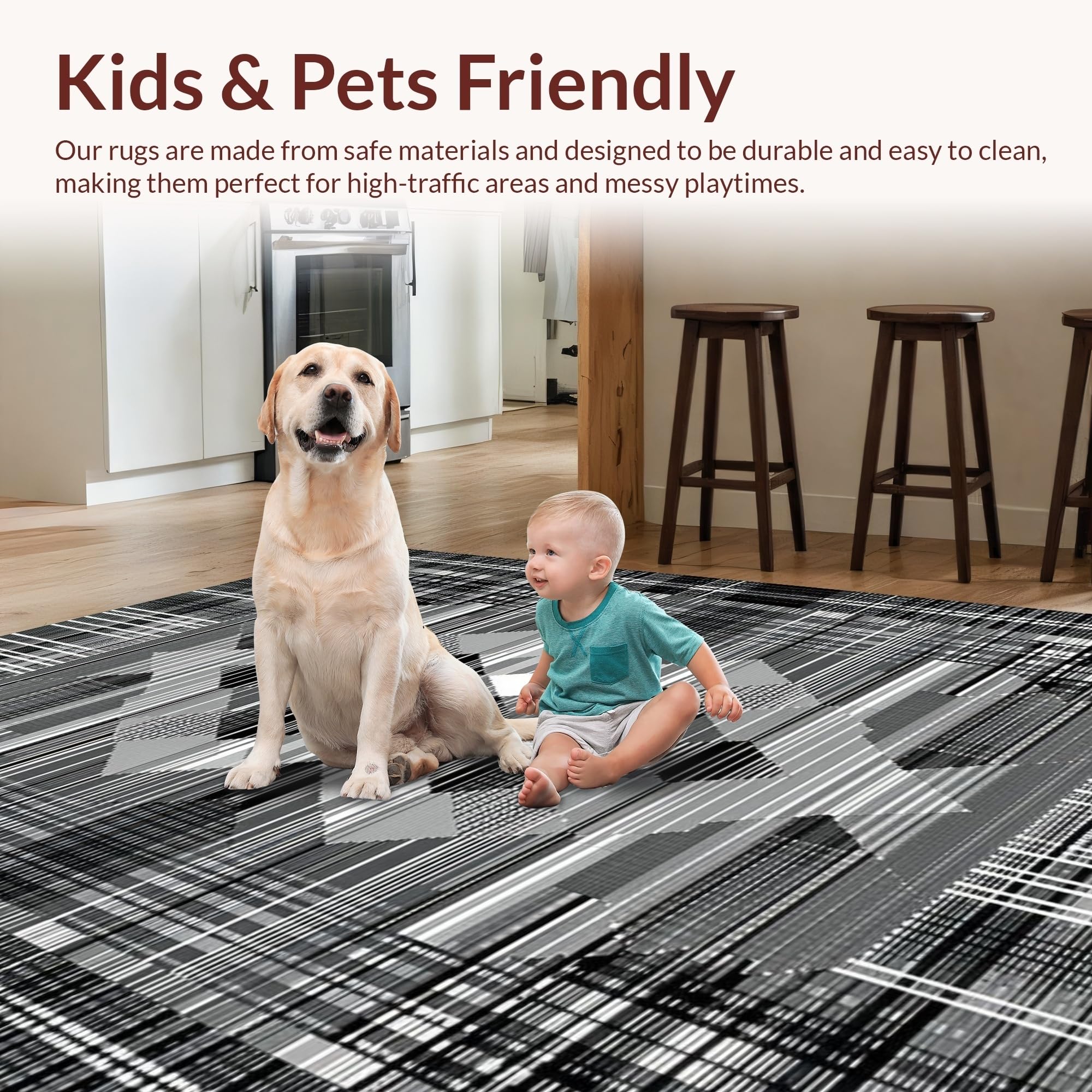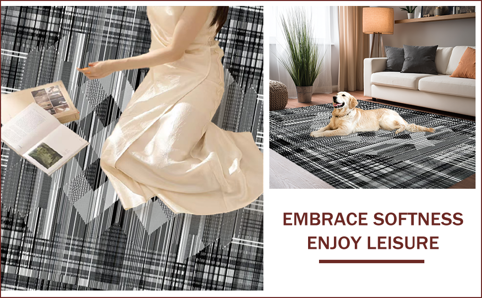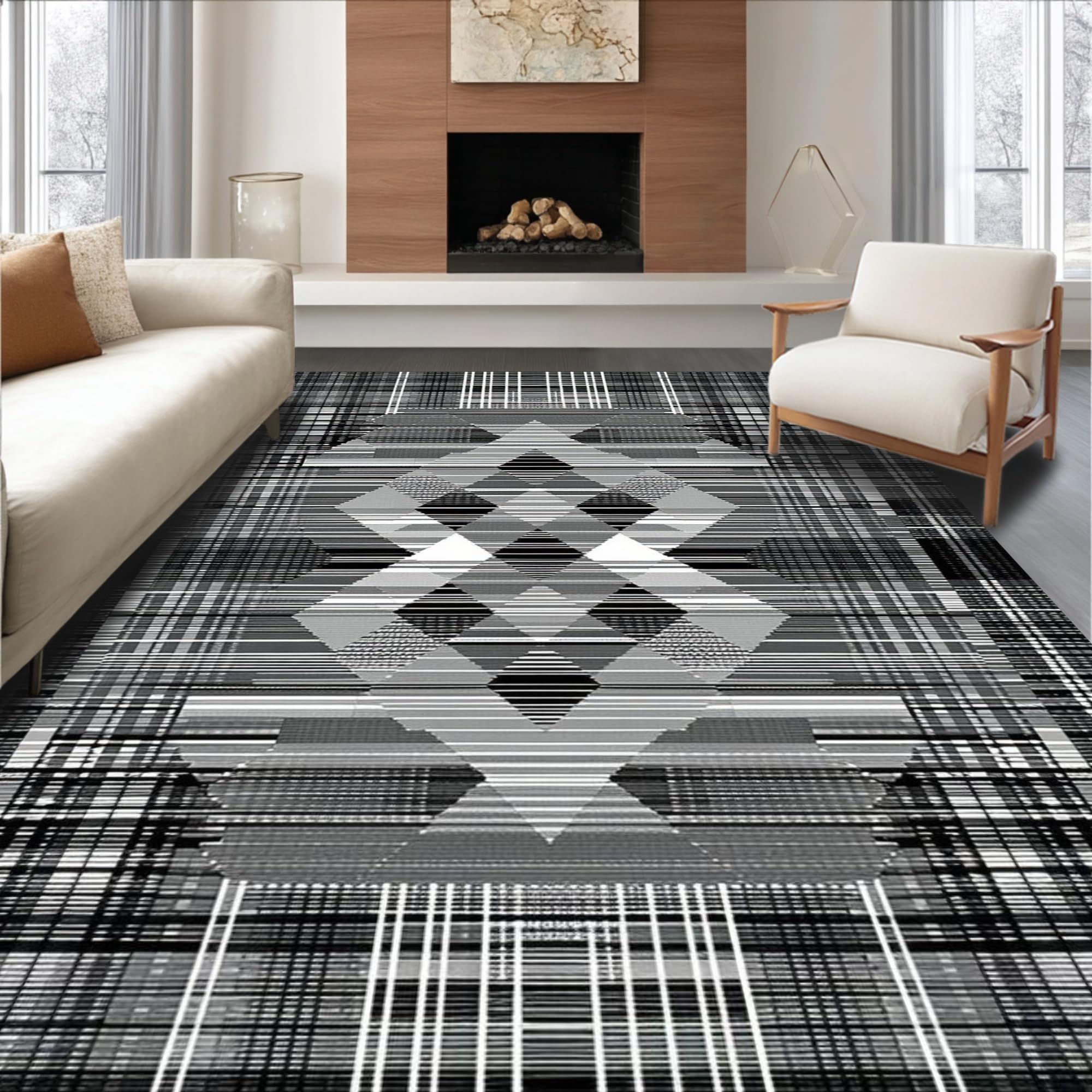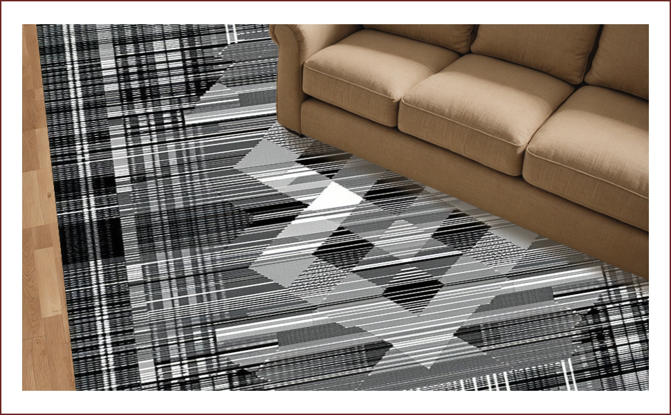 Ultra Soft Area Rug, Non Slip, Stain Resistant, Washable Area Rugs for Living Room, Bedroom, Sophisticated Modern Geometric Aesthetic(Gray) Overview: