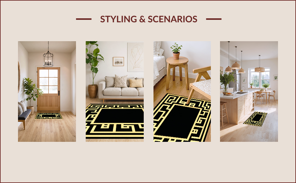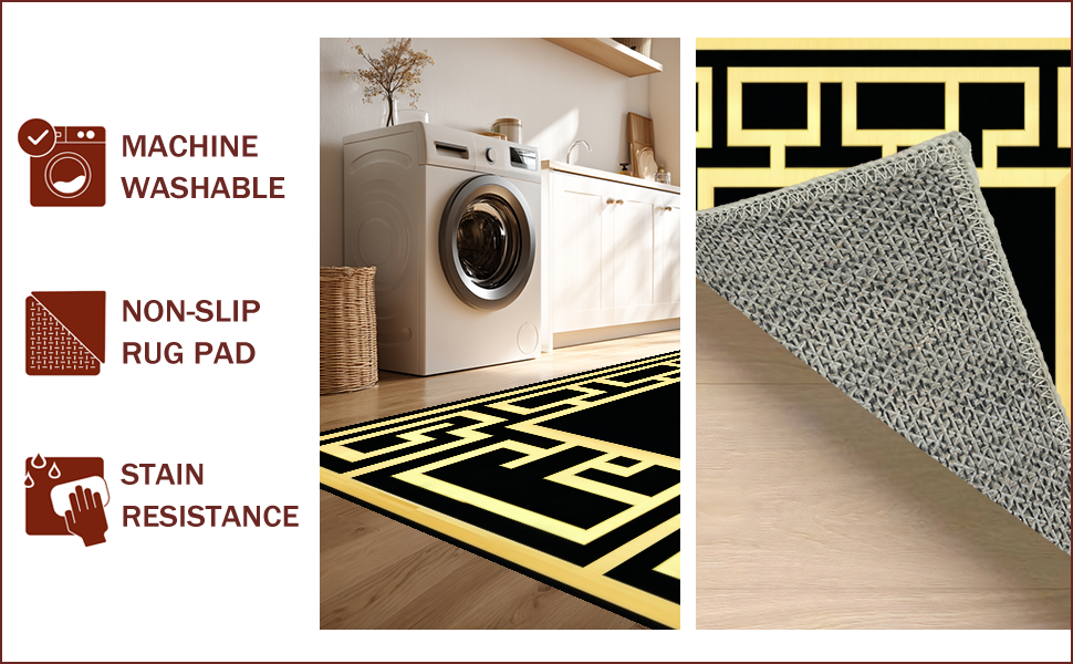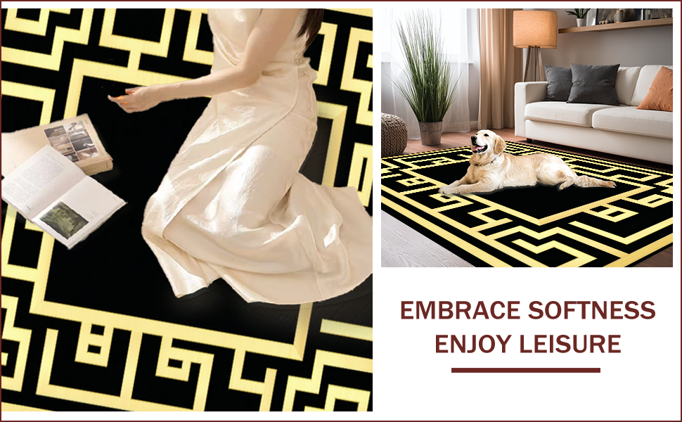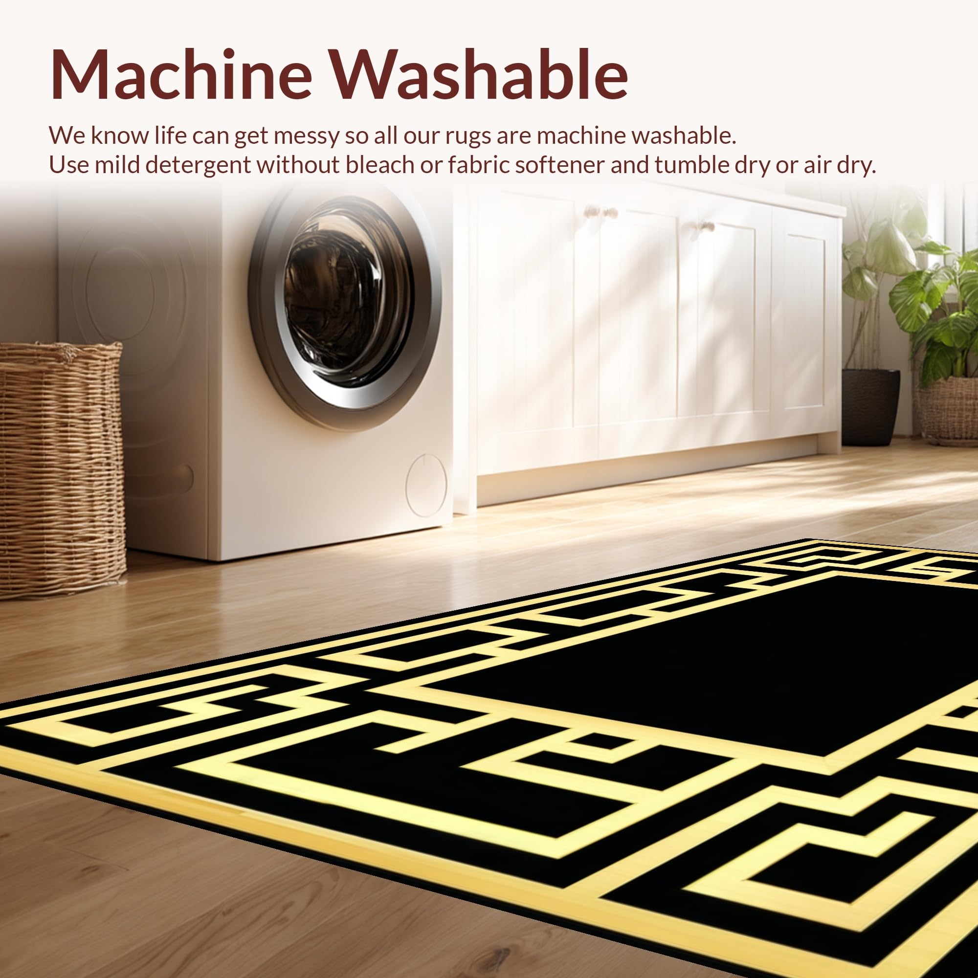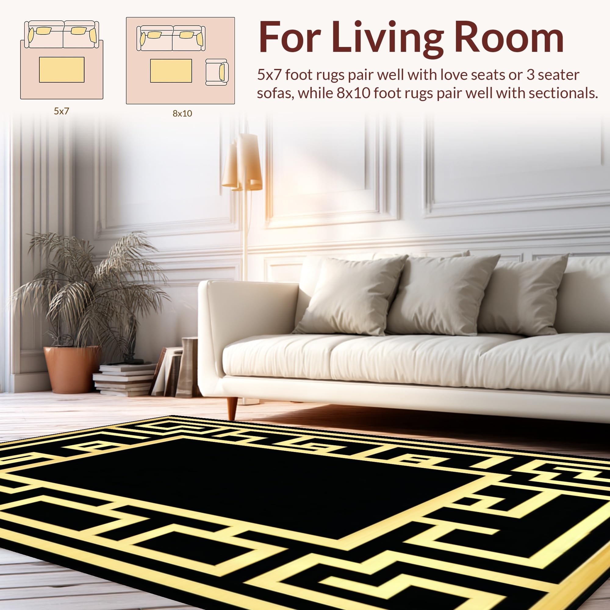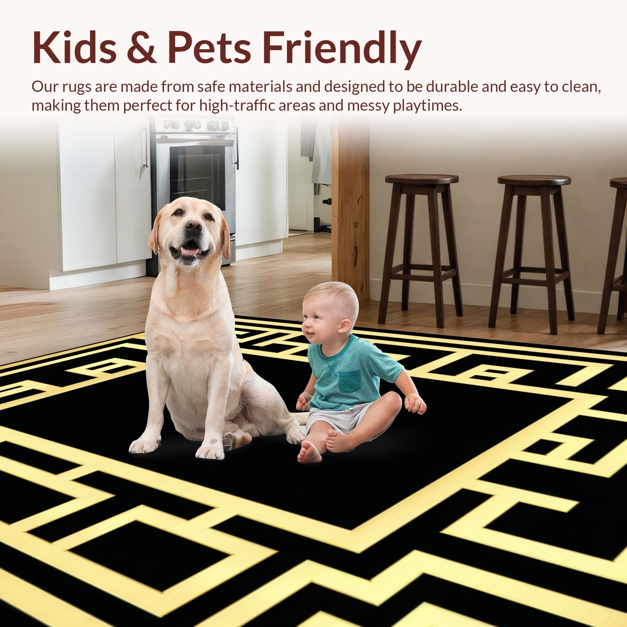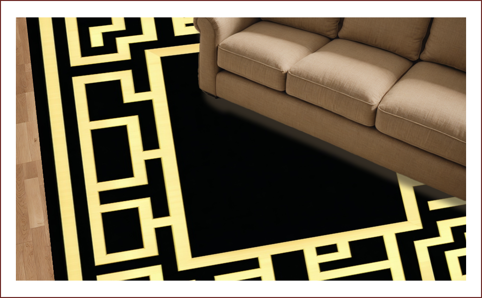 Ultra Soft Area Rug, Non Slip, Stain Resistant, Washable Area Rugs for Living Room, Bedroom, Sophisticated Modern Greek Key Motif(Gold) Overview: