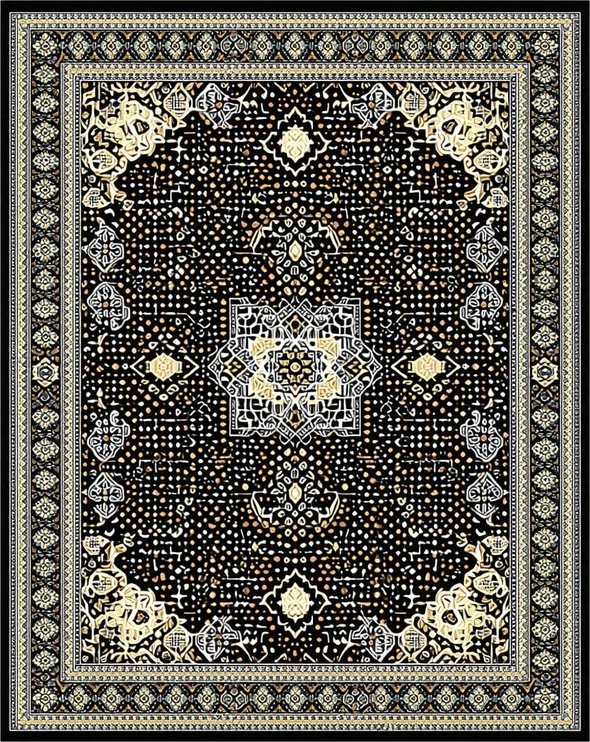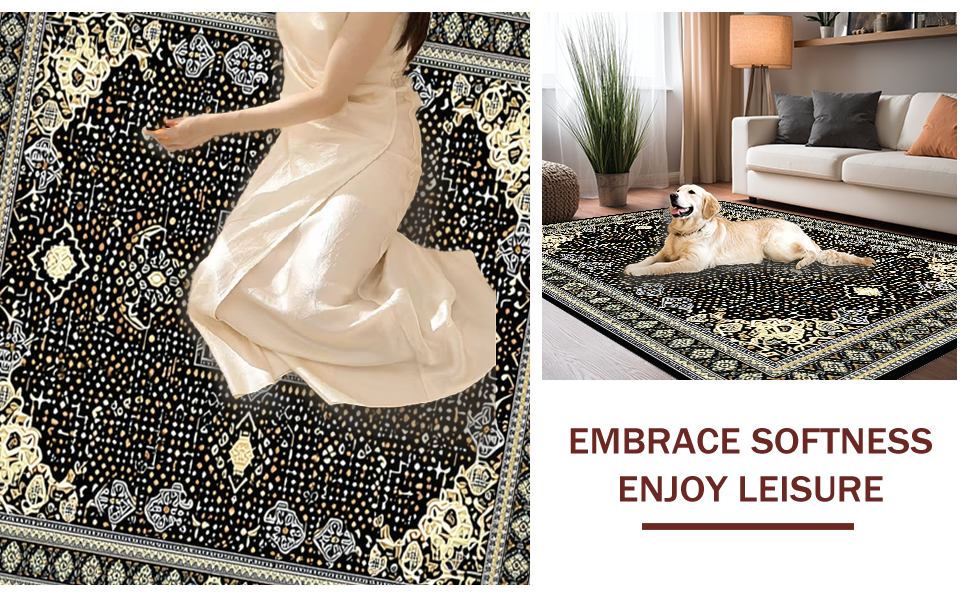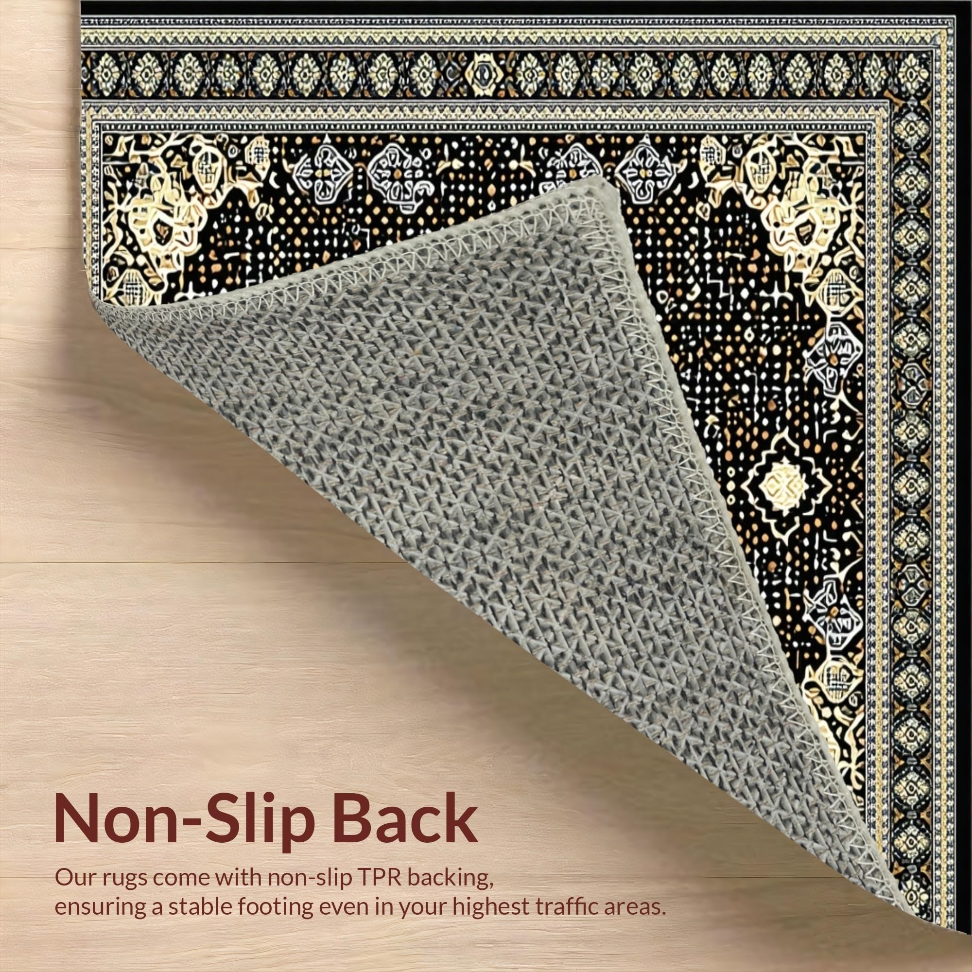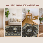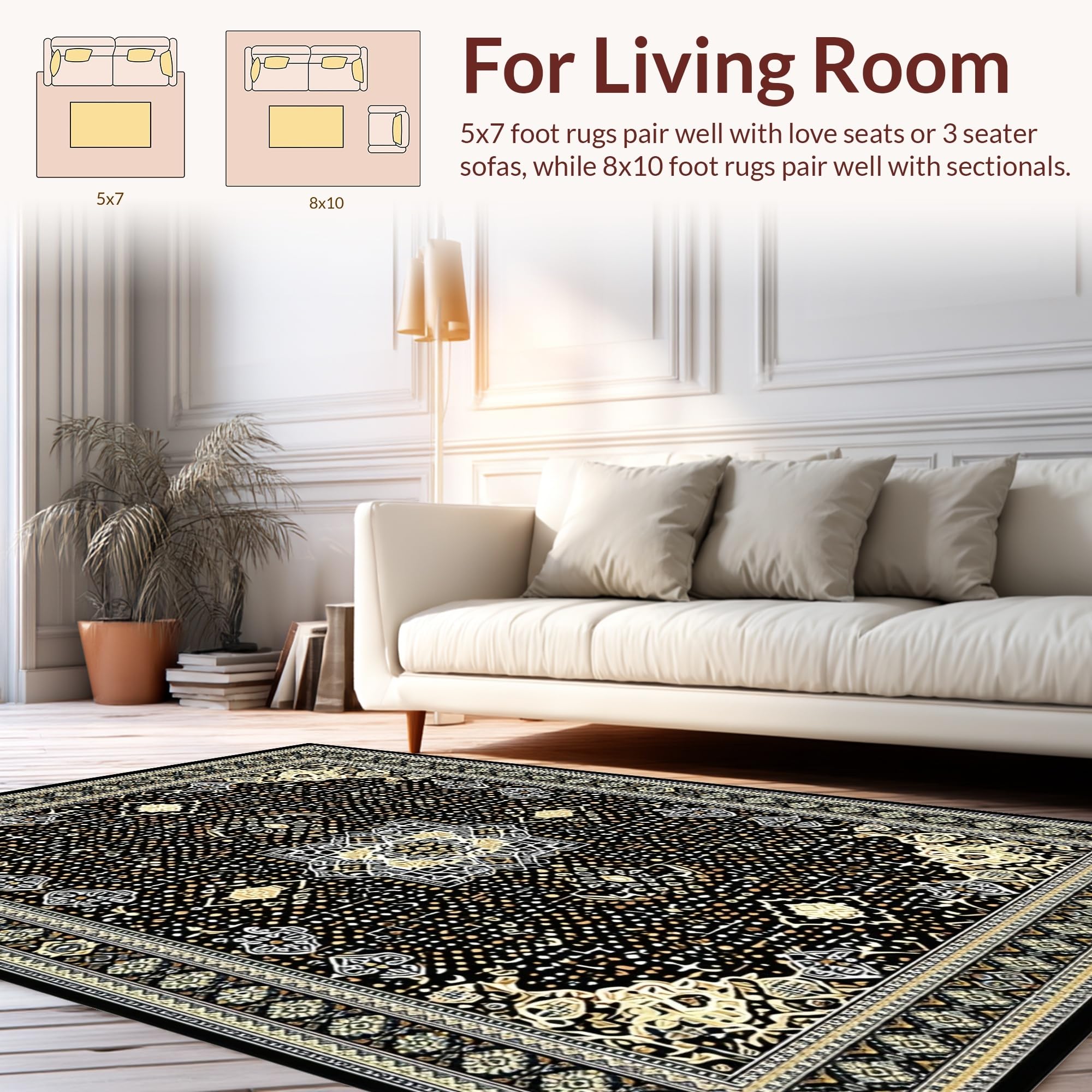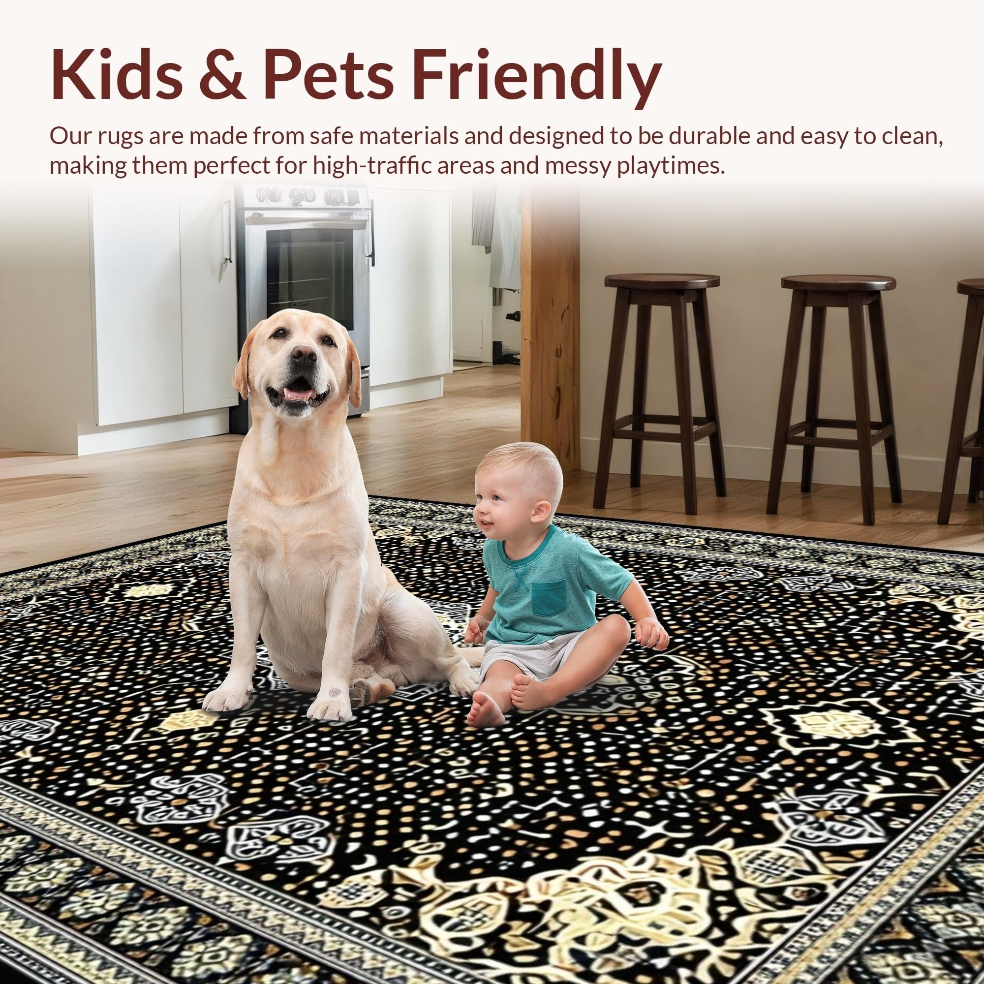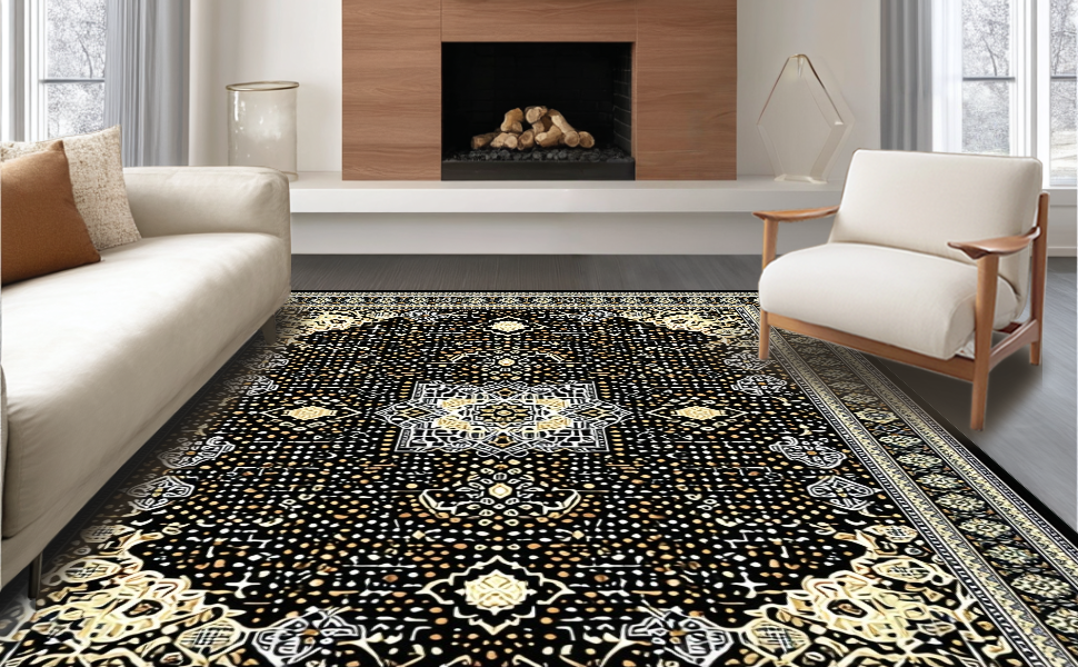 Ultra Soft Area Rug, Non Slip, Stain Resistant, Washable Area Rugs for Living Room, Bedroom, Sophisticated Monochrome Ogee Design(Black) Overview: