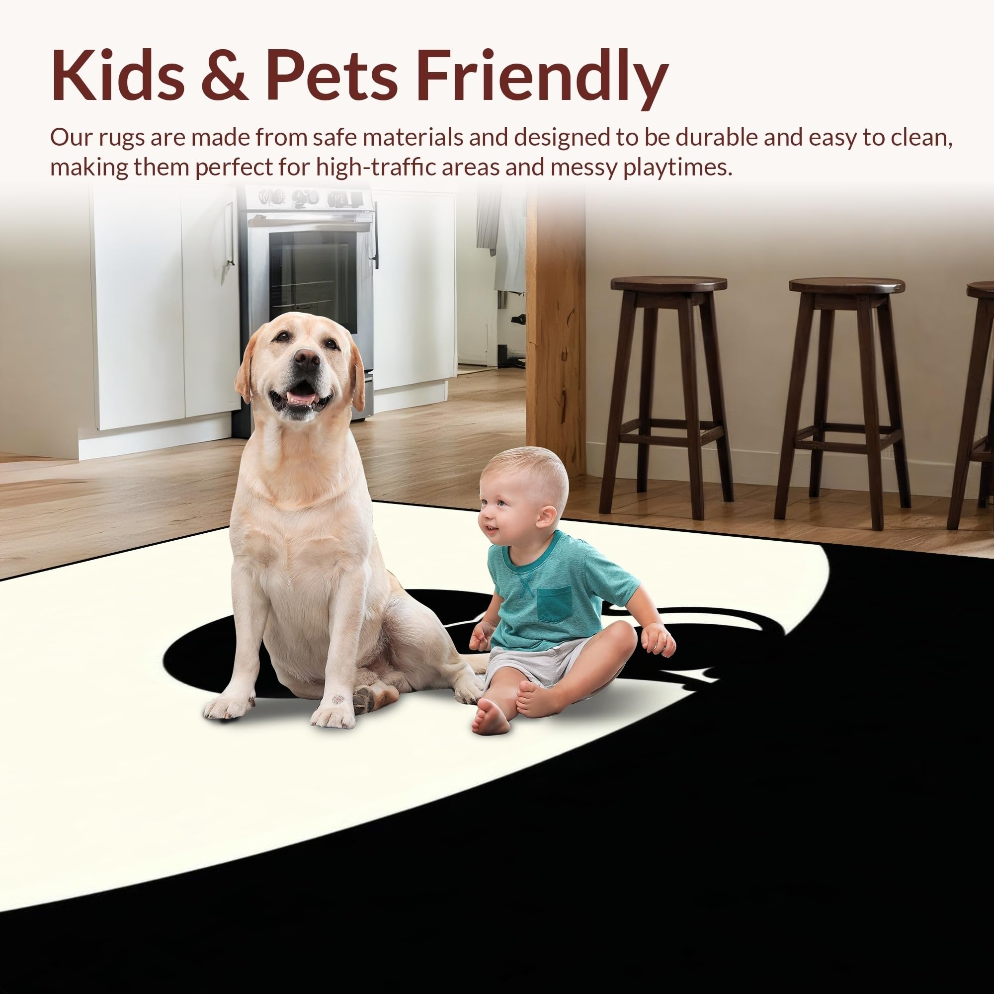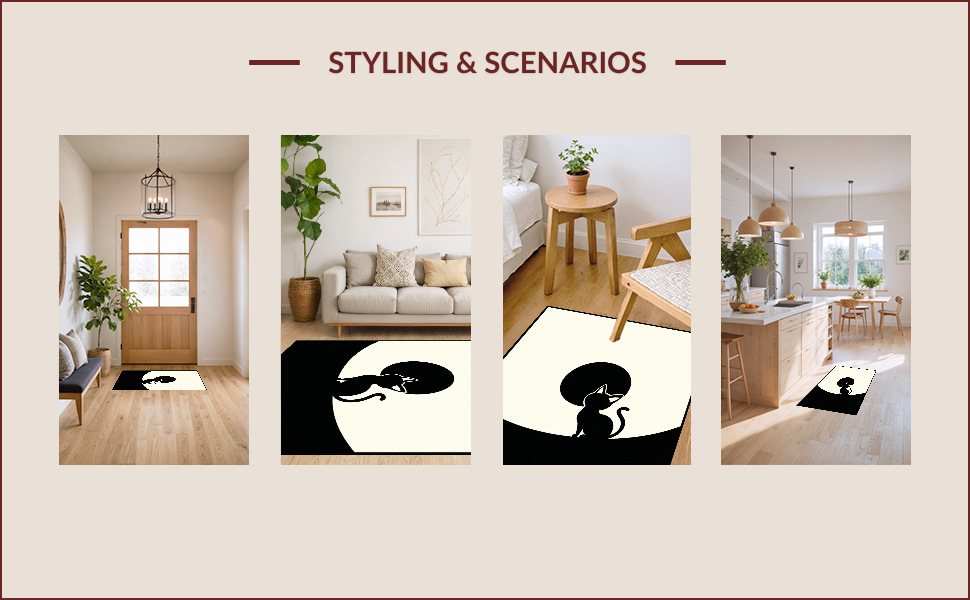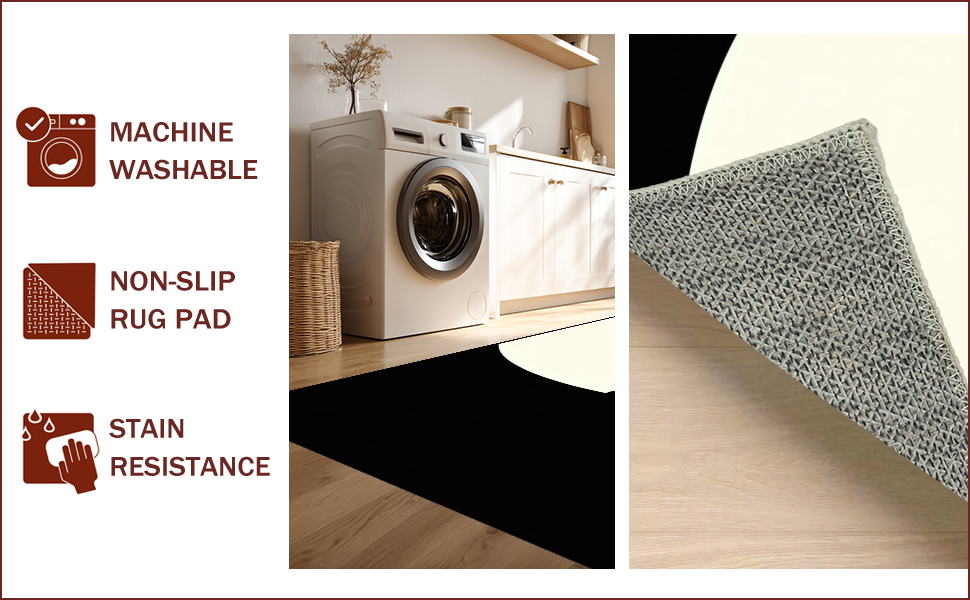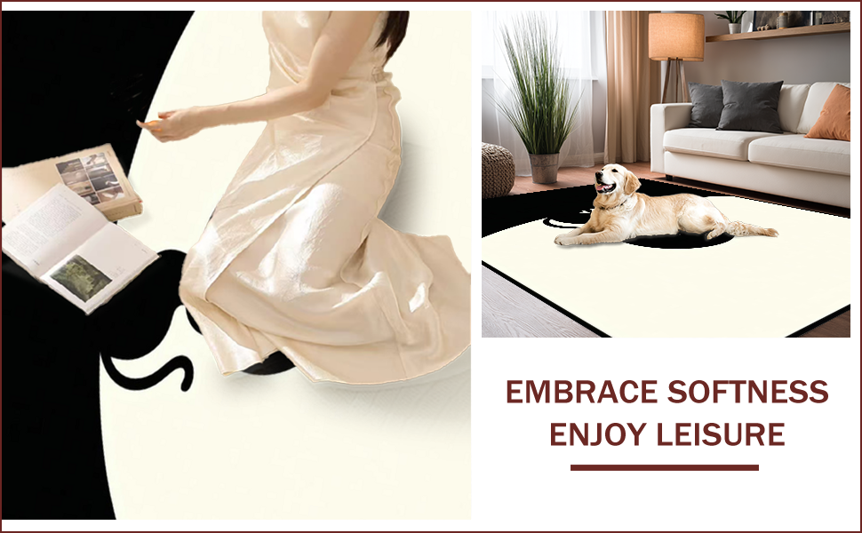 Ultra Soft Area Rug, Non Slip, Stain Resistant, Washable Area Rugs for Living Room, Bedroom, Sophisticated Monochrome Yin Yang(Black) Overview:
