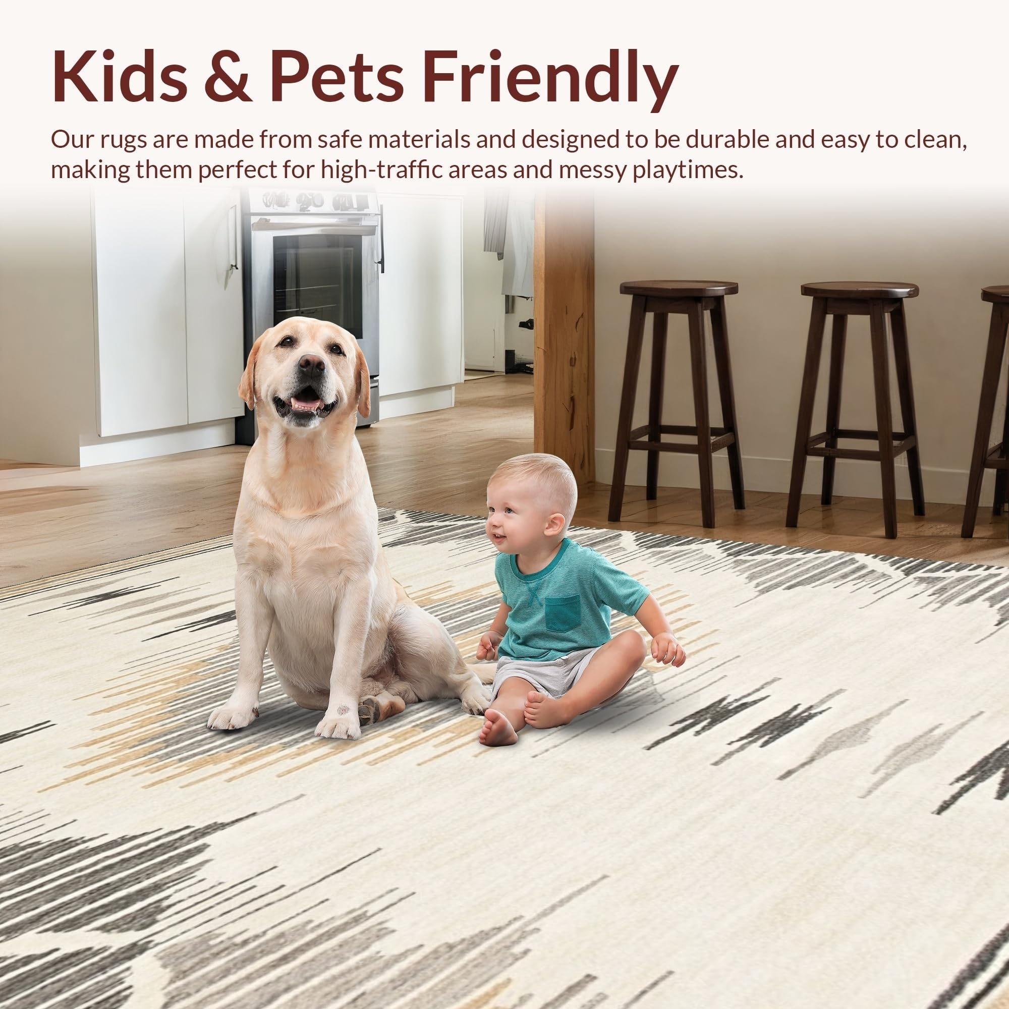 Ultra Soft Area Rug, Non Slip, Stain Resistant, Washable Area Rugs for Living Room, Bedroom, Sophisticated Muted Animal Print(Beige) Overview: