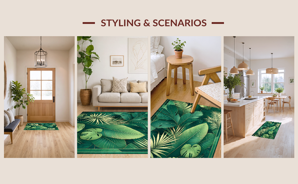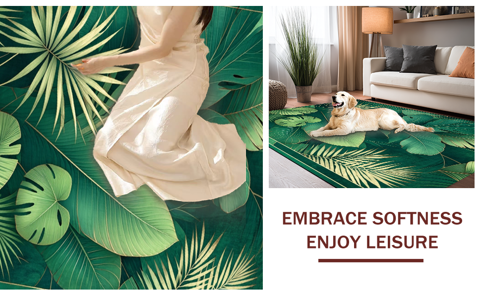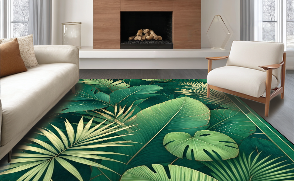 Ultra Soft Area Rug, Non Slip, Stain Resistant, Washable Area Rugs for Living Room, Bedroom, Sophisticated Nature Inspired Décor(Green) Overview:
