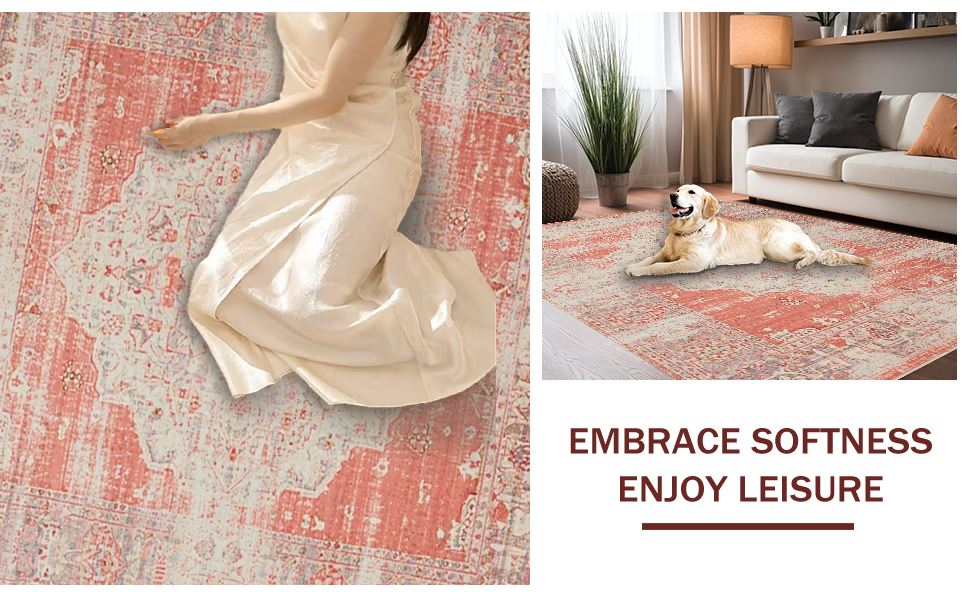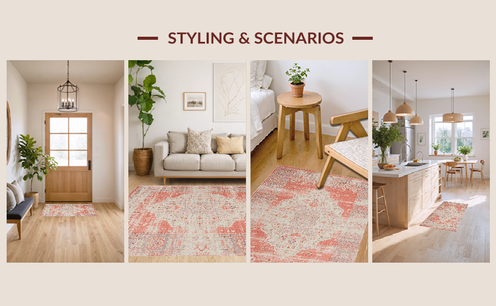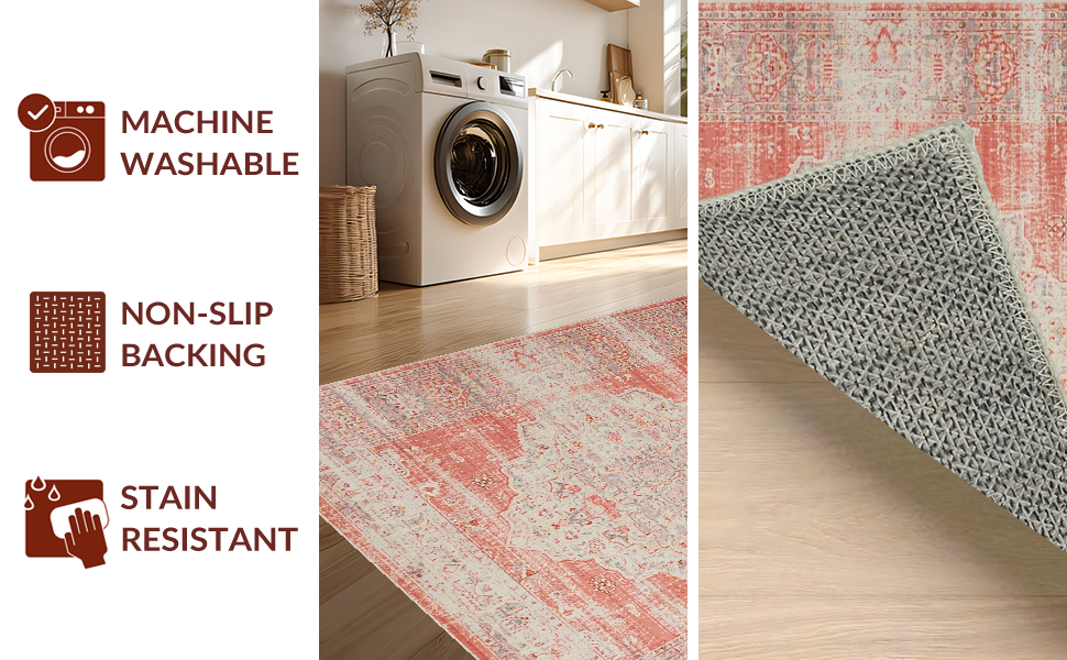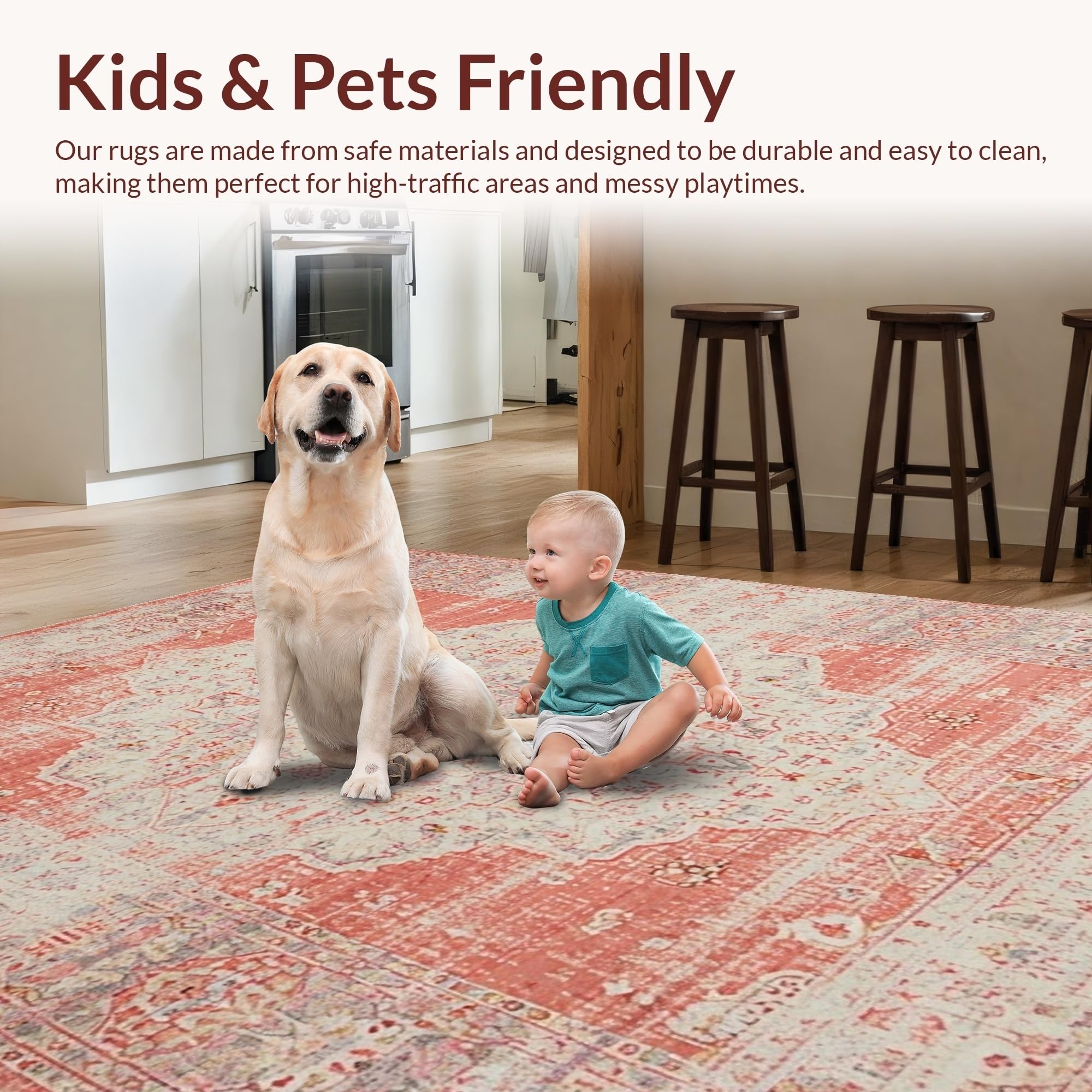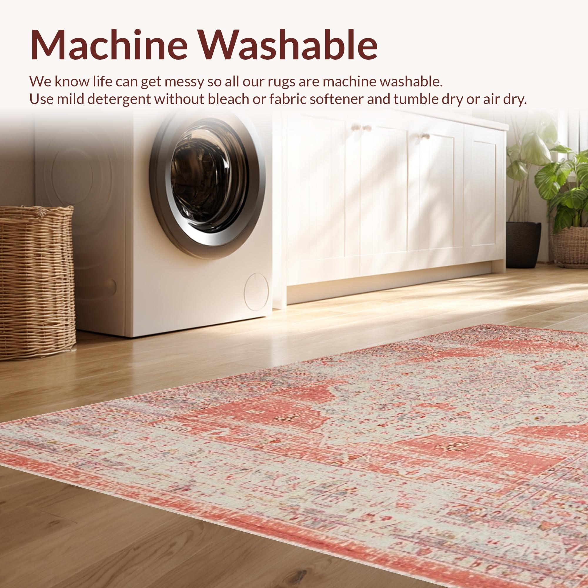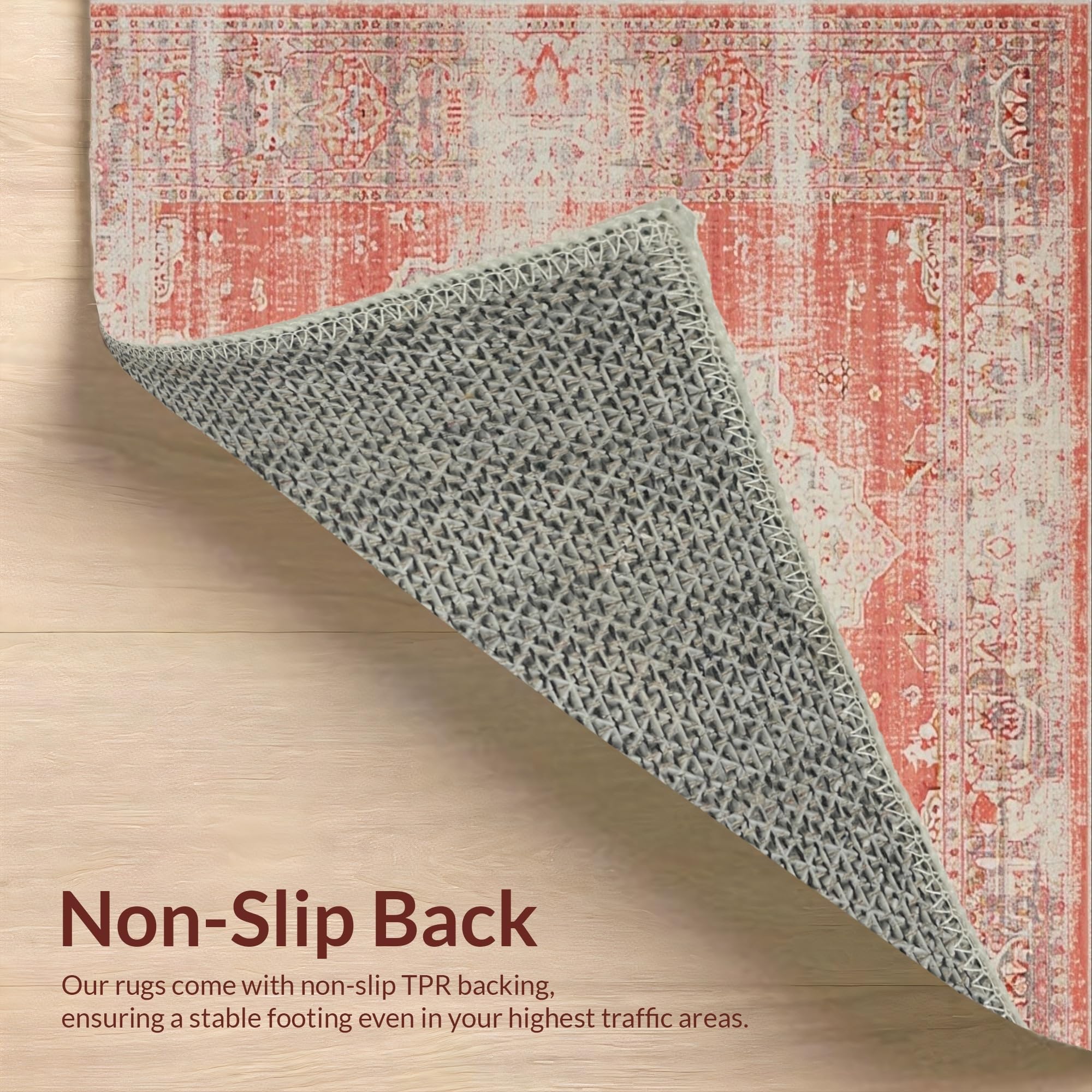 Ultra Soft Area Rug, Non Slip, Stain Resistant, Washable Area Rugs for Living Room, Bedroom, Sophisticated Neutral Floral Design(Red) Overview: