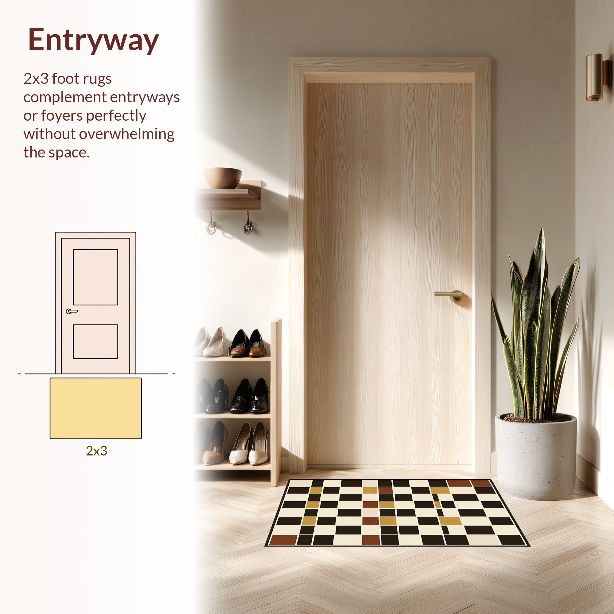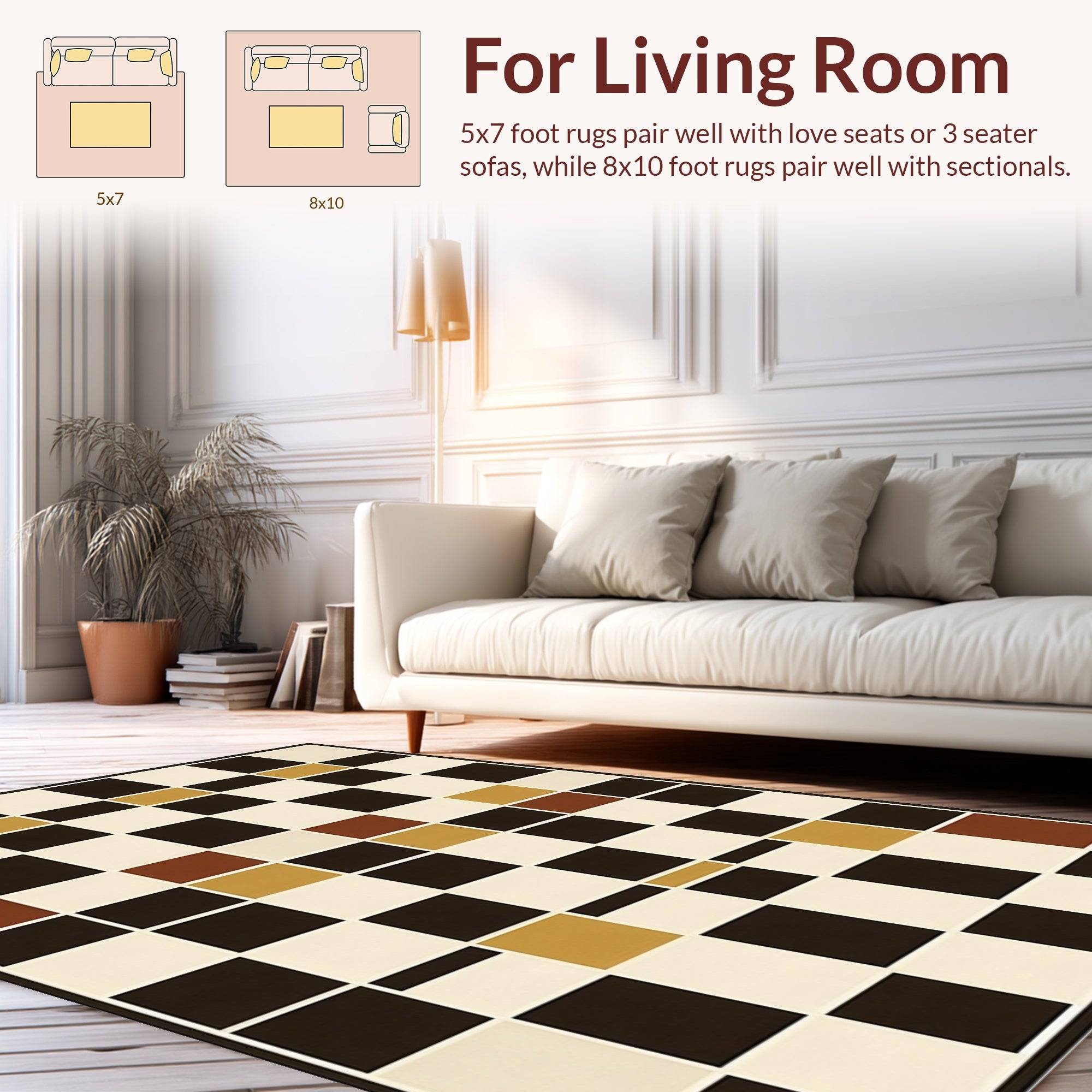 Flatwoven High Traffic Area Rug, Sophisticated Neutral Plaid Motif, Non Slip, Stain Resistant, Washable Area Rugs for Living Room, Bedroom (Brown) Overview: