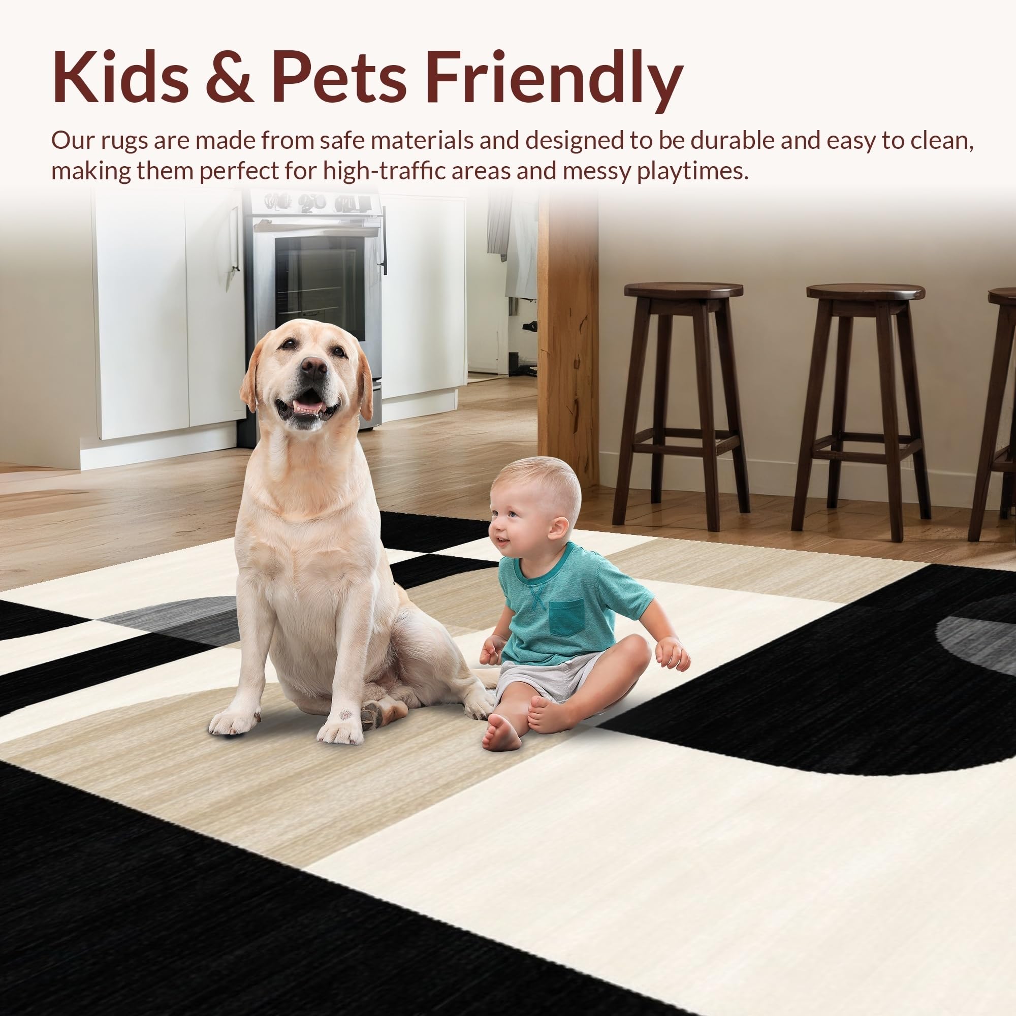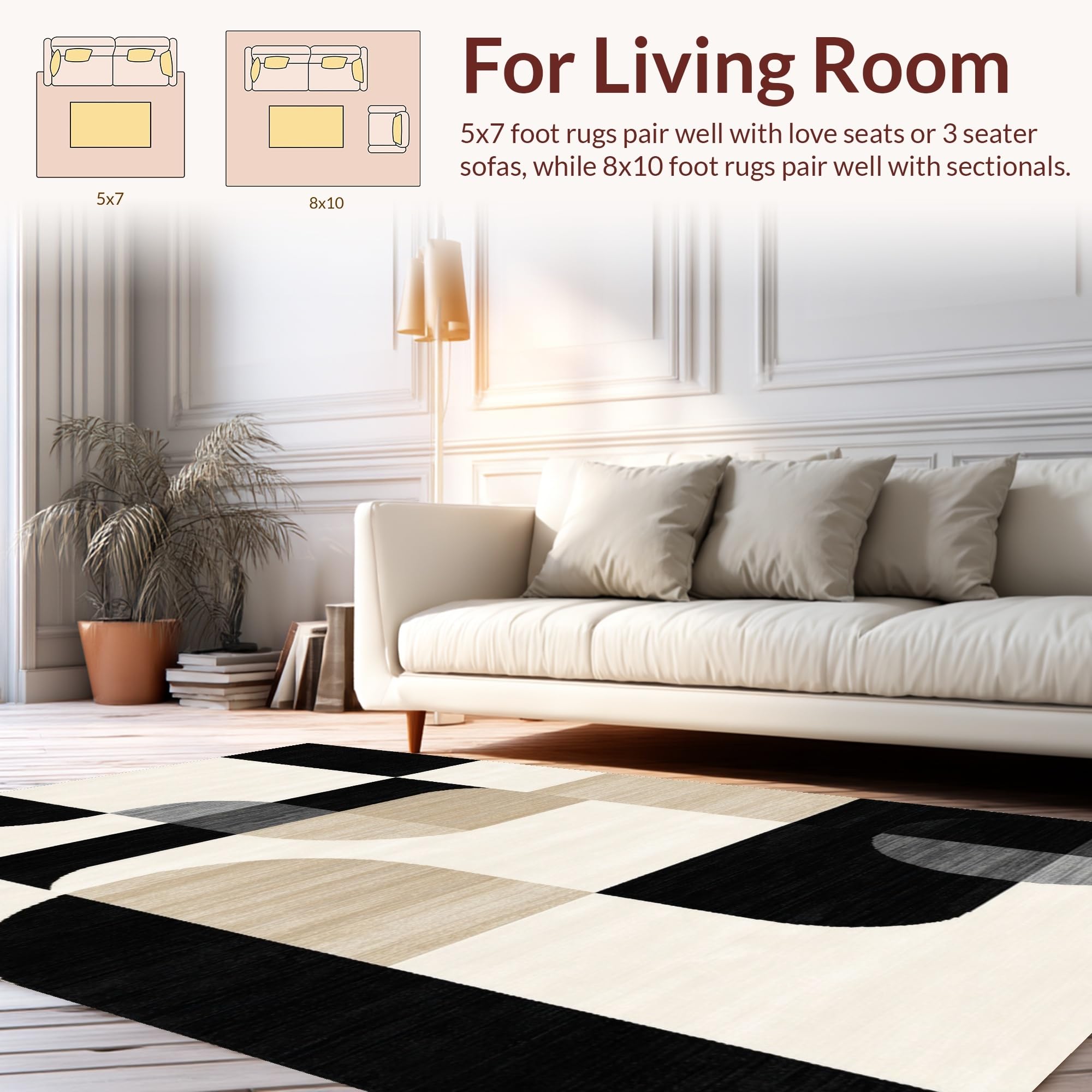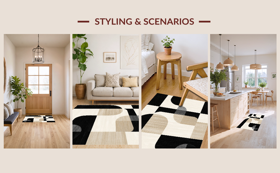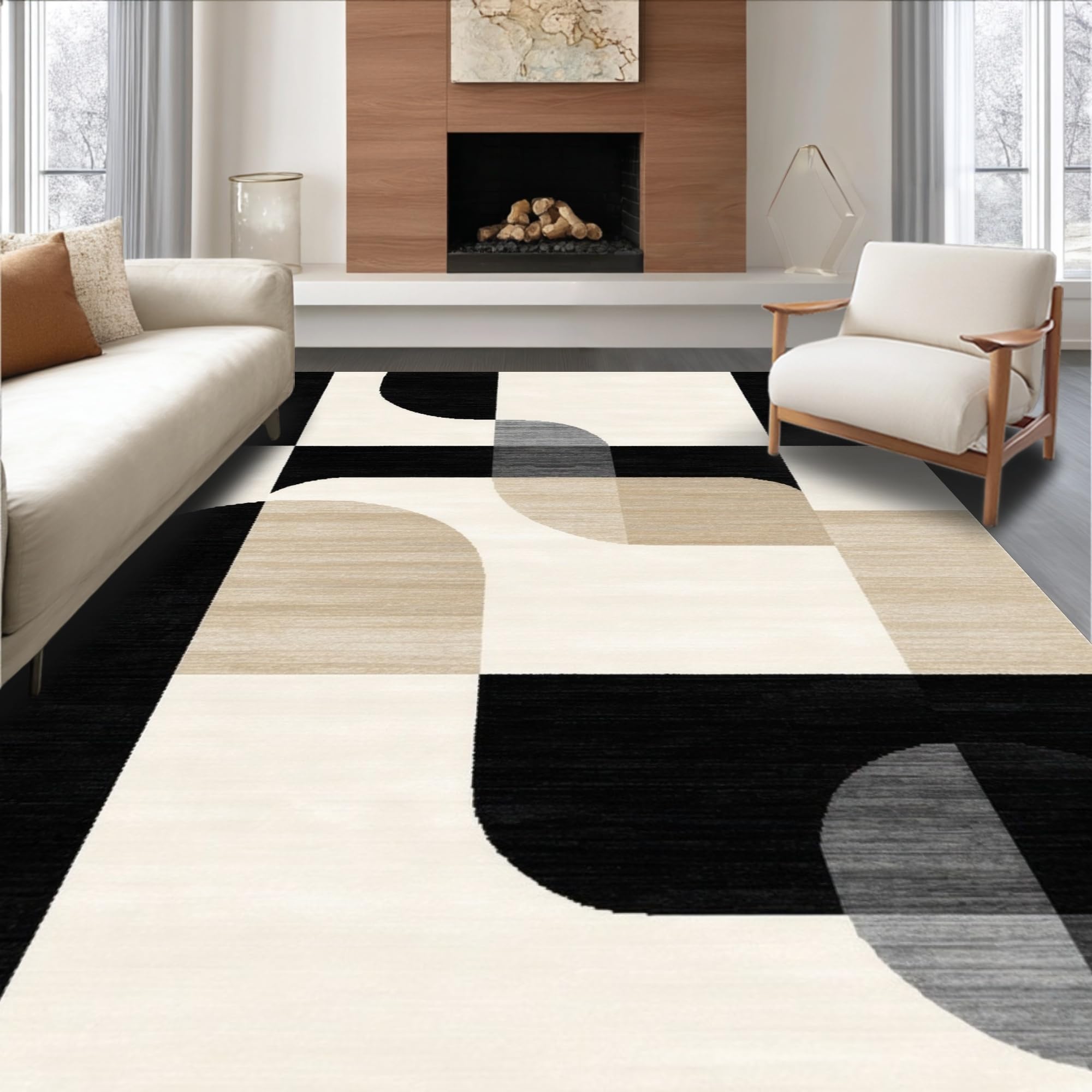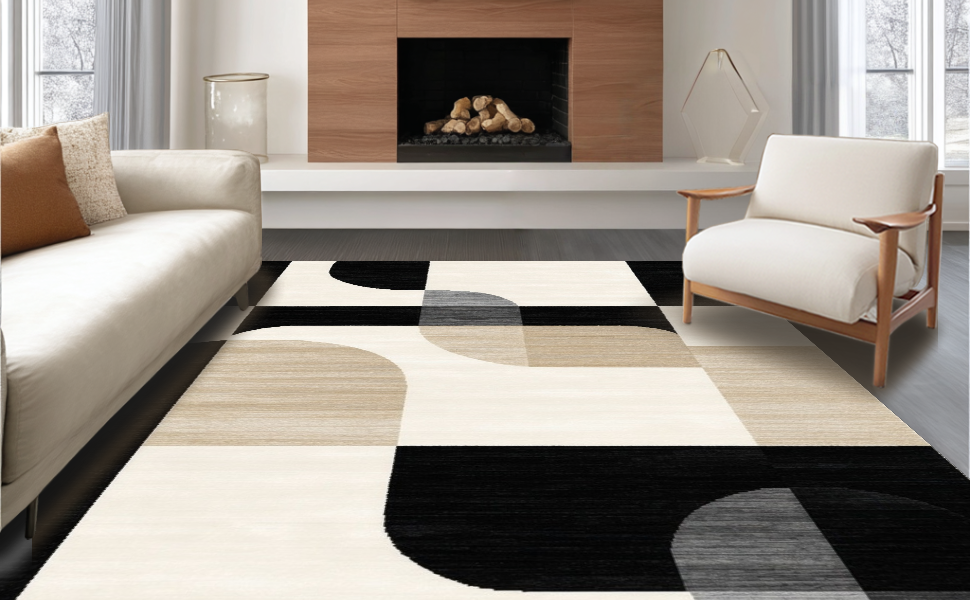Ultra Soft Area Rug, Non Slip, Stain Resistant, Washable Area Rugs for Living Room, Bedroom, Sophisticated Neutral Swirl Artistry(Beige) Overview: