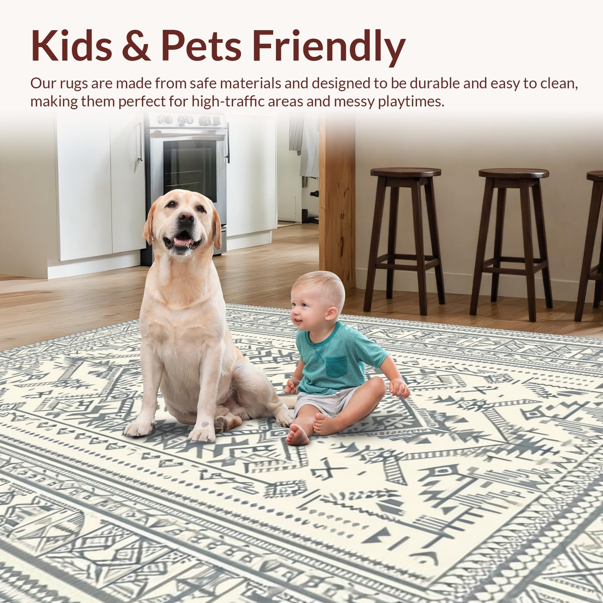 Ultra Soft Area Rug, Non Slip, Stain Resistant, Washable Area Rugs for Living Room, Bedroom, Sophisticated Ogee Shape Fusion(Gray) Overview: