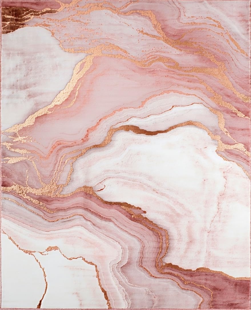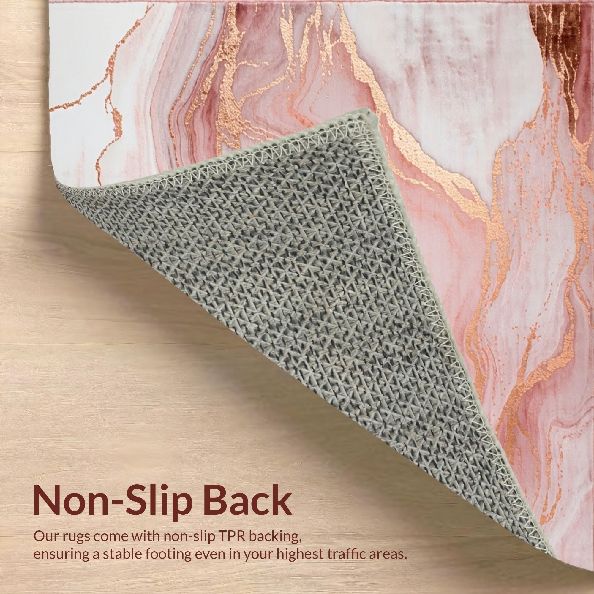 Ultra Soft Area Rug, Non Slip, Stain Resistant, Washable Area Rugs for Living Room, Bedroom, Sophisticated Pink and Gold Aesthetics(Pink) Overview: