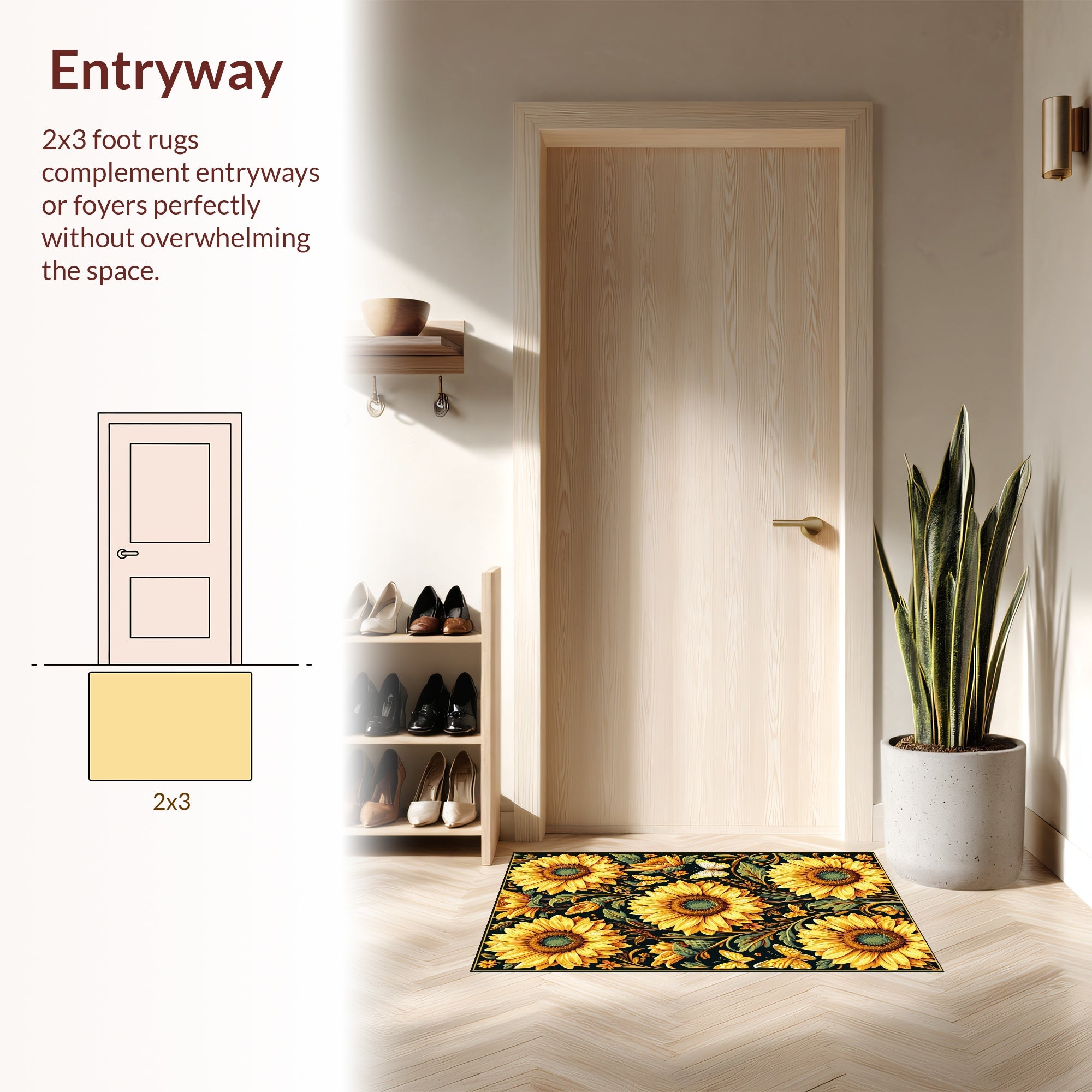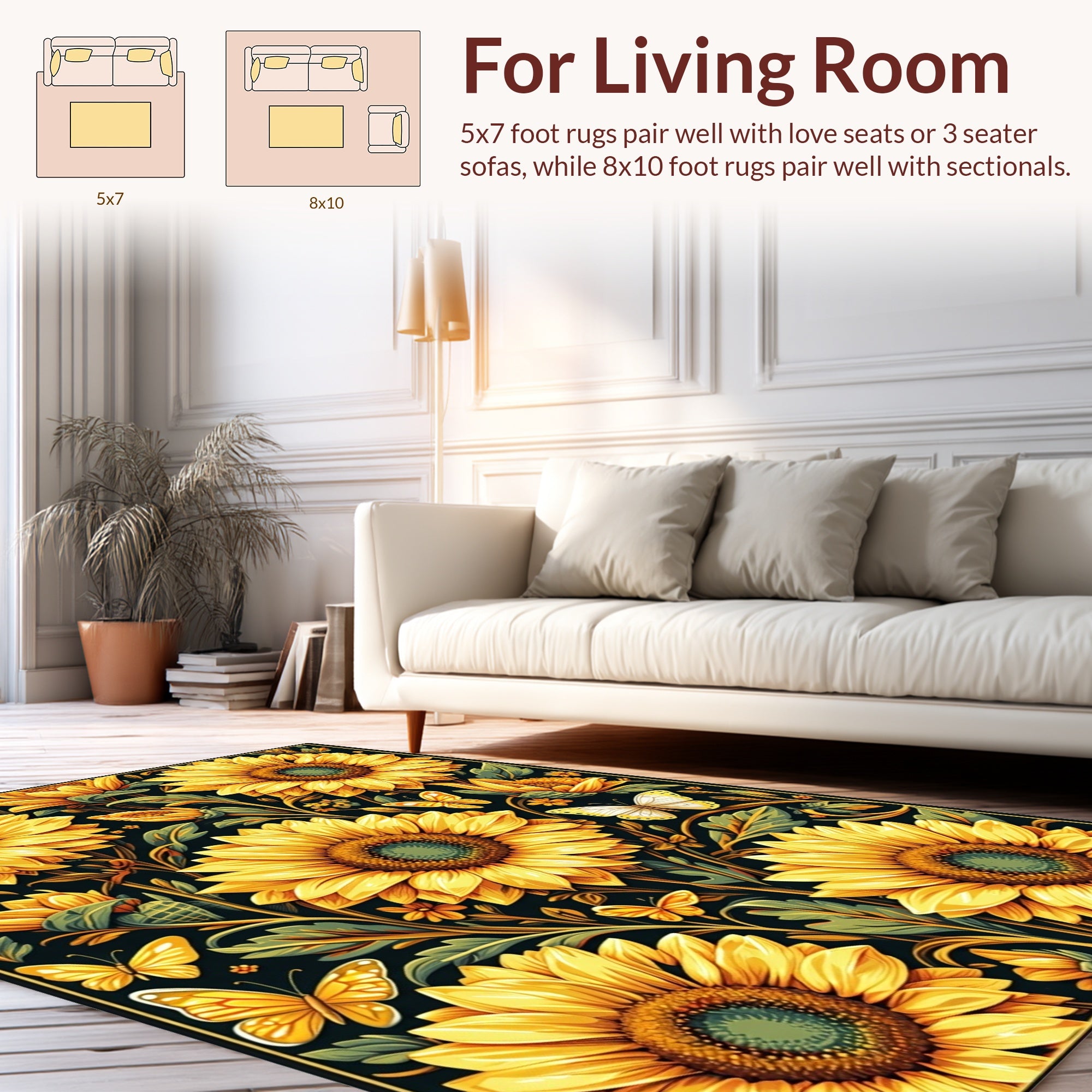 Flatwoven High Traffic Area Rug, Sophisticated Retro Floral, Non Slip, Stain Resistant, Washable Area Rugs for Living Room, Bedroom (Yellow) Overview: