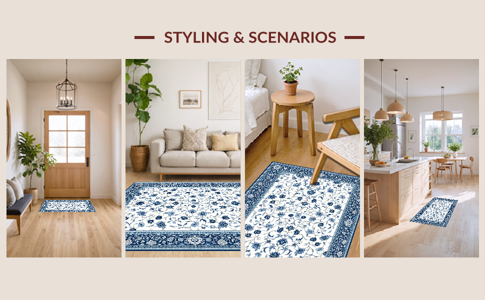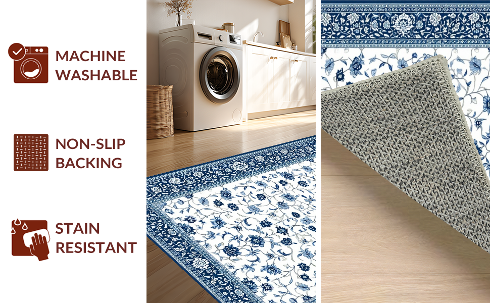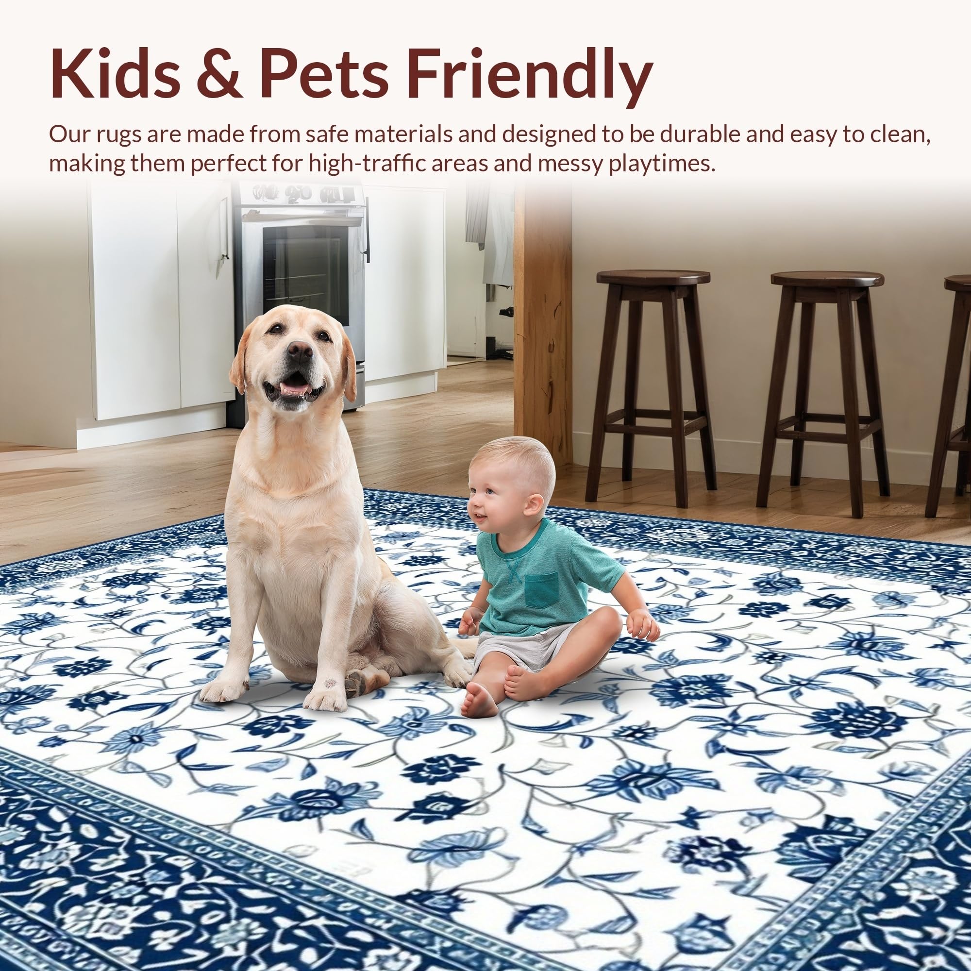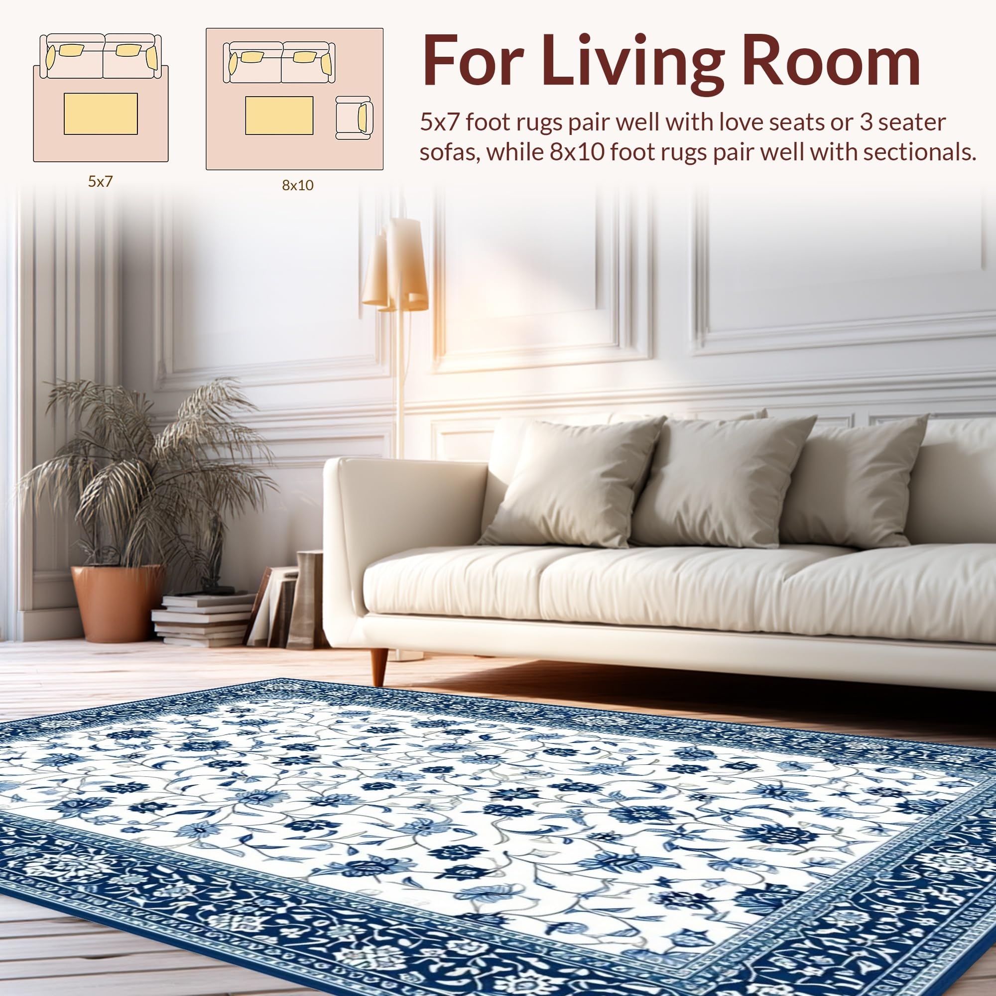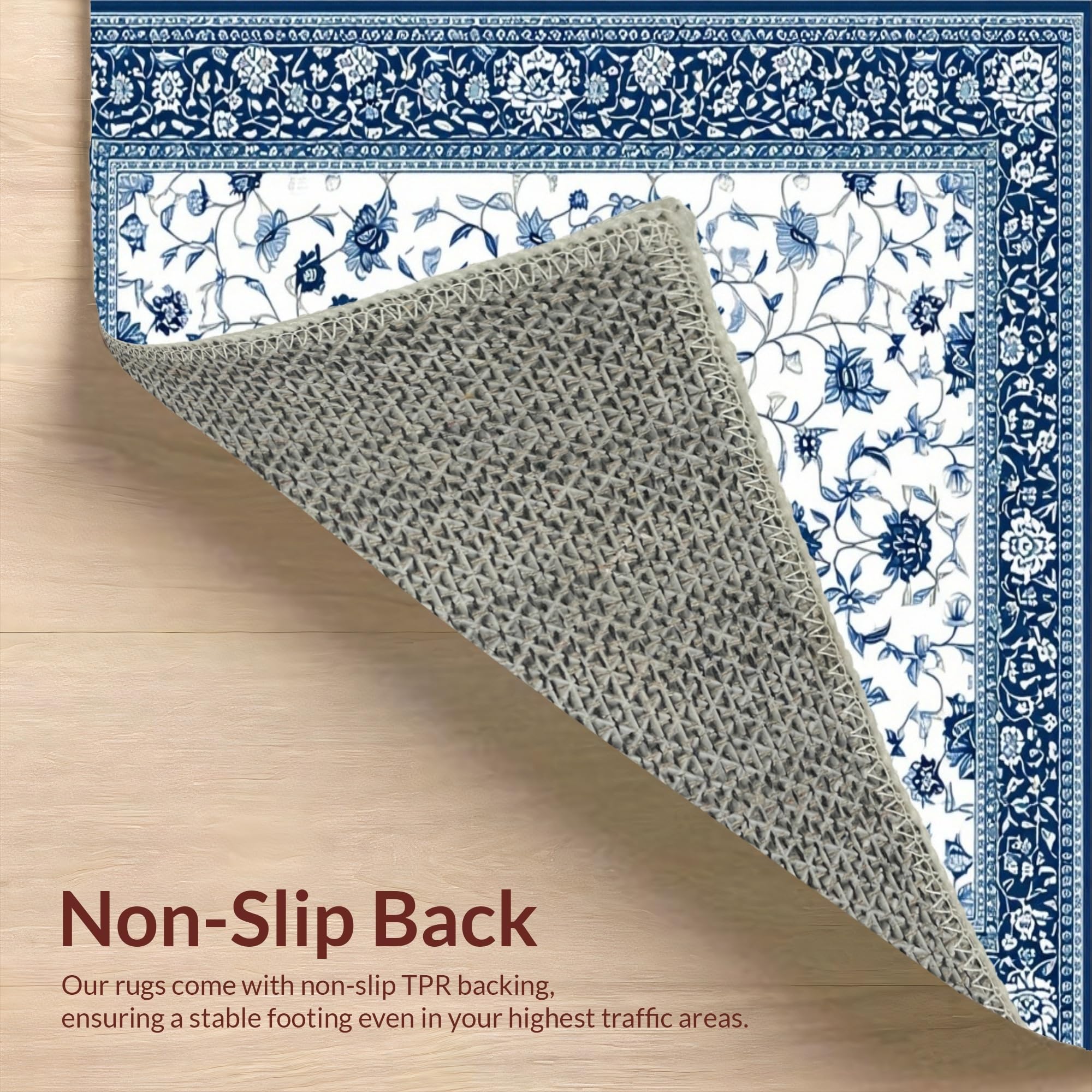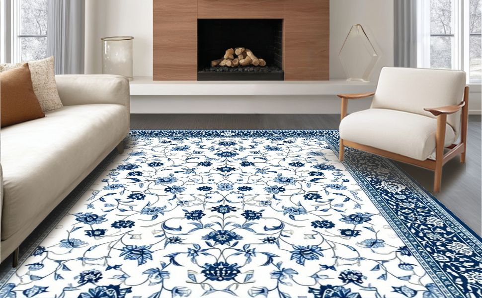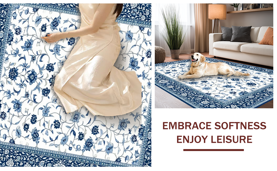 Ultra Soft Area Rug, Non Slip, Stain Resistant, Washable Area Rugs for Living Room, Bedroom, Sophisticated Soft Color Bloom(Blue) Overview: