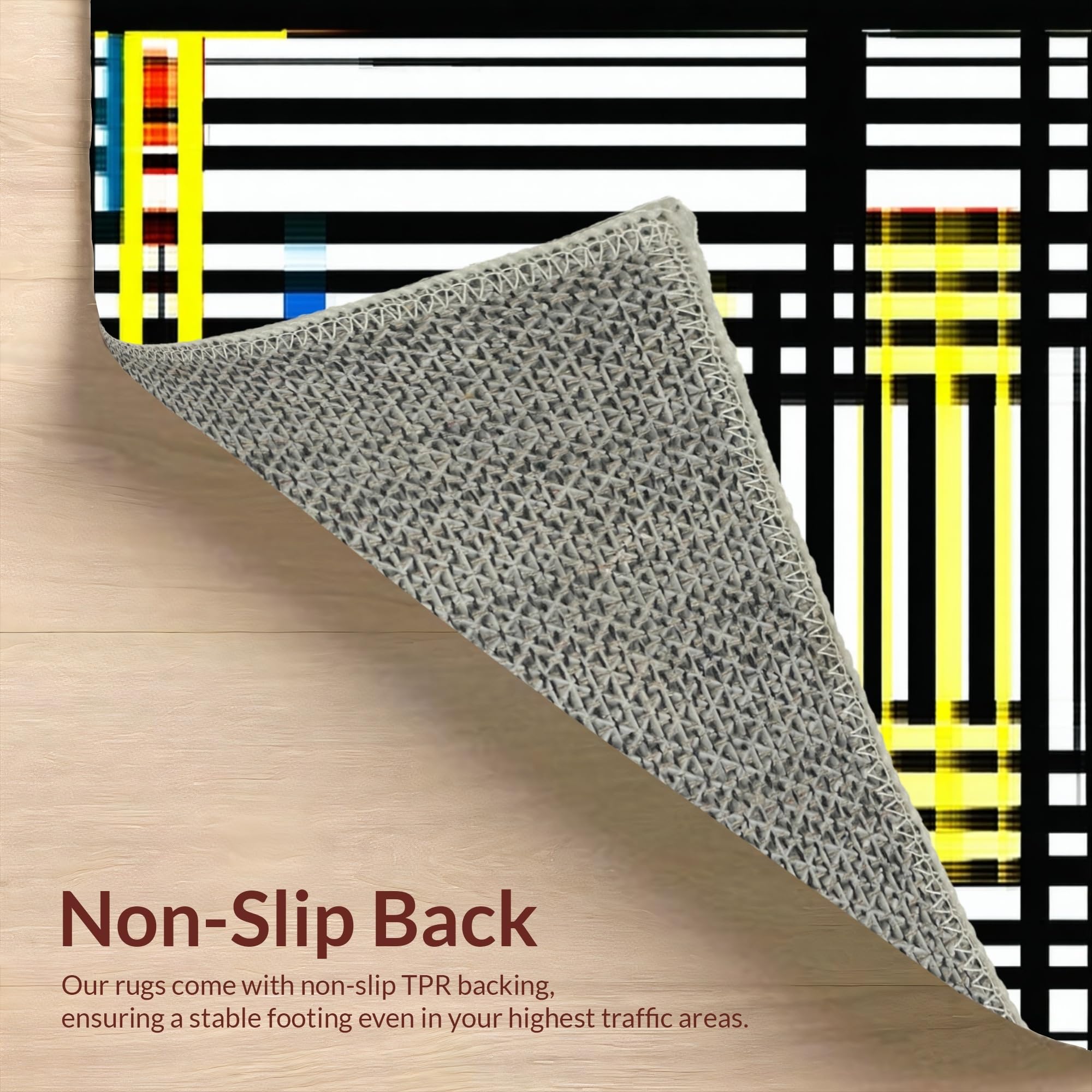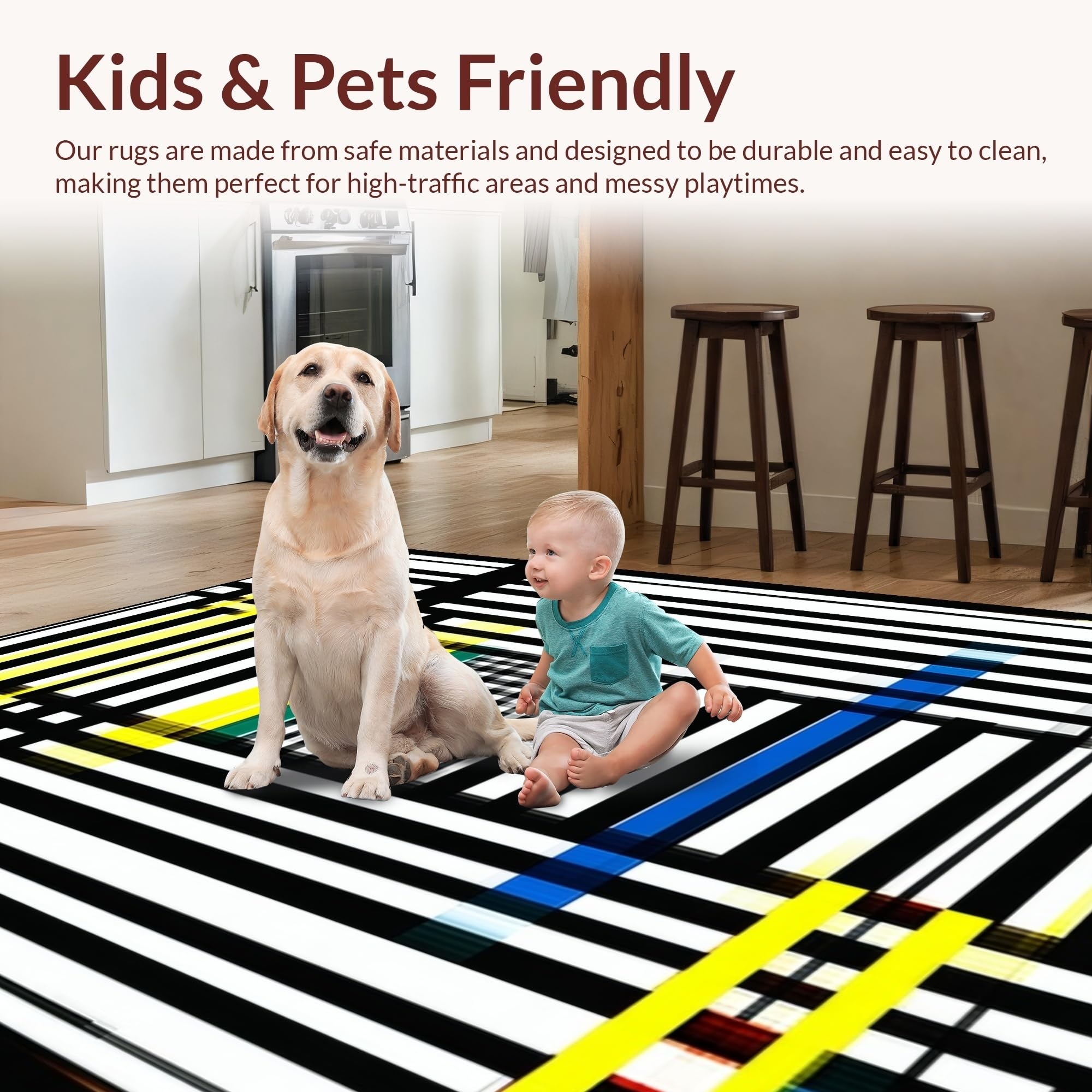 Ultra Soft Area Rug, Non Slip, Stain Resistant, Washable Area Rugs for Living Room, Bedroom, Sophisticated Striped Geometric Theme(Black) Overview: