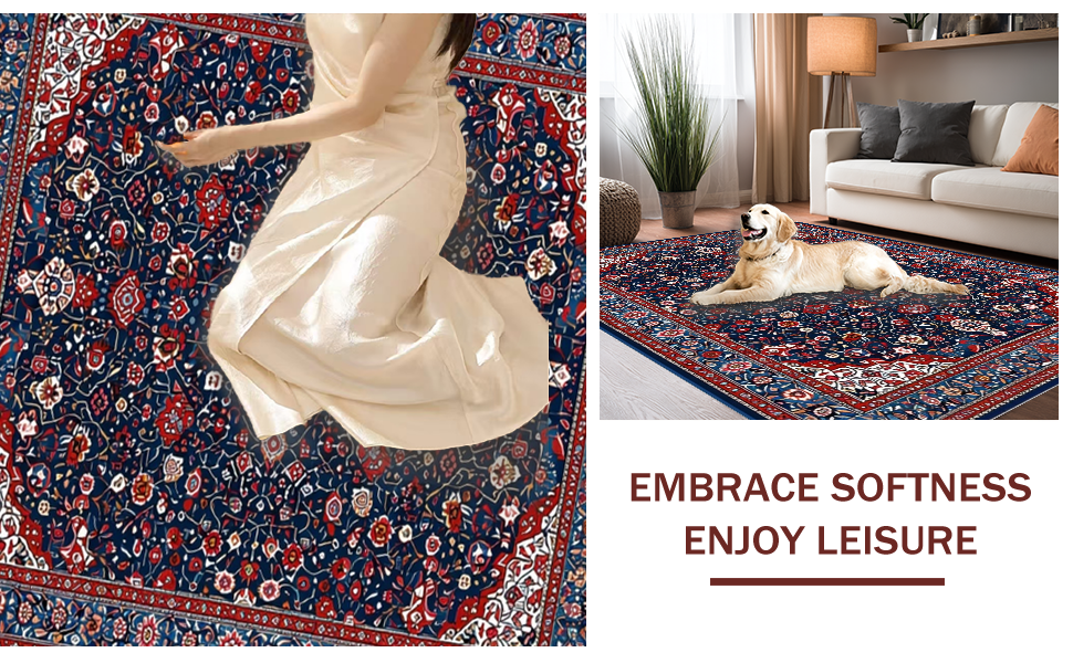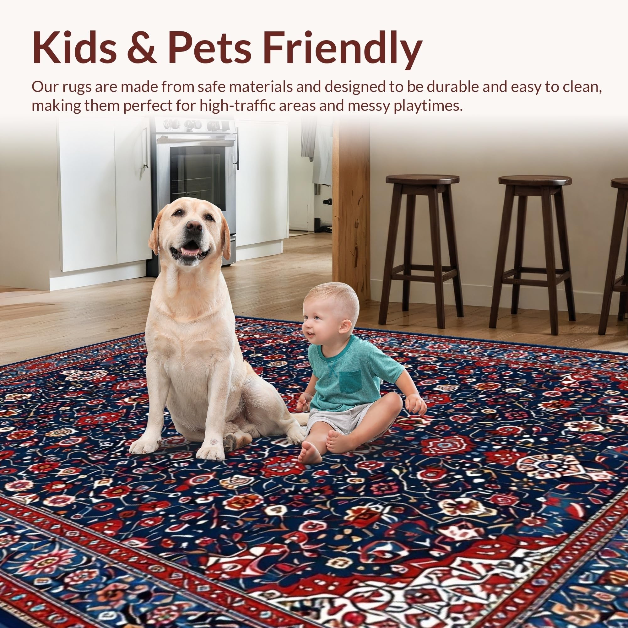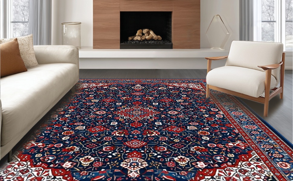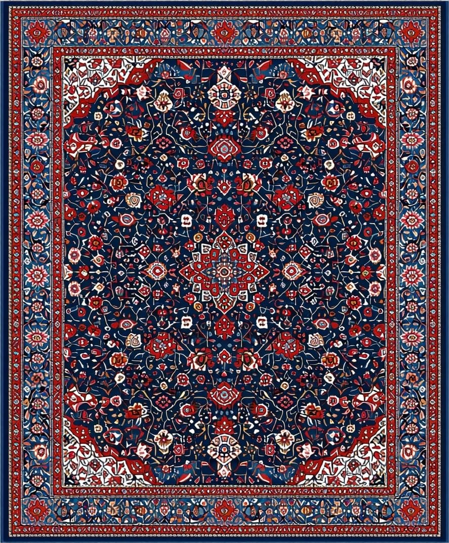 Ultra Soft Area Rug, Non Slip, Stain Resistant, Washable Area Rugs for Living Room, Bedroom, Sophisticated Symmetrical Pattern Play(Blue) Overview: