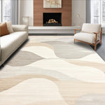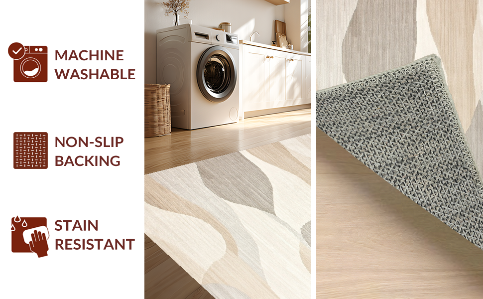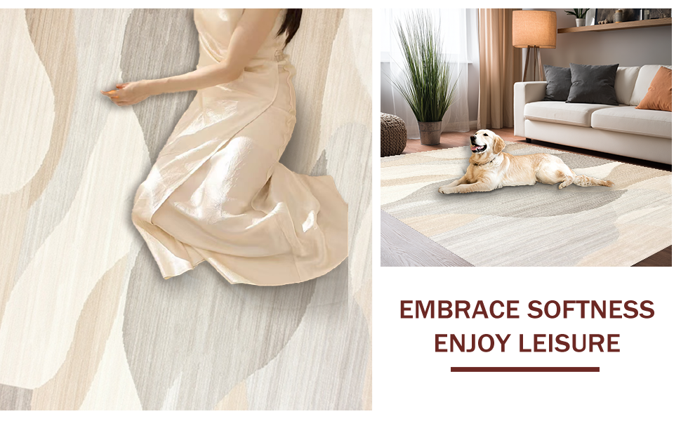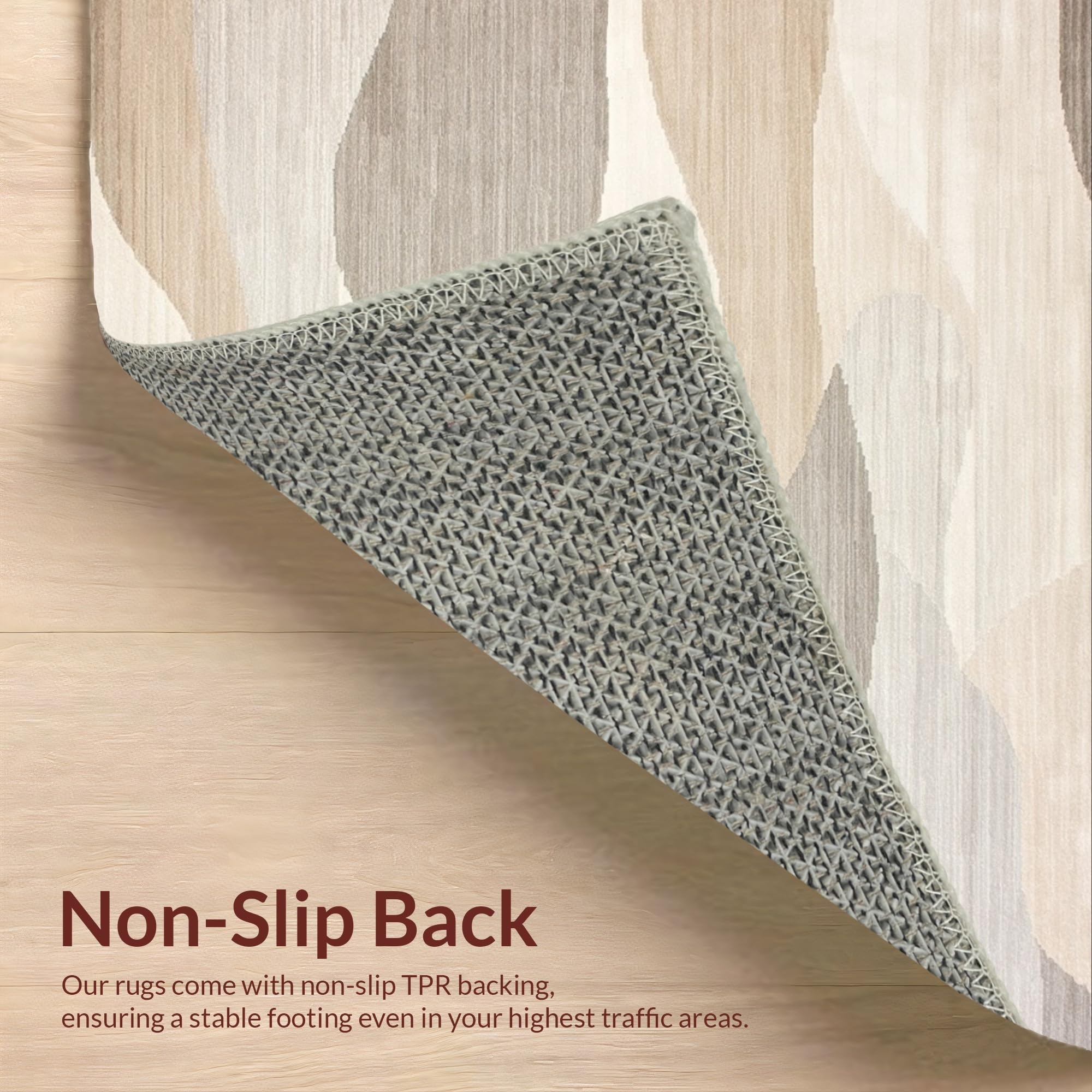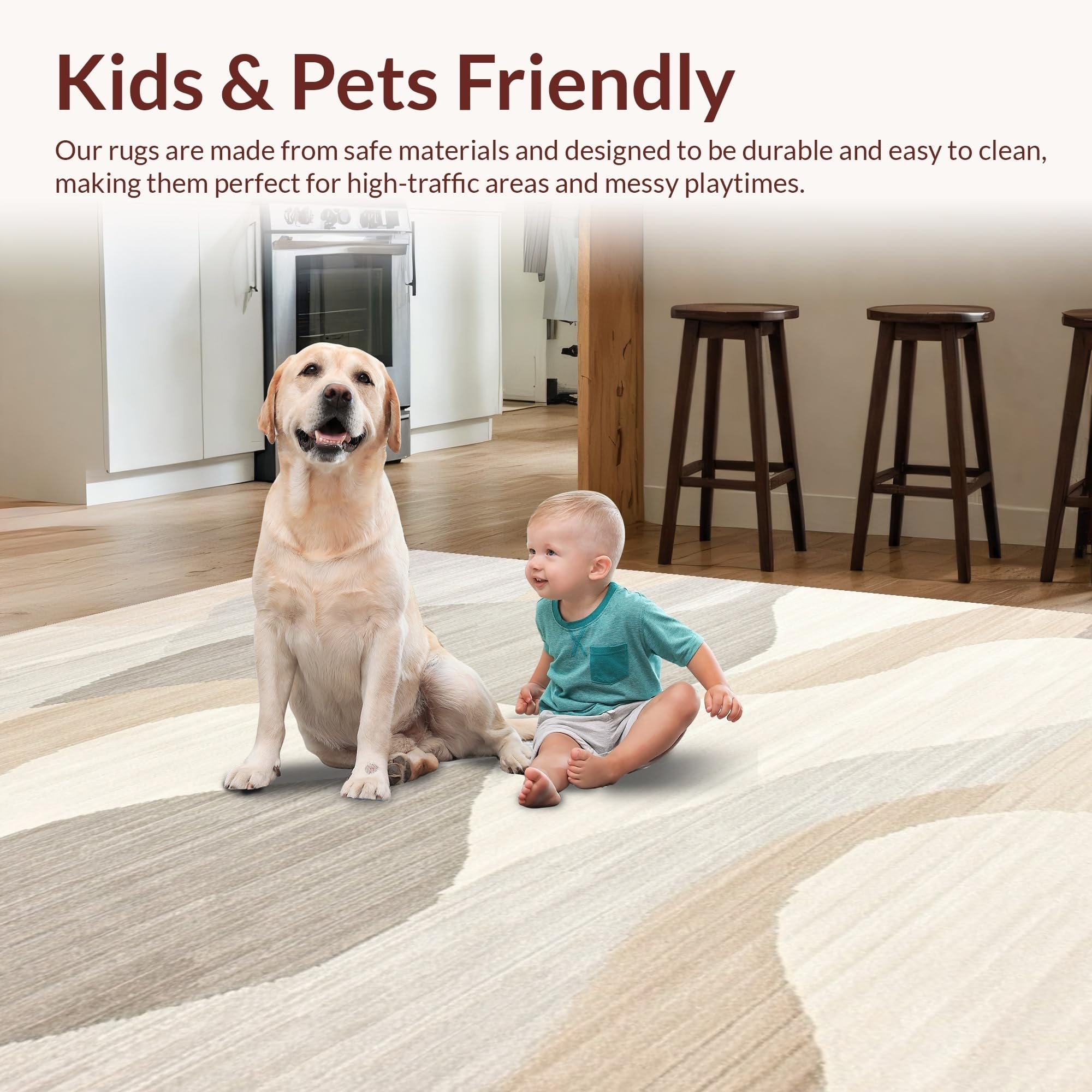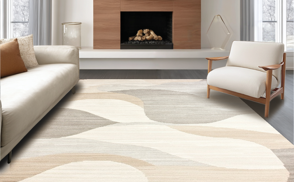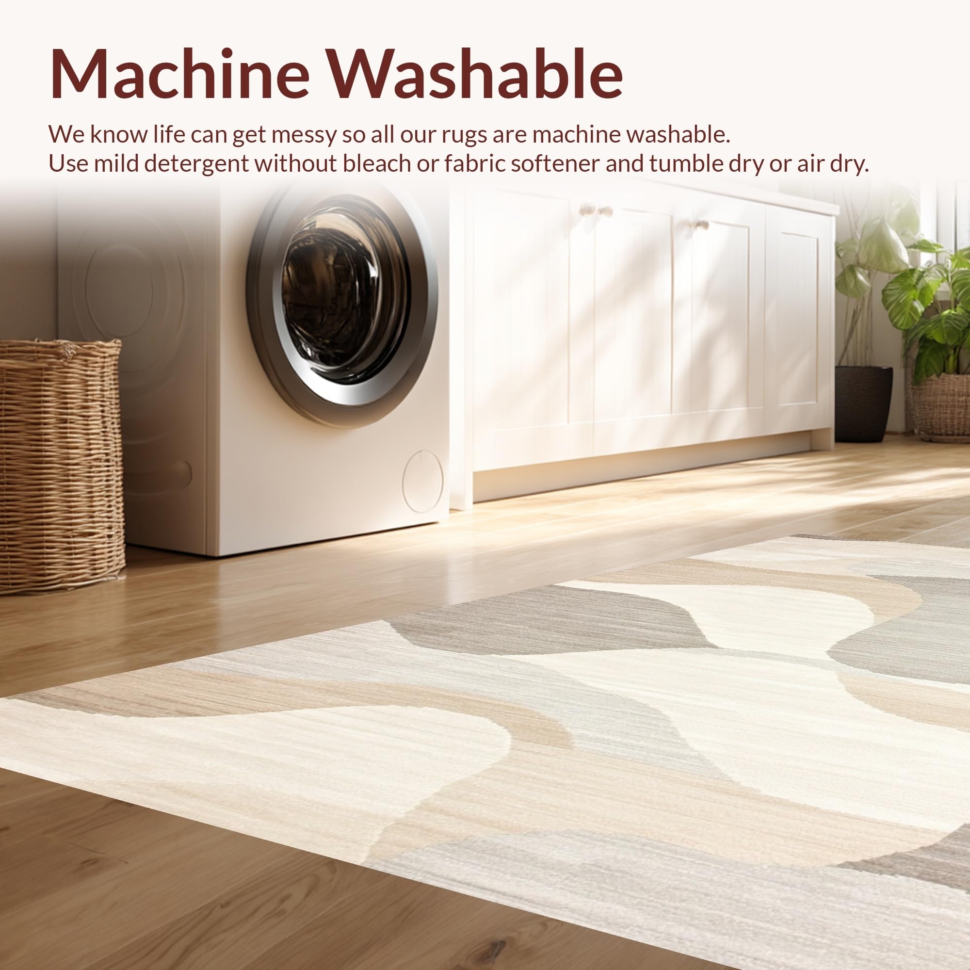 Ultra Soft Area Rug, Non Slip, Stain Resistant, Washable Area Rugs for Living Room, Bedroom, Sophisticated Textured Linear Motif(Beige) Overview: