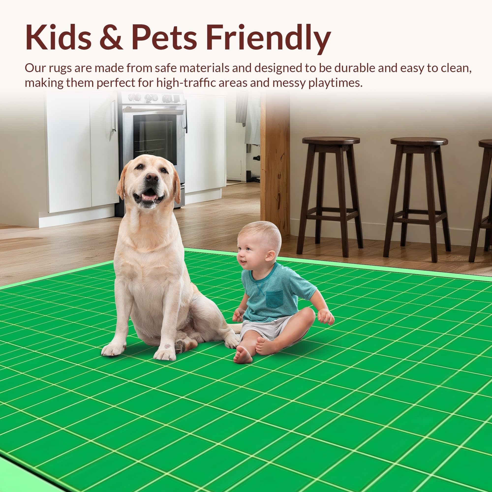Ultra Soft Area Rug, Non Slip, Stain Resistant, Washable Area Rugs for Living Room, Bedroom, Sophisticated Tiled Green Composition(Green) Overview: