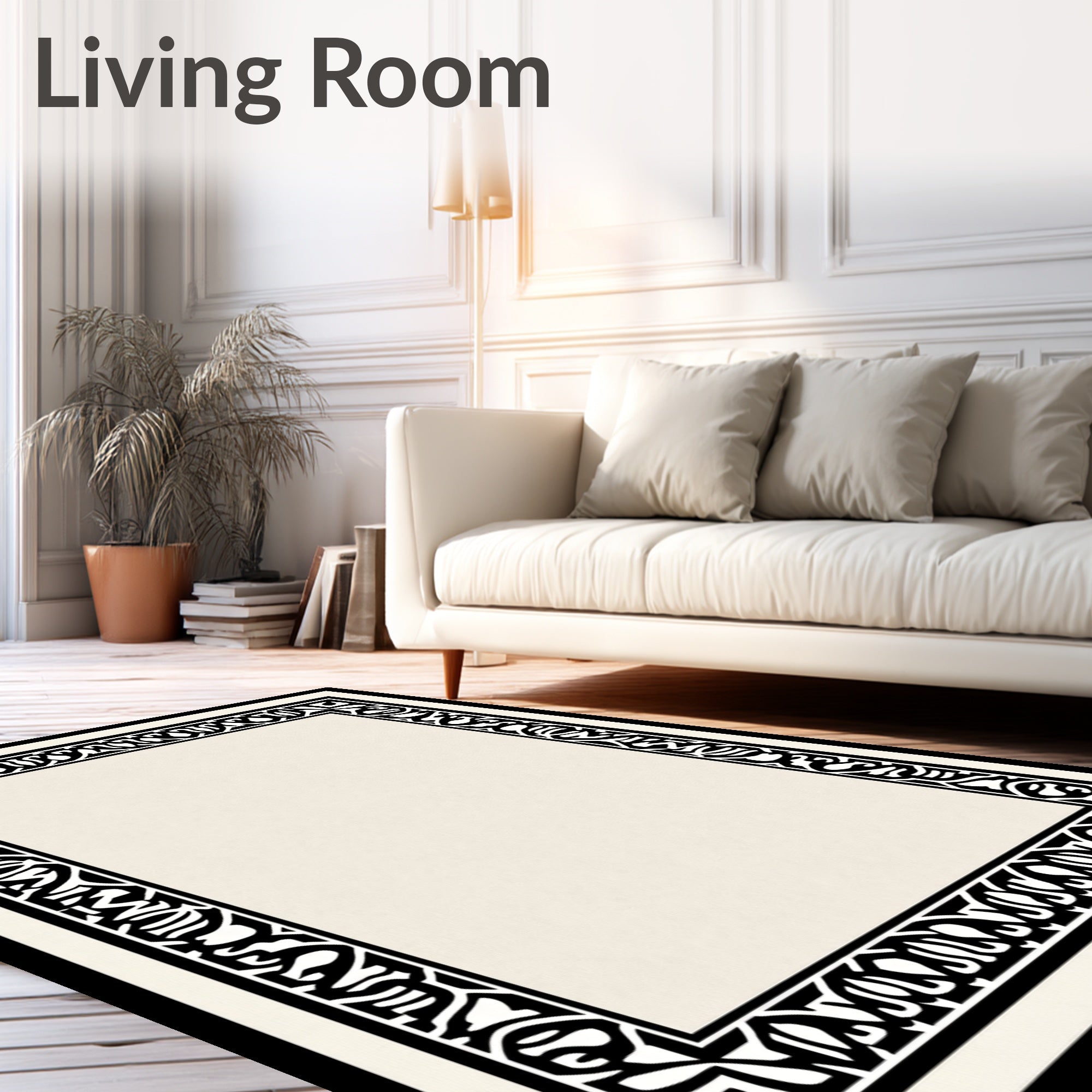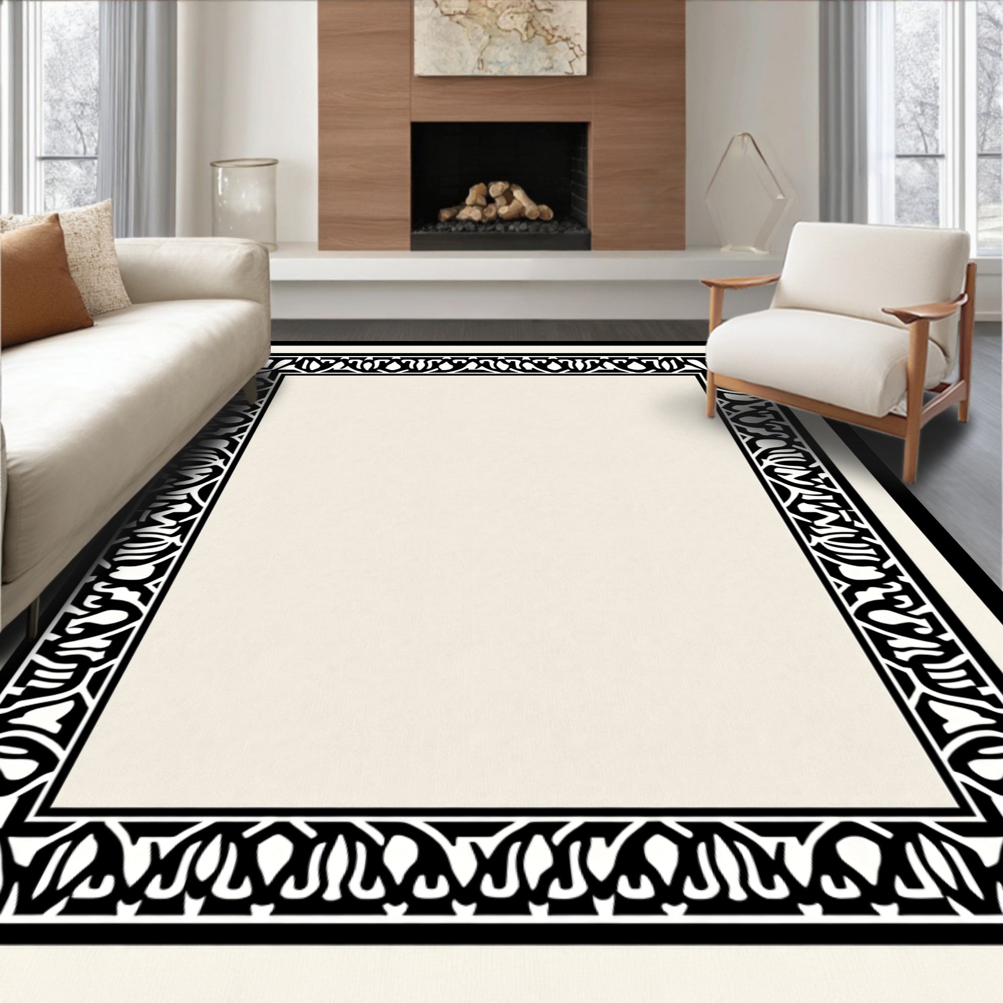 Ultra Soft Area Rug, Non Slip, Stain Resistant, Washable Area Rugs for Living Room, Bedroom, Sophisticated Trim Perimeter Embellished Statement(Black) Overview: