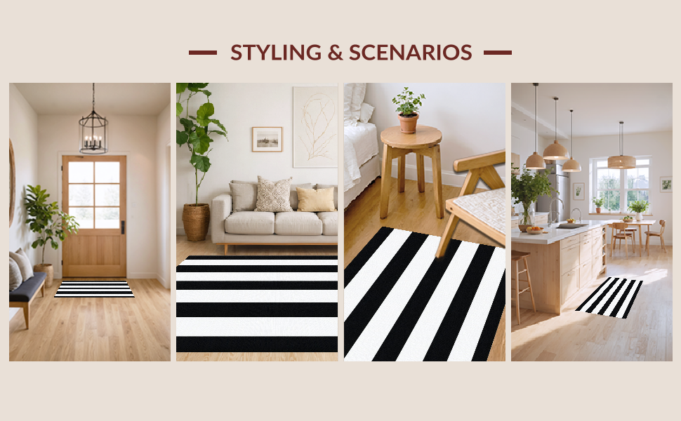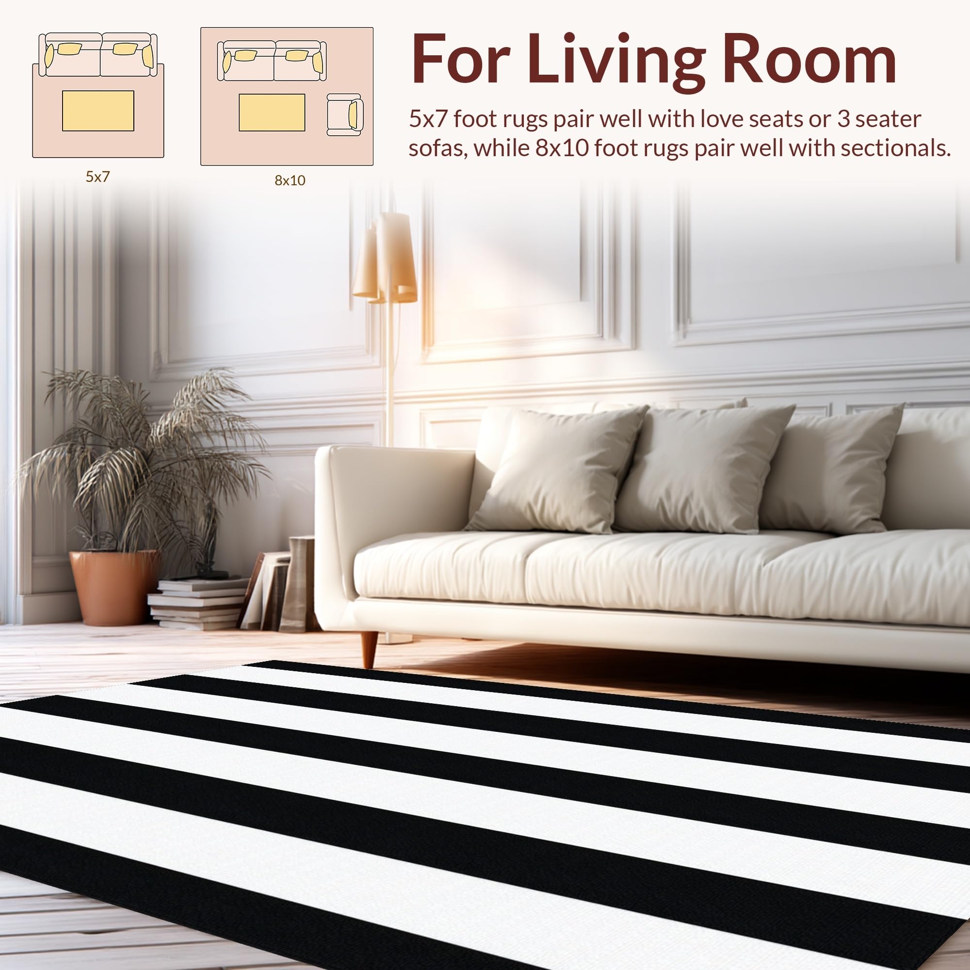 Ultra Soft Area Rug, Non Slip, Stain Resistant, Washable Area Rugs for Living Room, Bedroom, Sophisticated Versatile Outdoor Weave(Black) Overview: