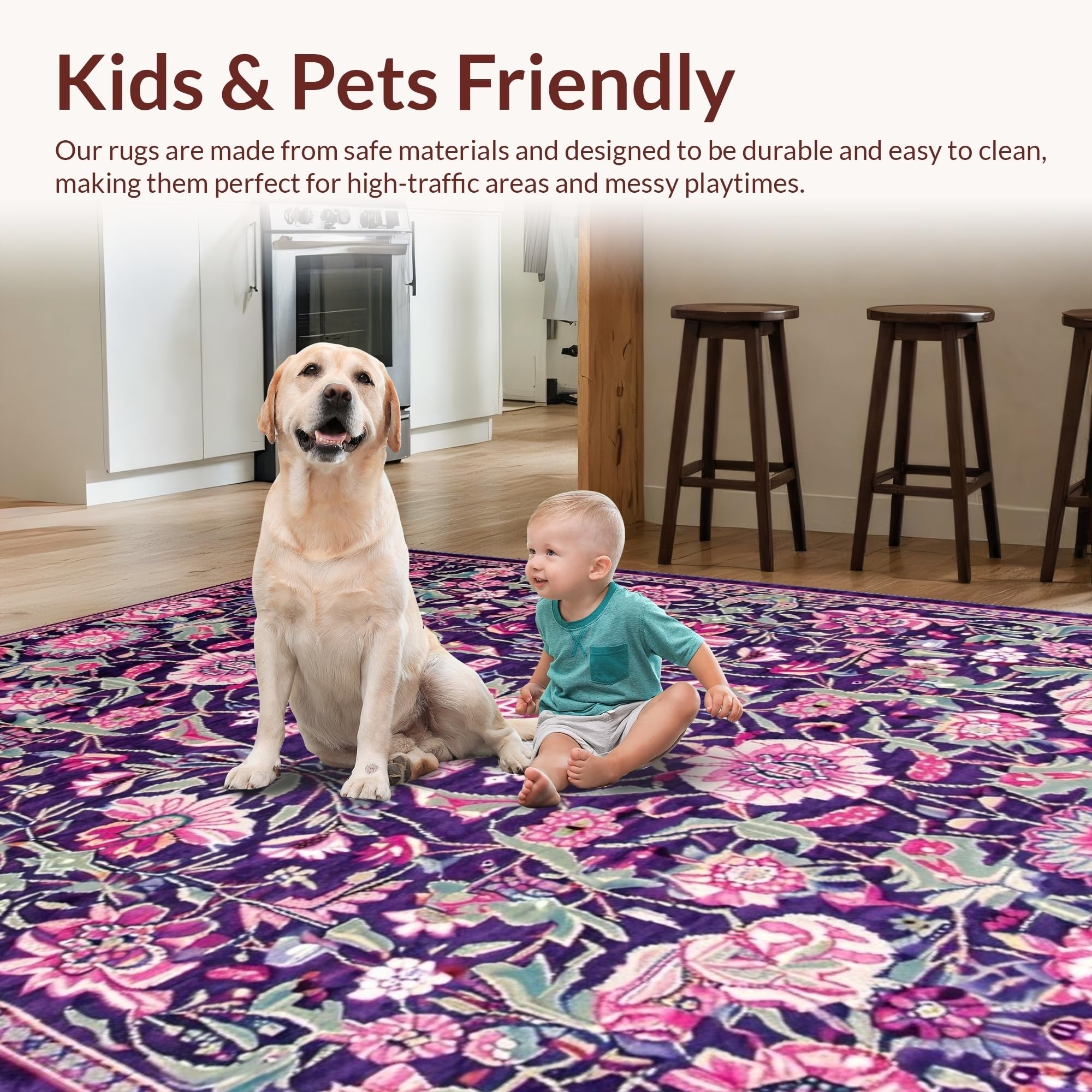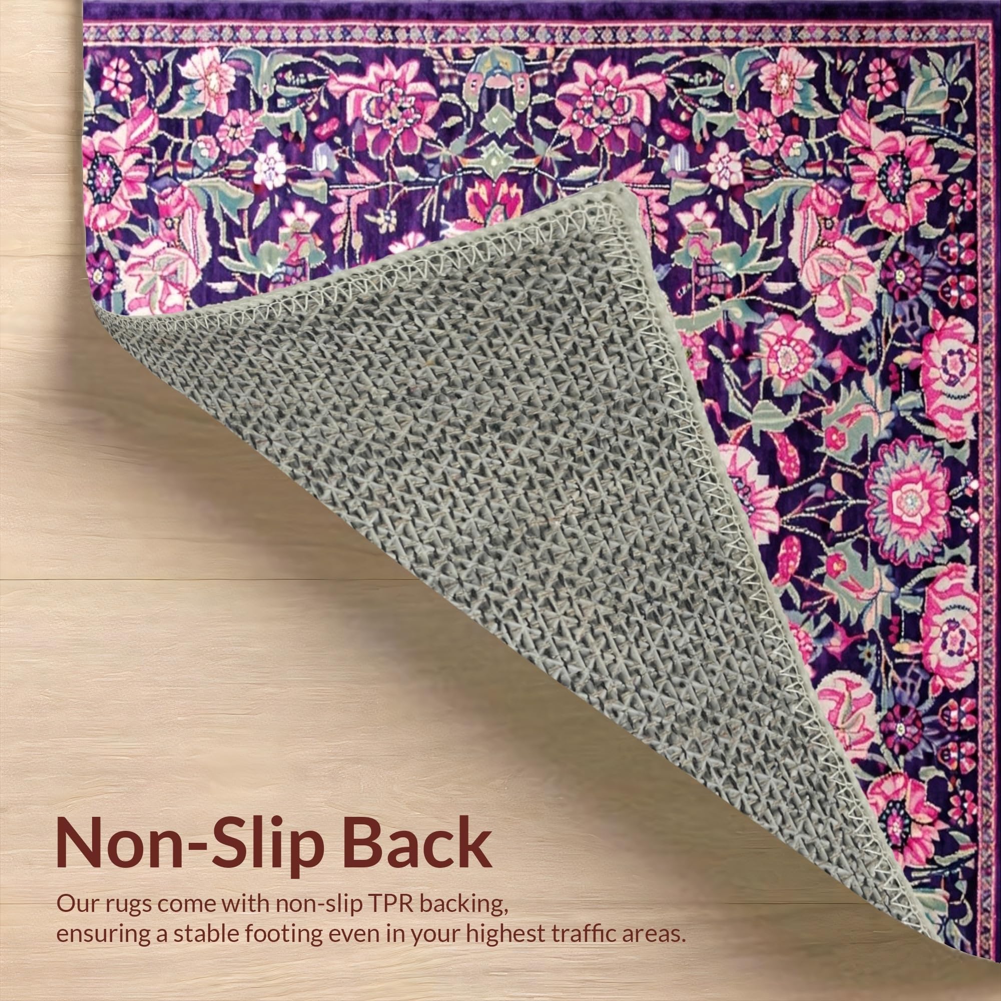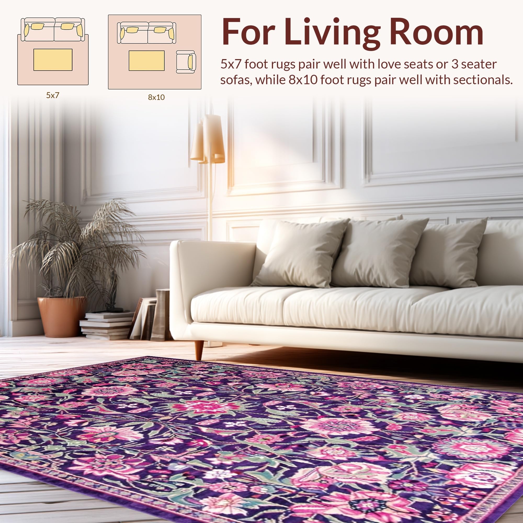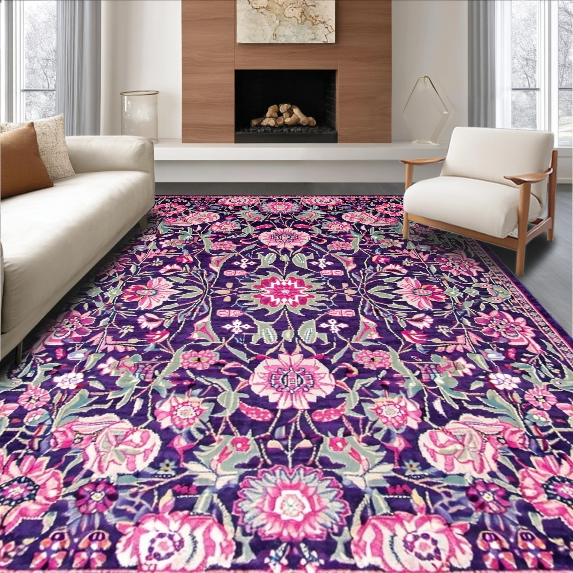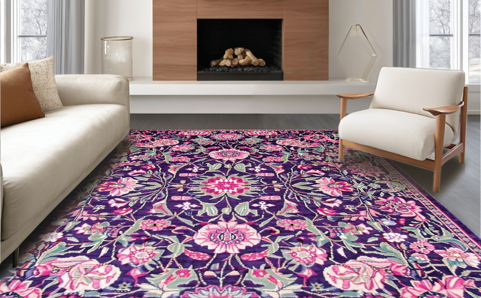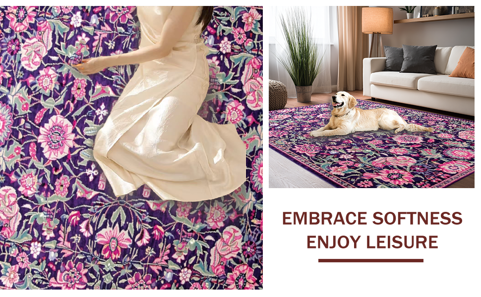Ultra Soft Area Rug, Non Slip, Stain Resistant, Washable Area Rugs for Living Room, Bedroom, Sophisticated Vintage Leaf Print(Purple) Overview: