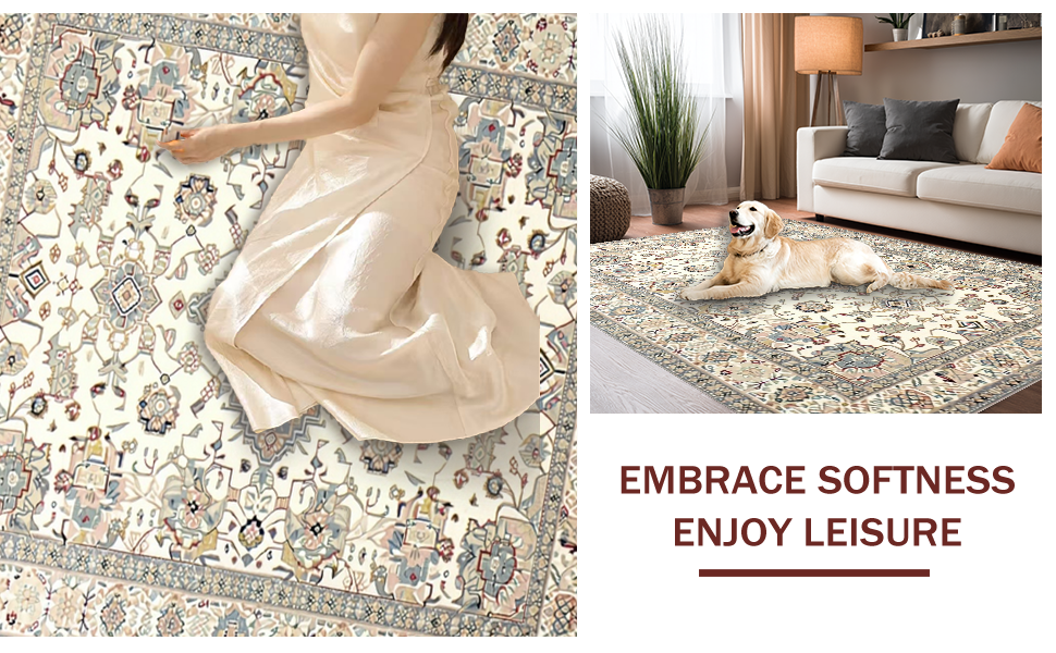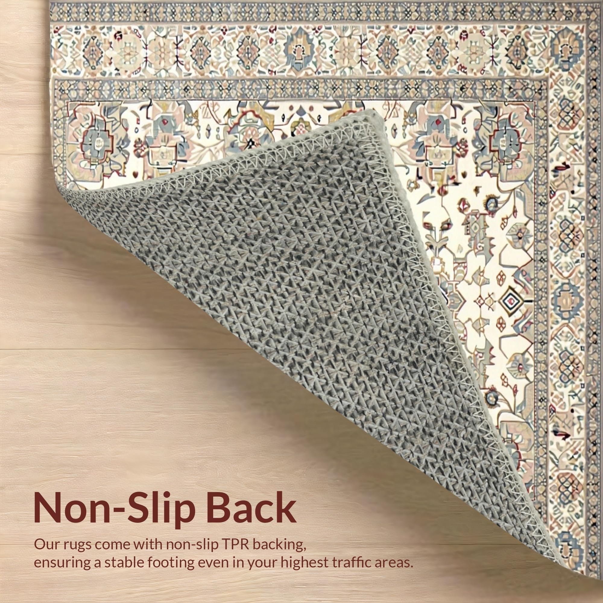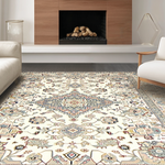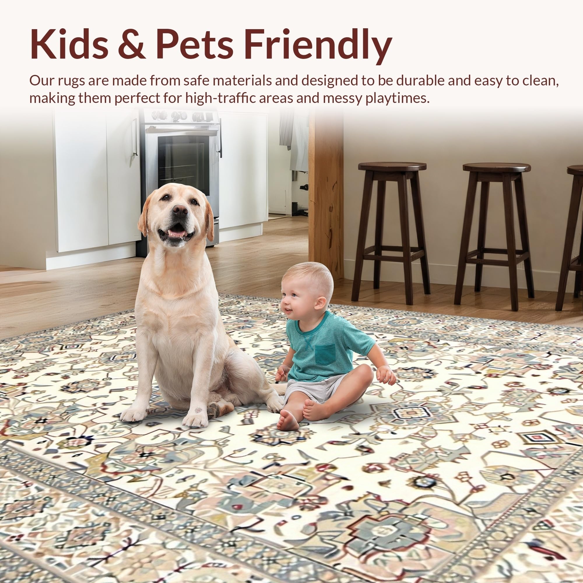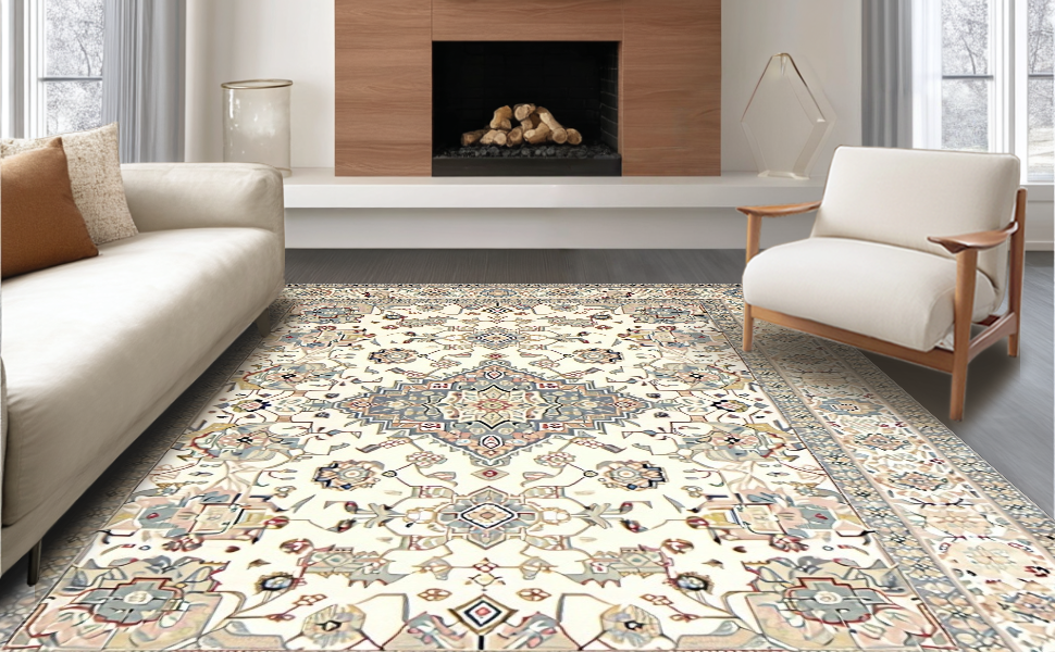 Ultra Soft Area Rug, Non Slip, Stain Resistant, Washable Area Rugs for Living Room, Bedroom, Sophisticated Vintage Ogee Design(Beige) Overview: