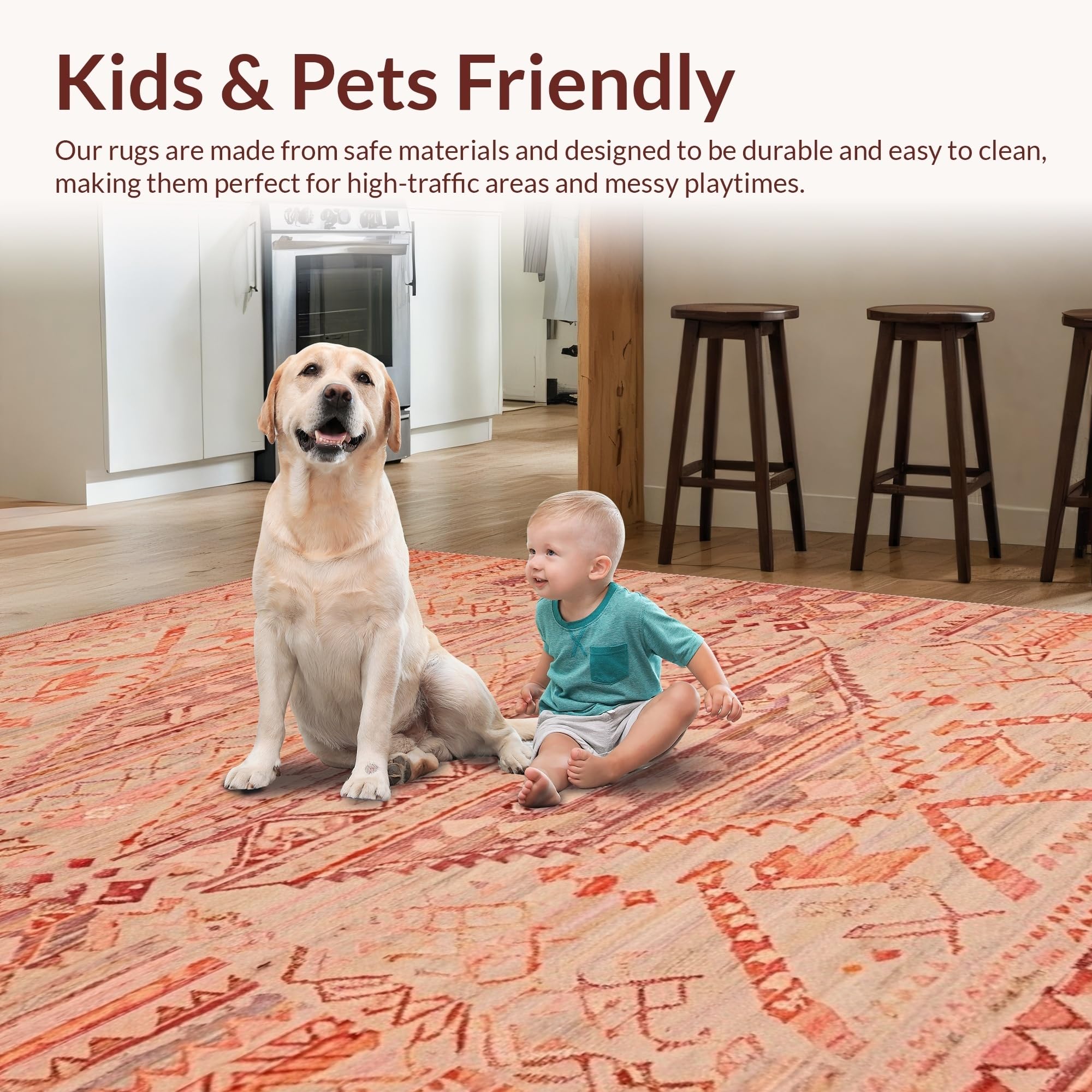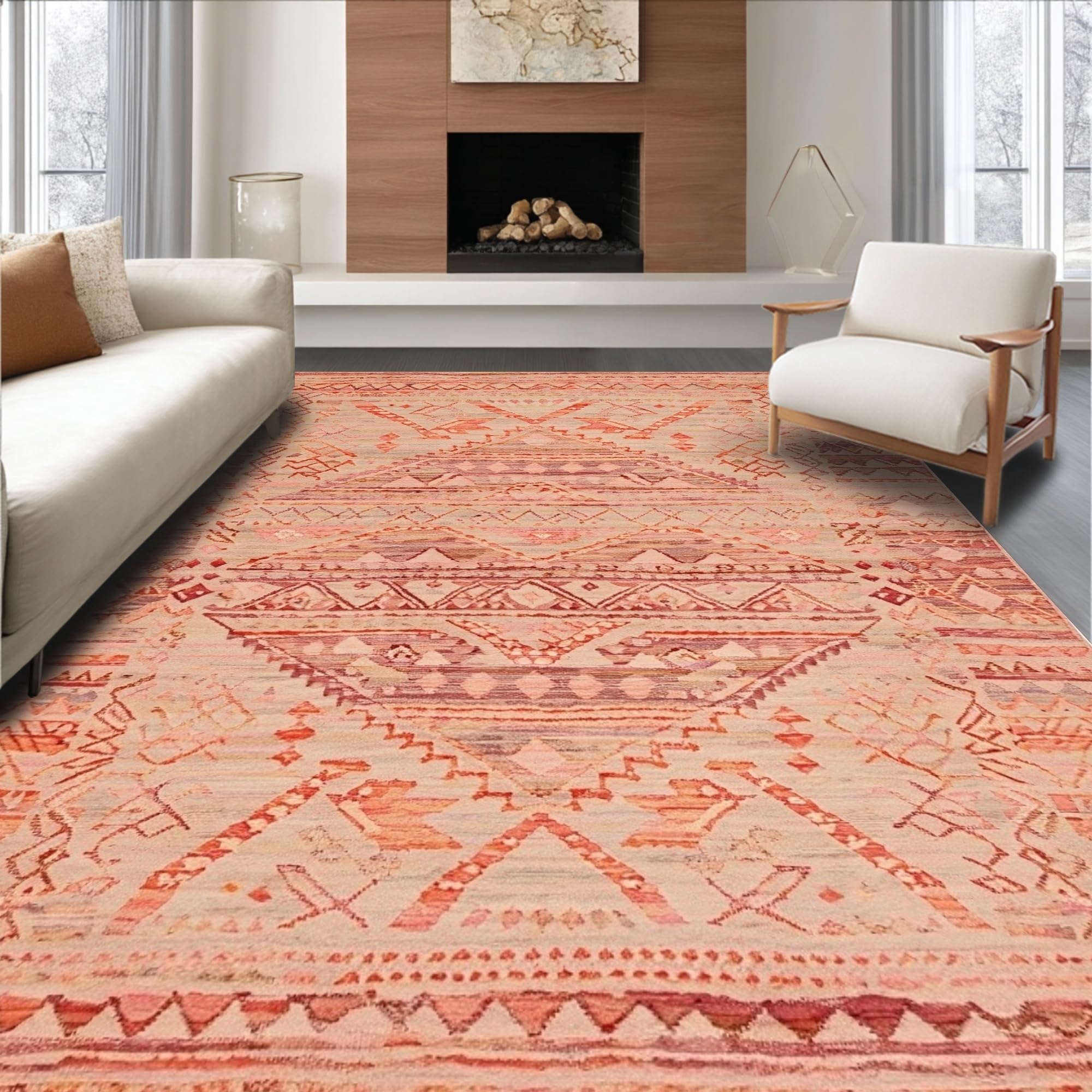 Ultra Soft Area Rug, Non Slip, Stain Resistant, Washable Area Rugs for Living Room, Bedroom, Sophisticated Warm Palette Elements(Red) Overview: