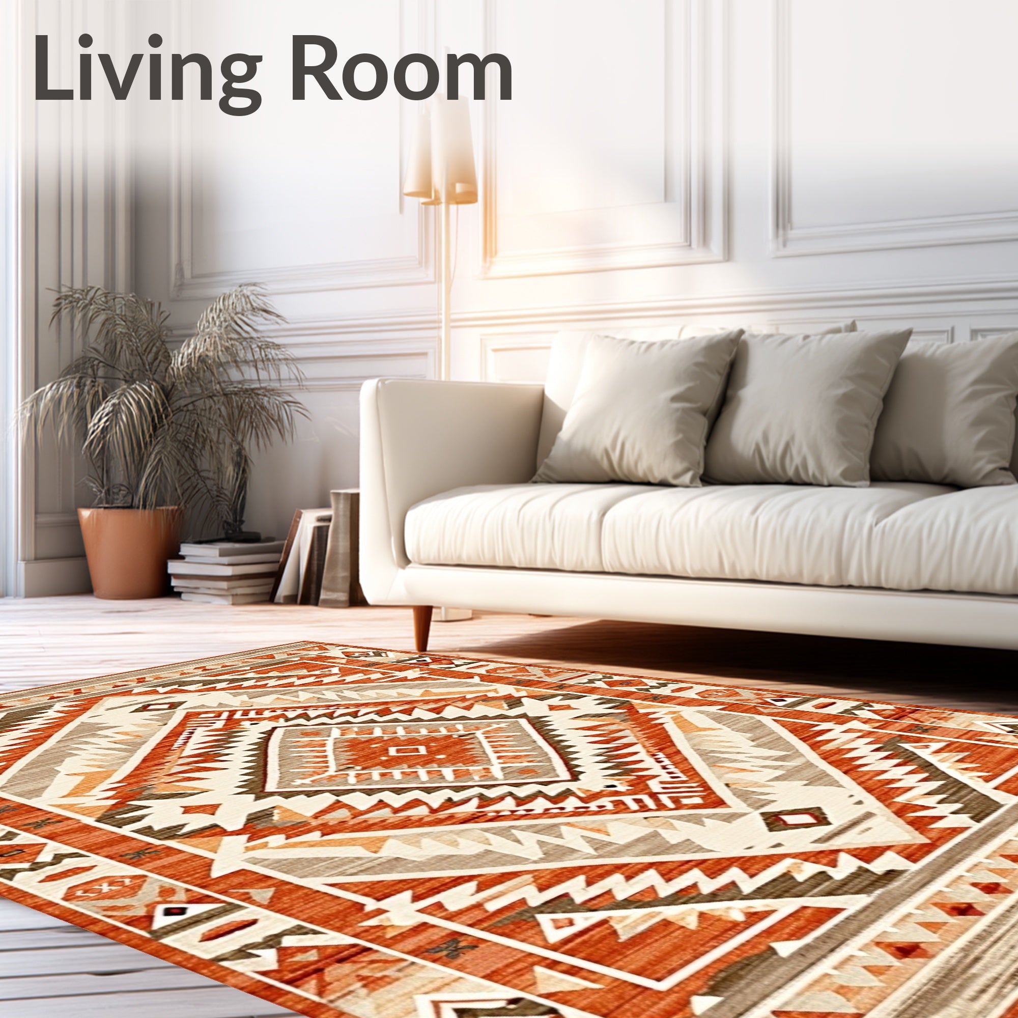 Ultra Soft Area Rug, Non Slip, Stain Resistant, Washable Area Rugs for Living Room, Bedroom, Southwestern Terracotta & Beige Diamond Area(Brown) Overview: