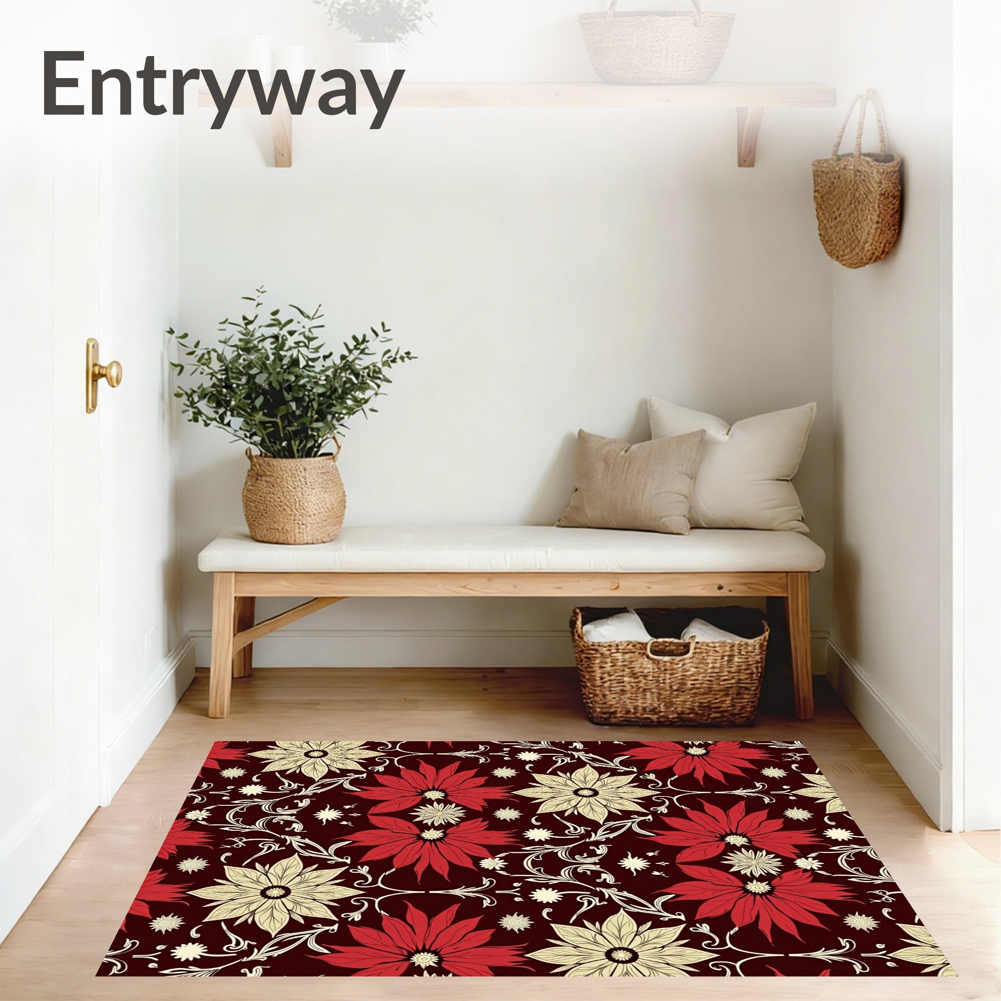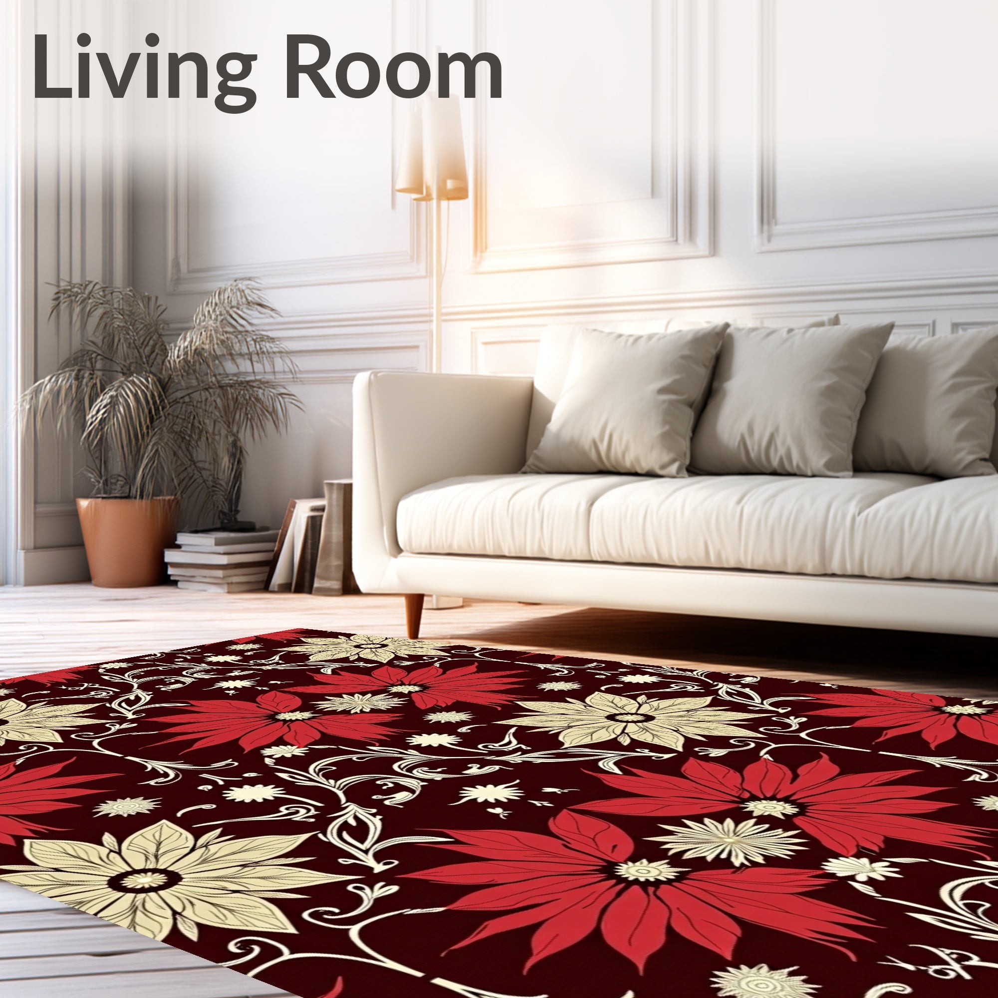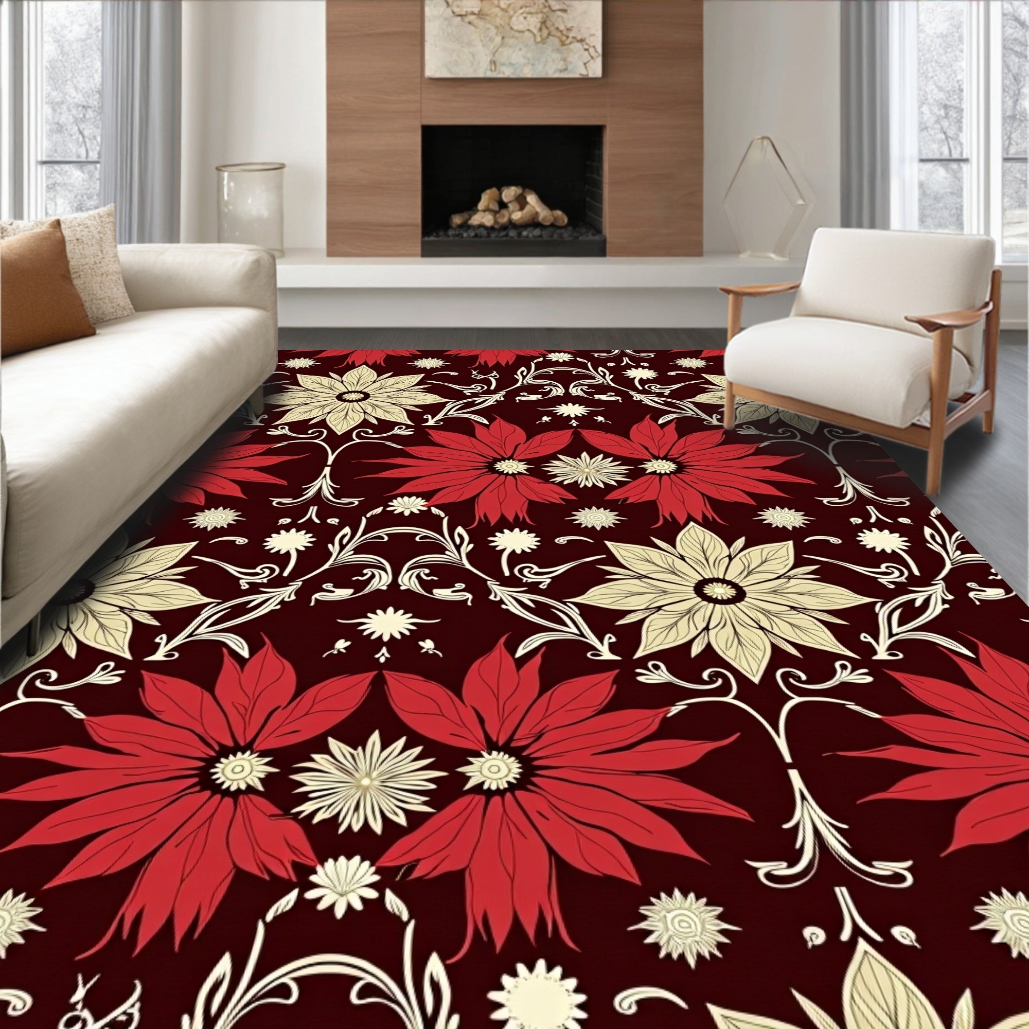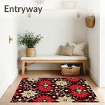 Ultra Soft Area Rug, Non Slip, Stain Resistant, Washable Area Rugs for Living Room, Bedroom, Sparkling Ornament Cluster with Poinsettia Bloom Holiday(Burgundy) Overview: