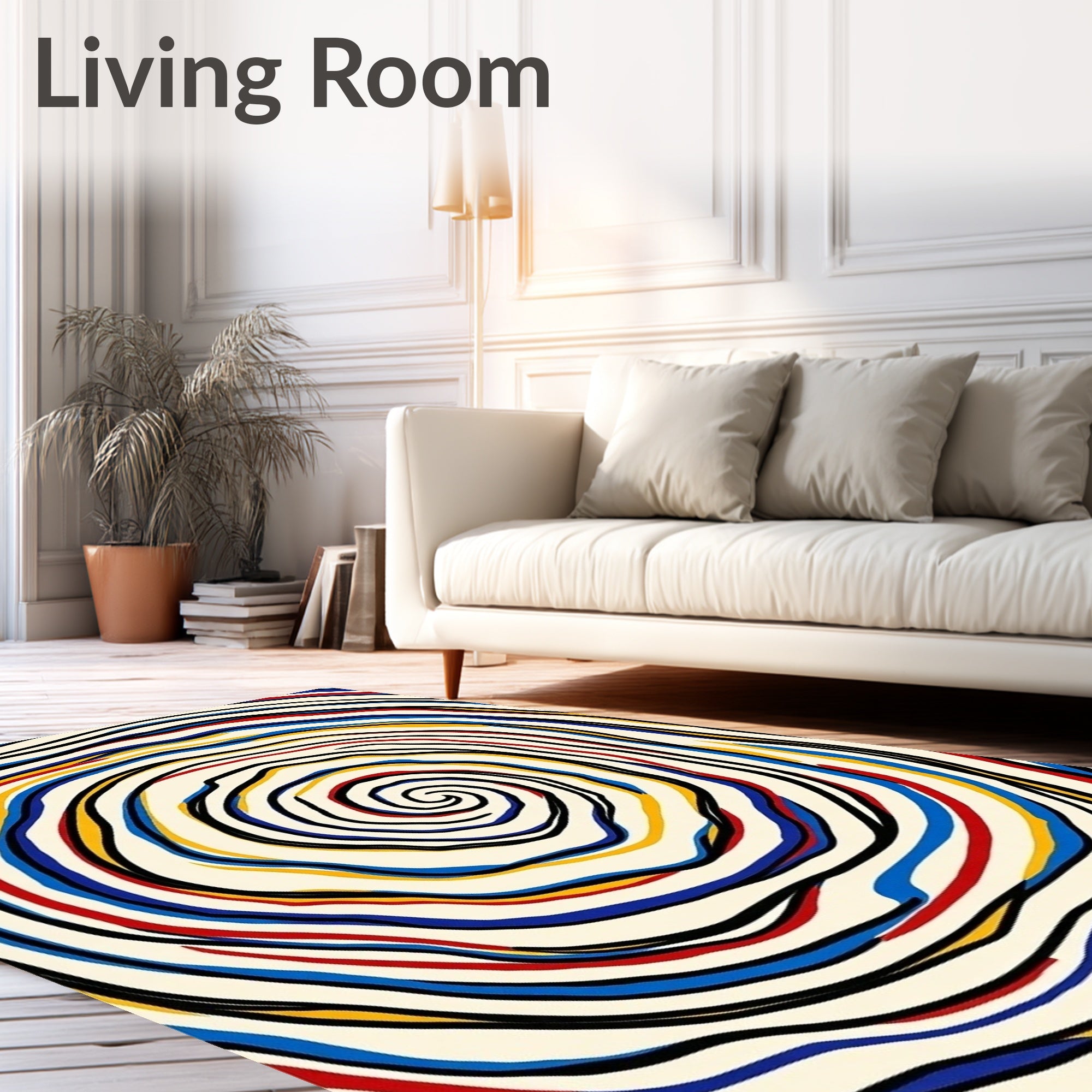 Ultra Soft Area Rug, Non Slip, Stain Resistant, Washable Area Rugs for Living Room, Bedroom, Spiral Vortex Statement With Concentric Wave Details(Black) Overview: