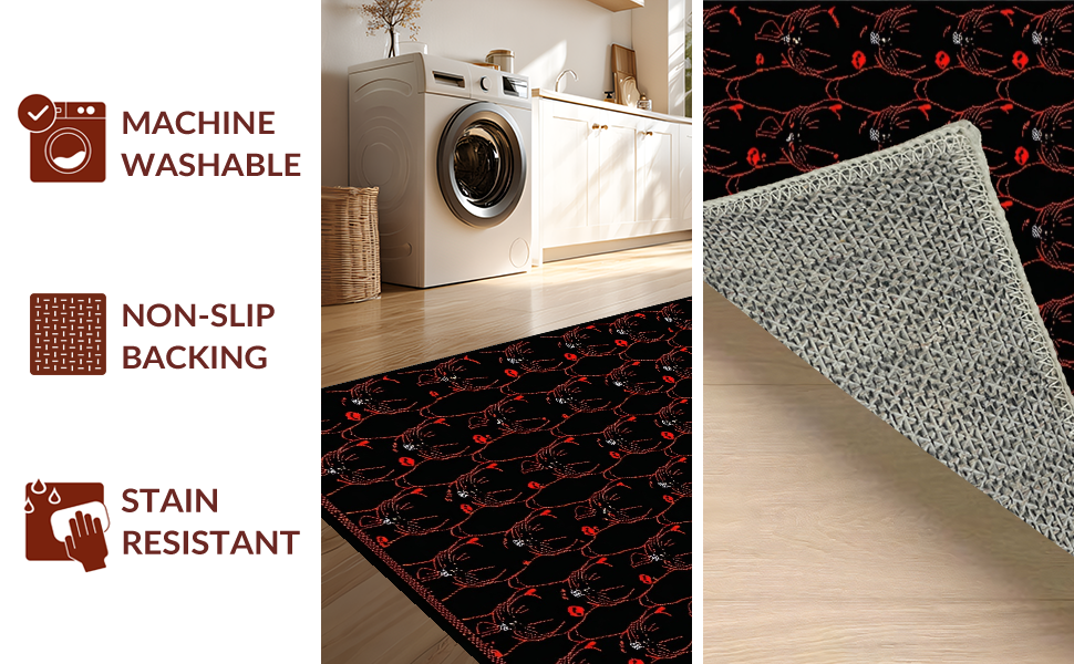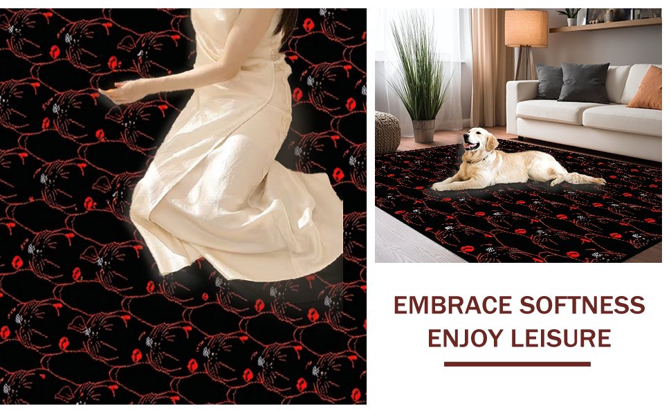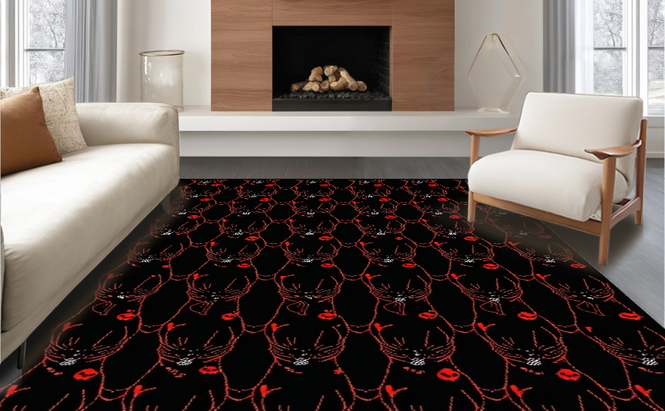 Ultra Soft Area Rug, Non Slip, Stain Resistant, Washable Area Rugs for Living Room, Bedroom, Spooky Cat Inspired Floor Covering(Black) Overview: