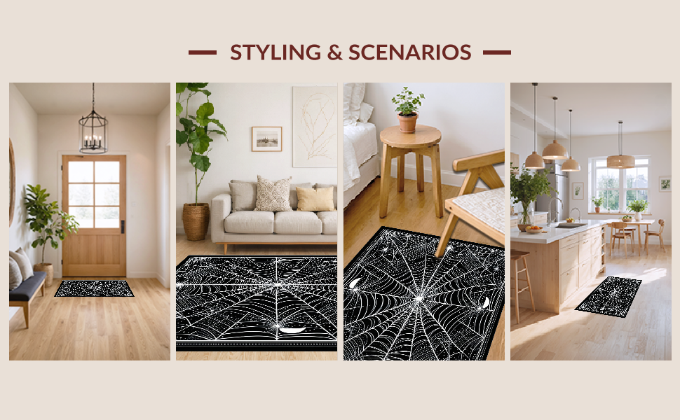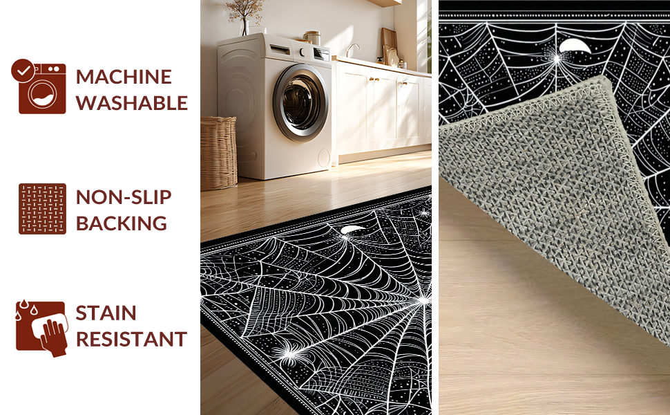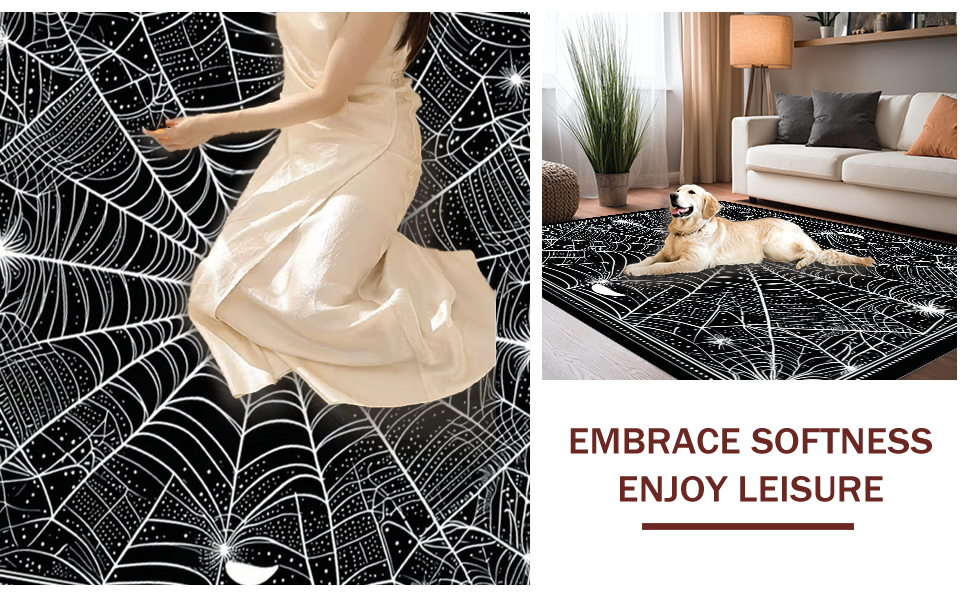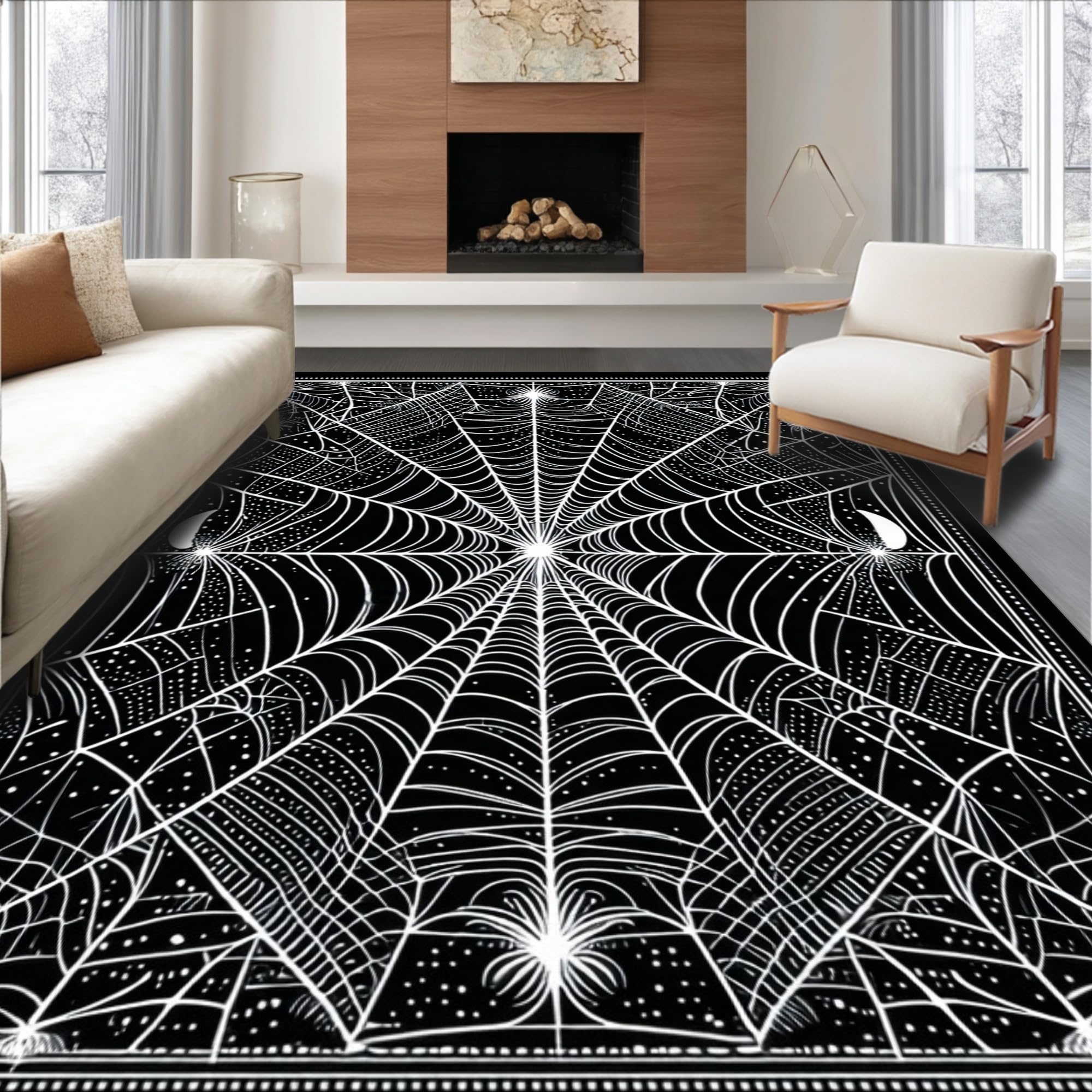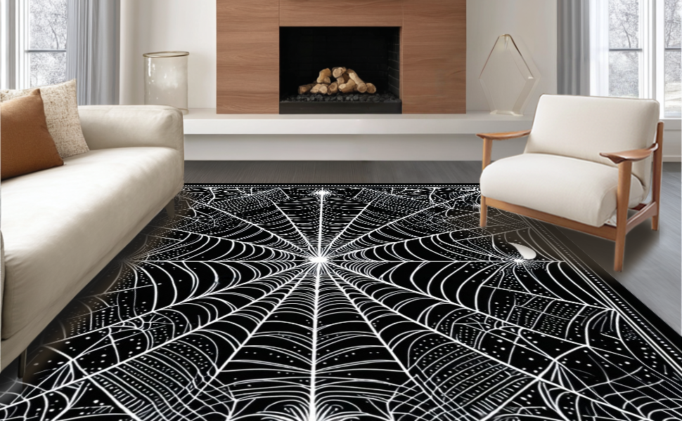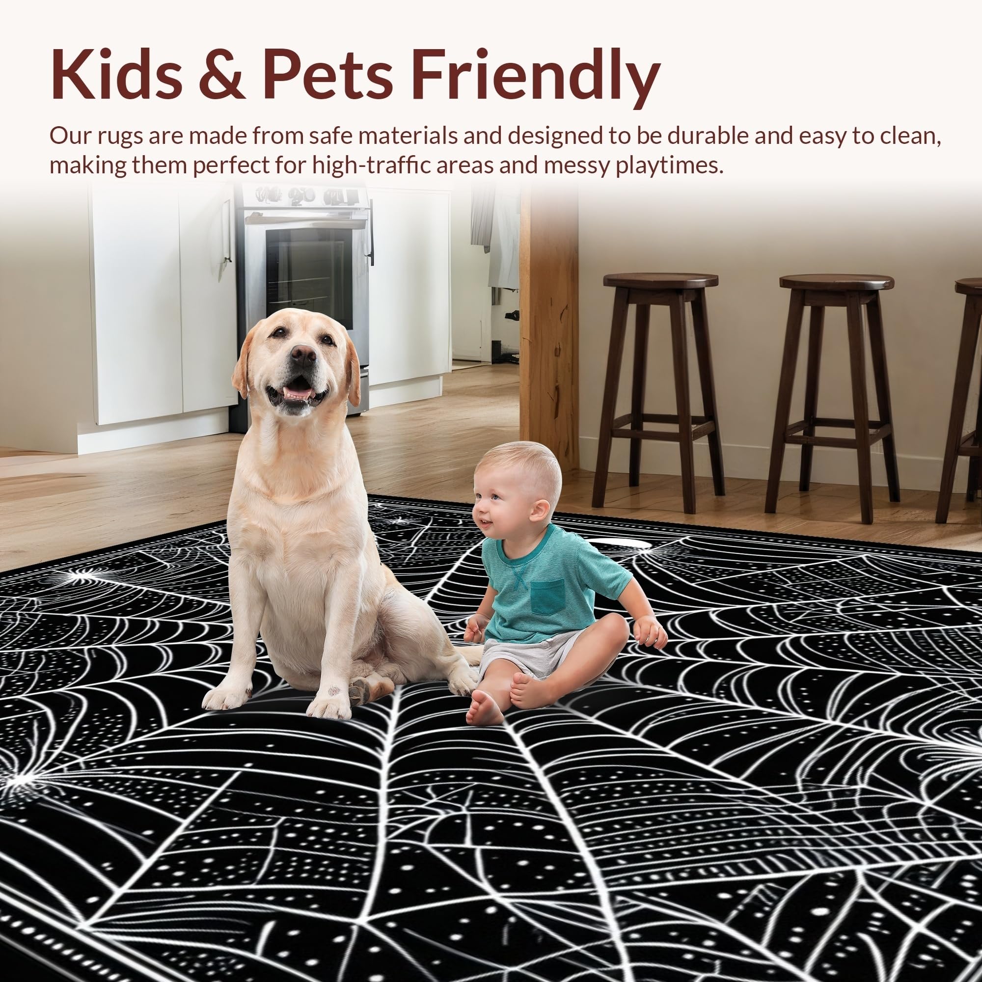 Ultra Soft Area Rug, Non Slip, Stain Resistant, Washable Area Rugs for Living Room, Bedroom, Spooky Minimalist Black Pattern(Black) Overview: