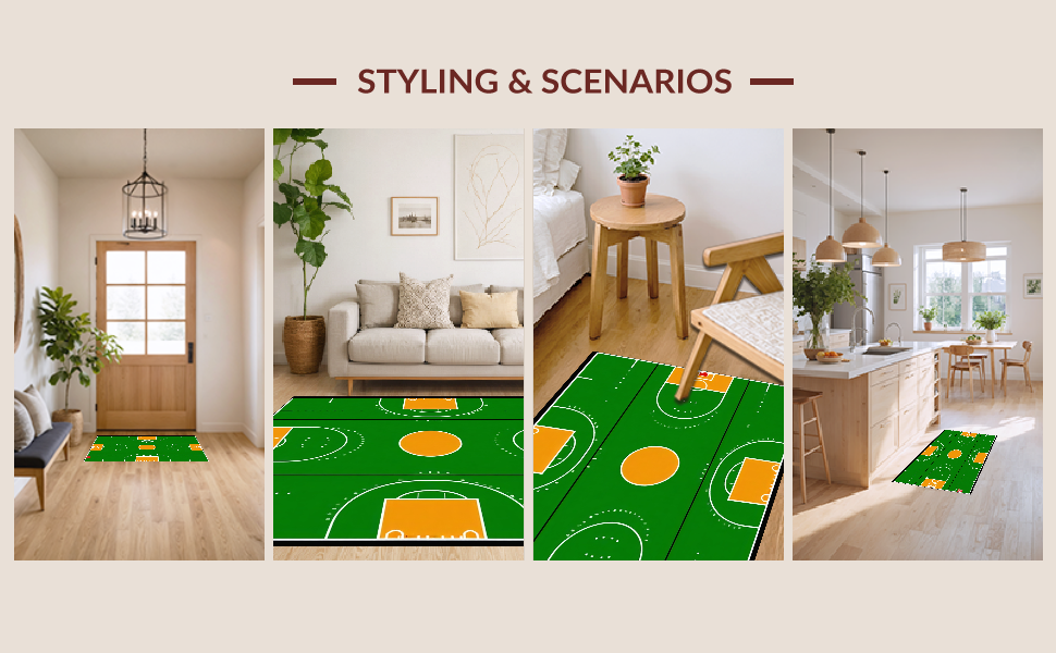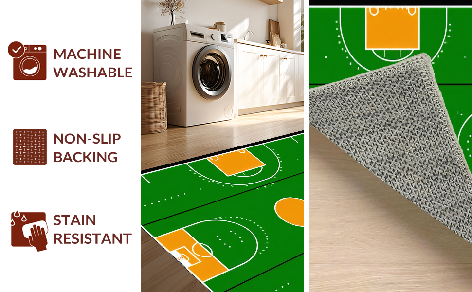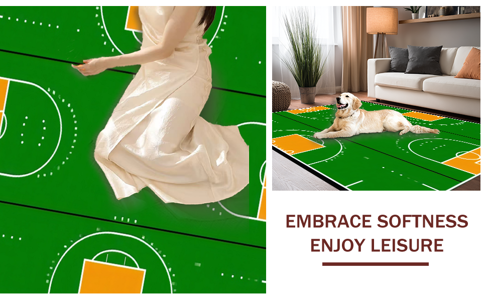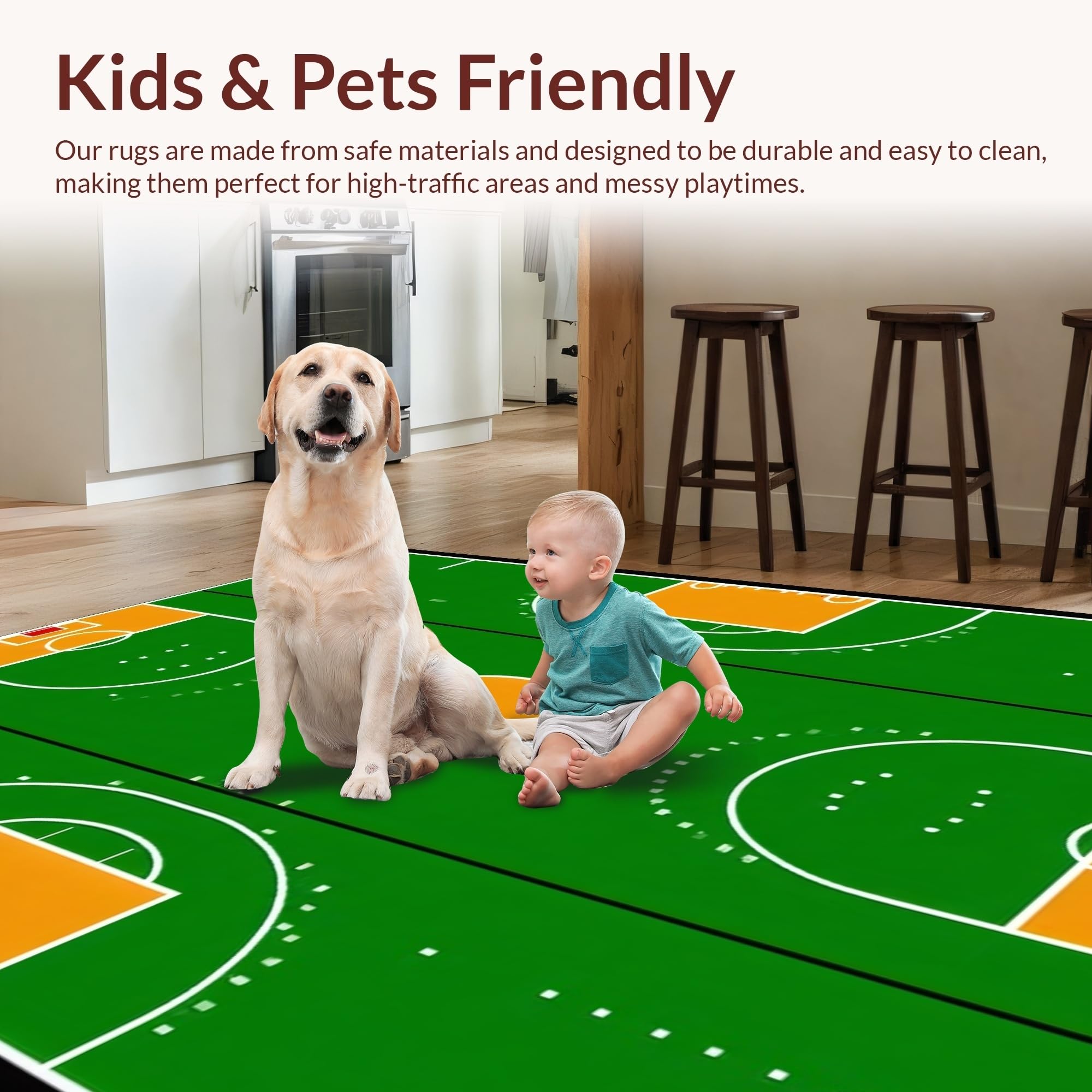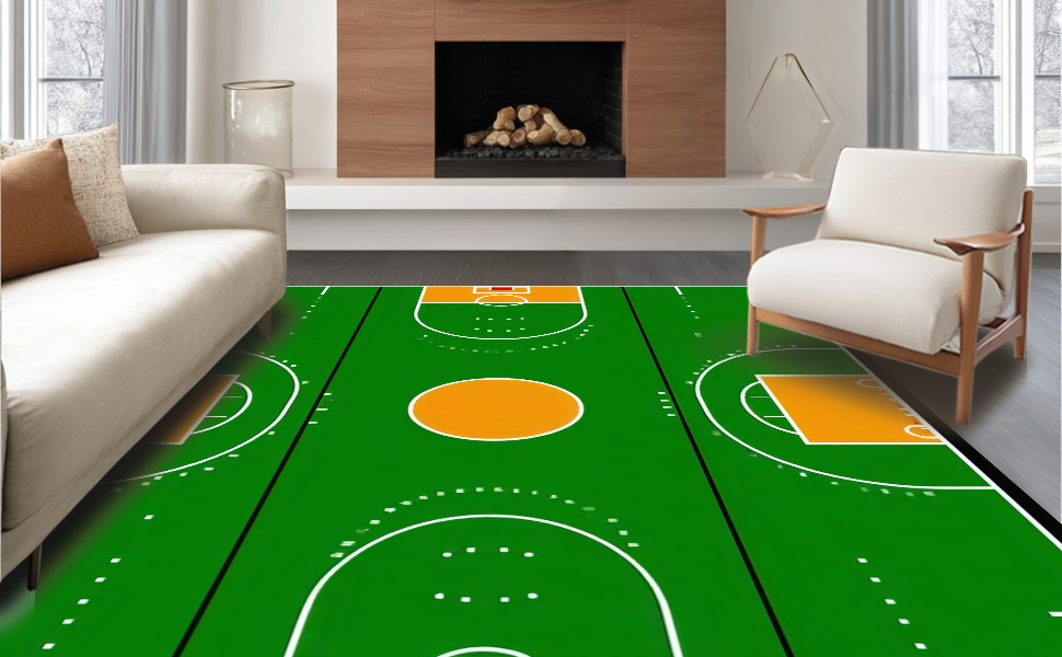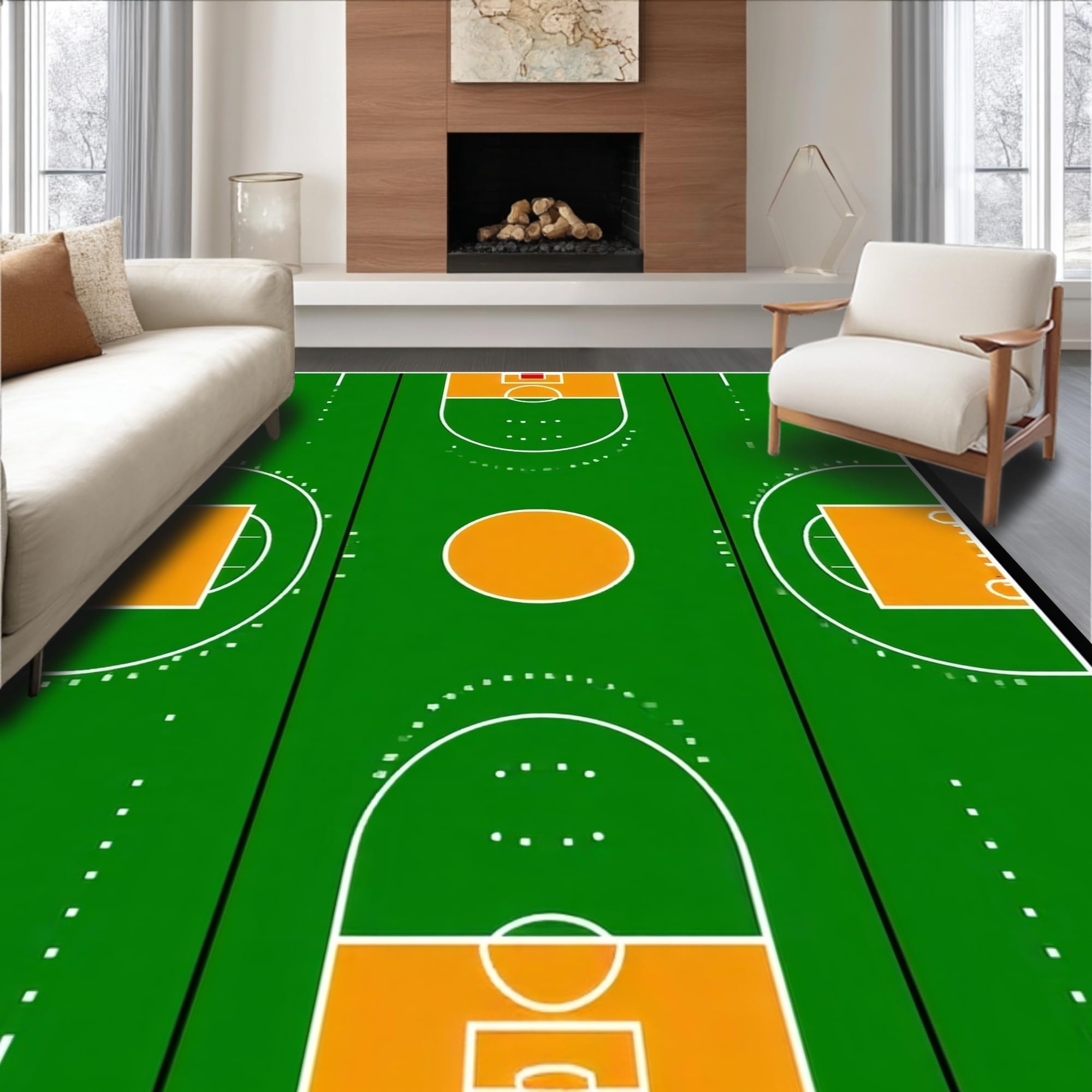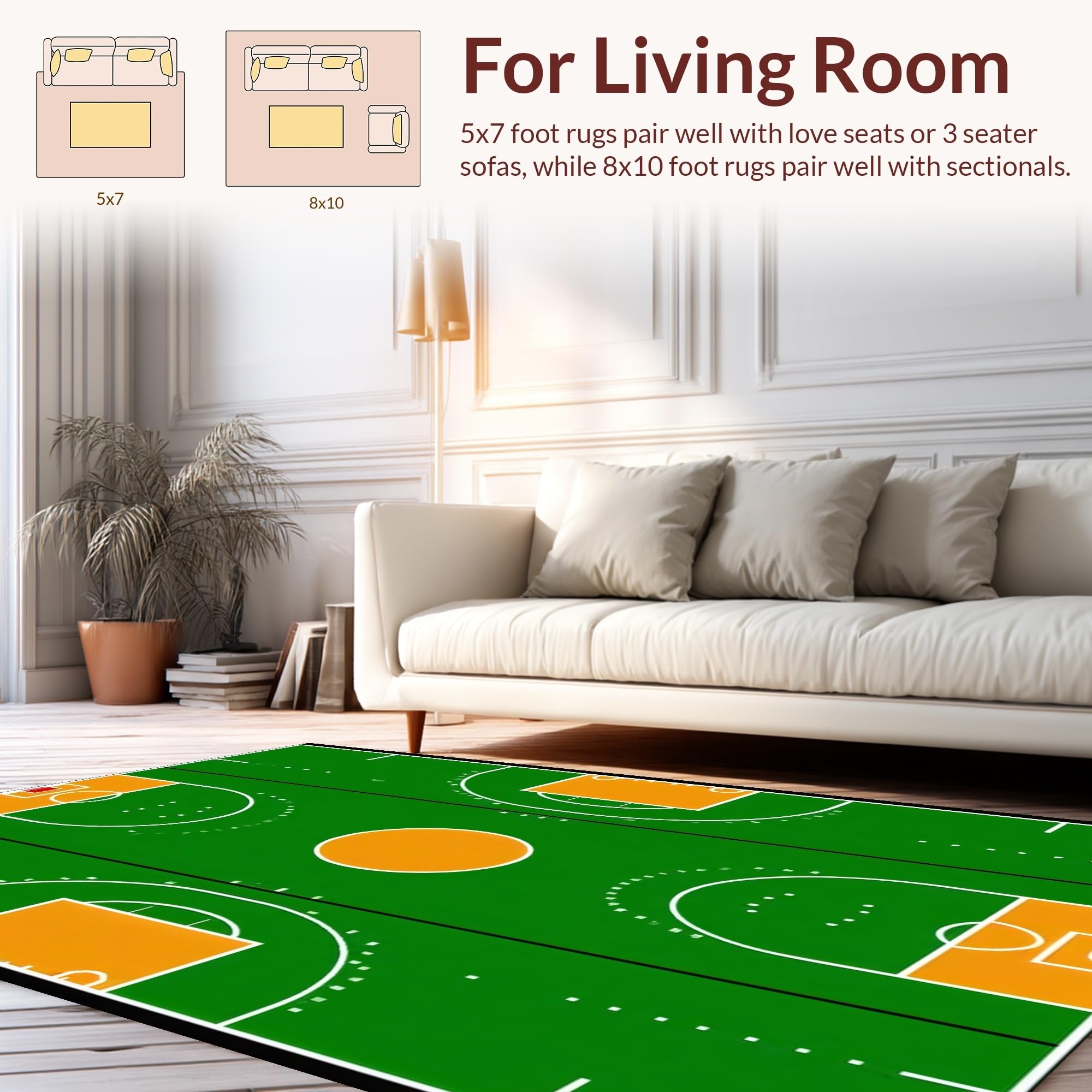 Ultra Soft Area Rug, Non Slip, Stain Resistant, Washable Area Rugs for Living Room, Bedroom, Sporty Monochrome Basketball Aesthetic(Green) Overview:
