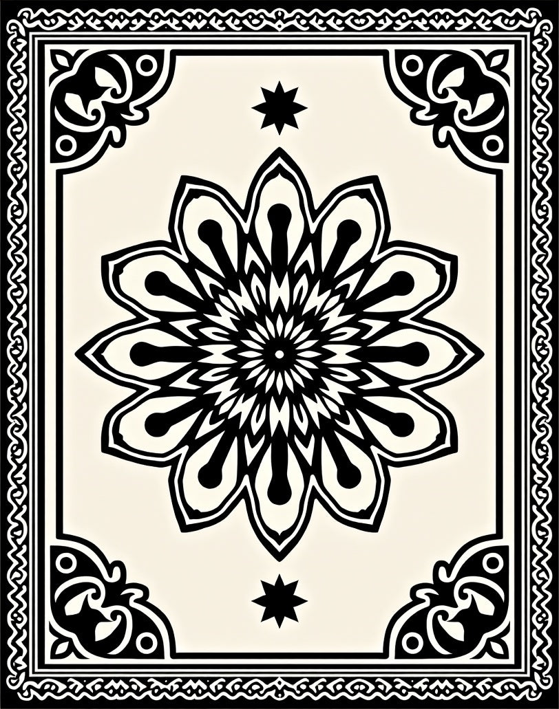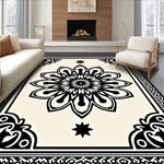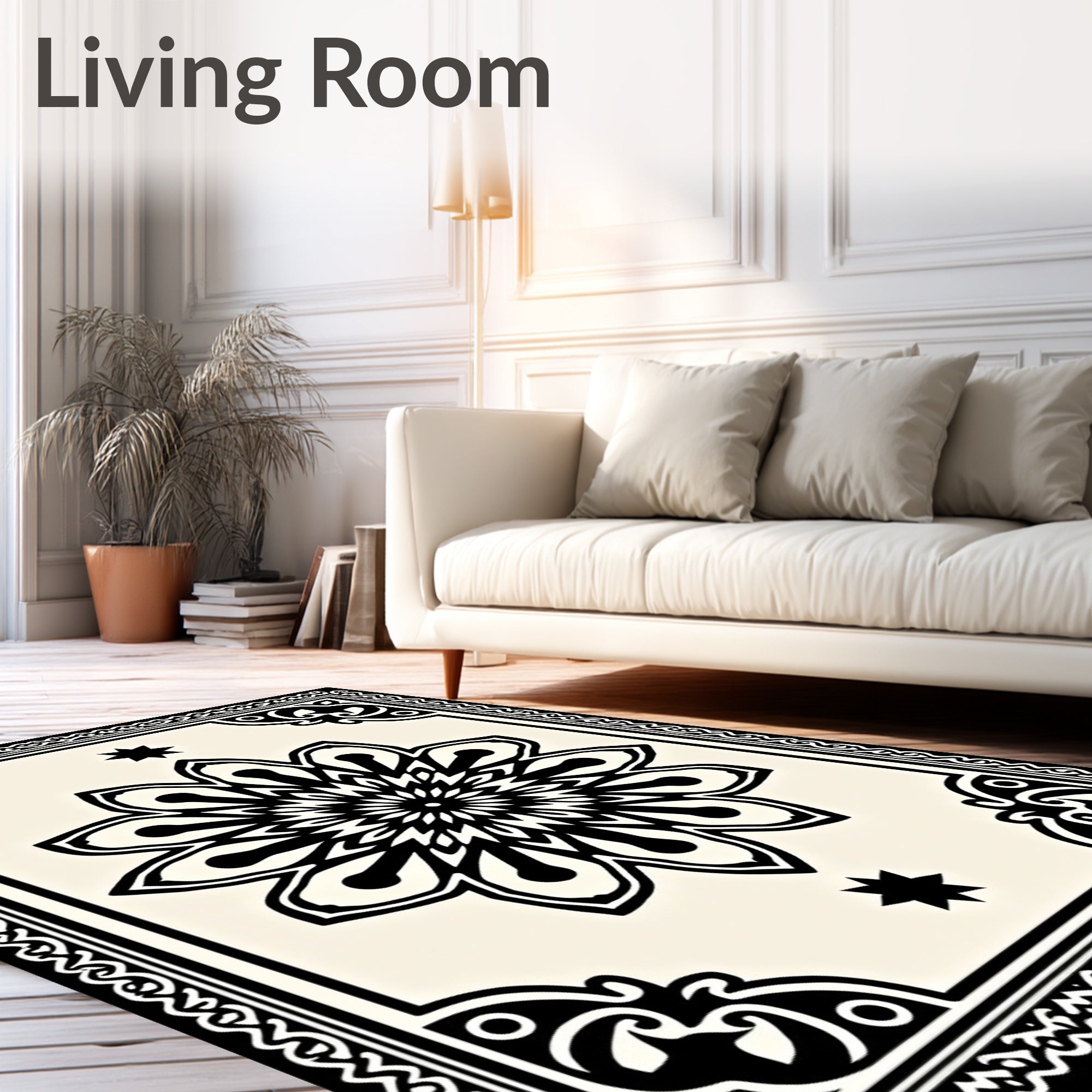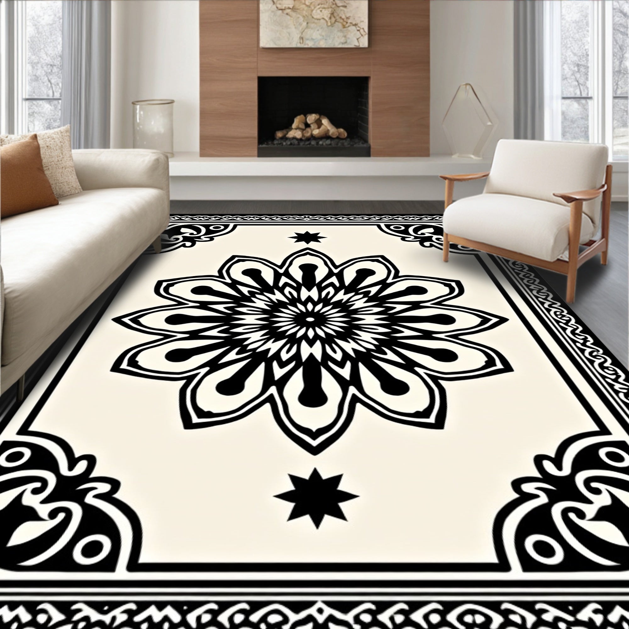 Ultra Soft Area Rug, Non Slip, Stain Resistant, Washable Area Rugs for Living Room, Bedroom, Starburst Design with Fretwork Border Details(Black) Overview: