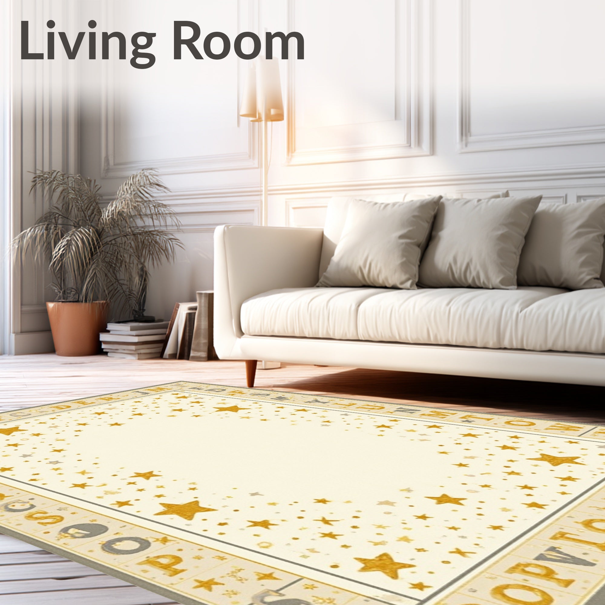 Ultra Soft Area Rug, Non Slip, Stain Resistant, Washable Area Rugs for Living Room, Bedroom, Starlit Alphabet Circle Area with Cosmic Letters and Beige Accents(Beige) Overview: