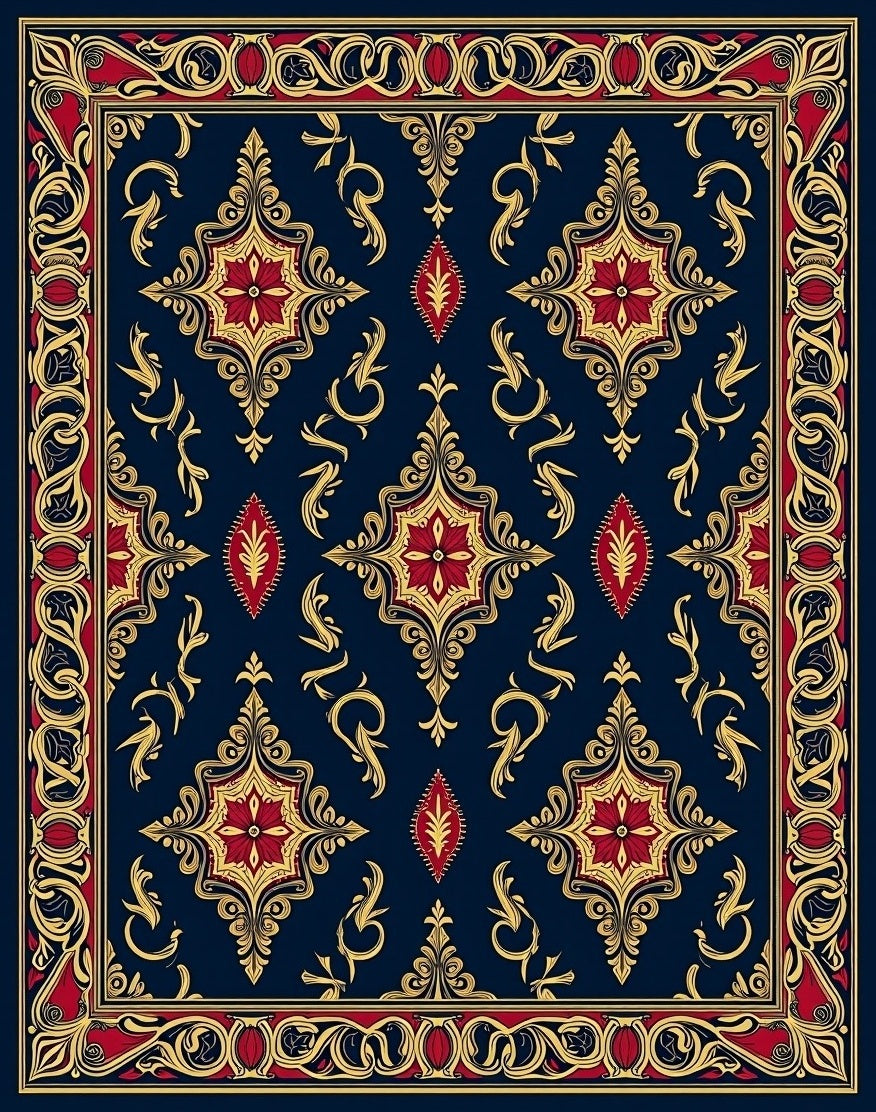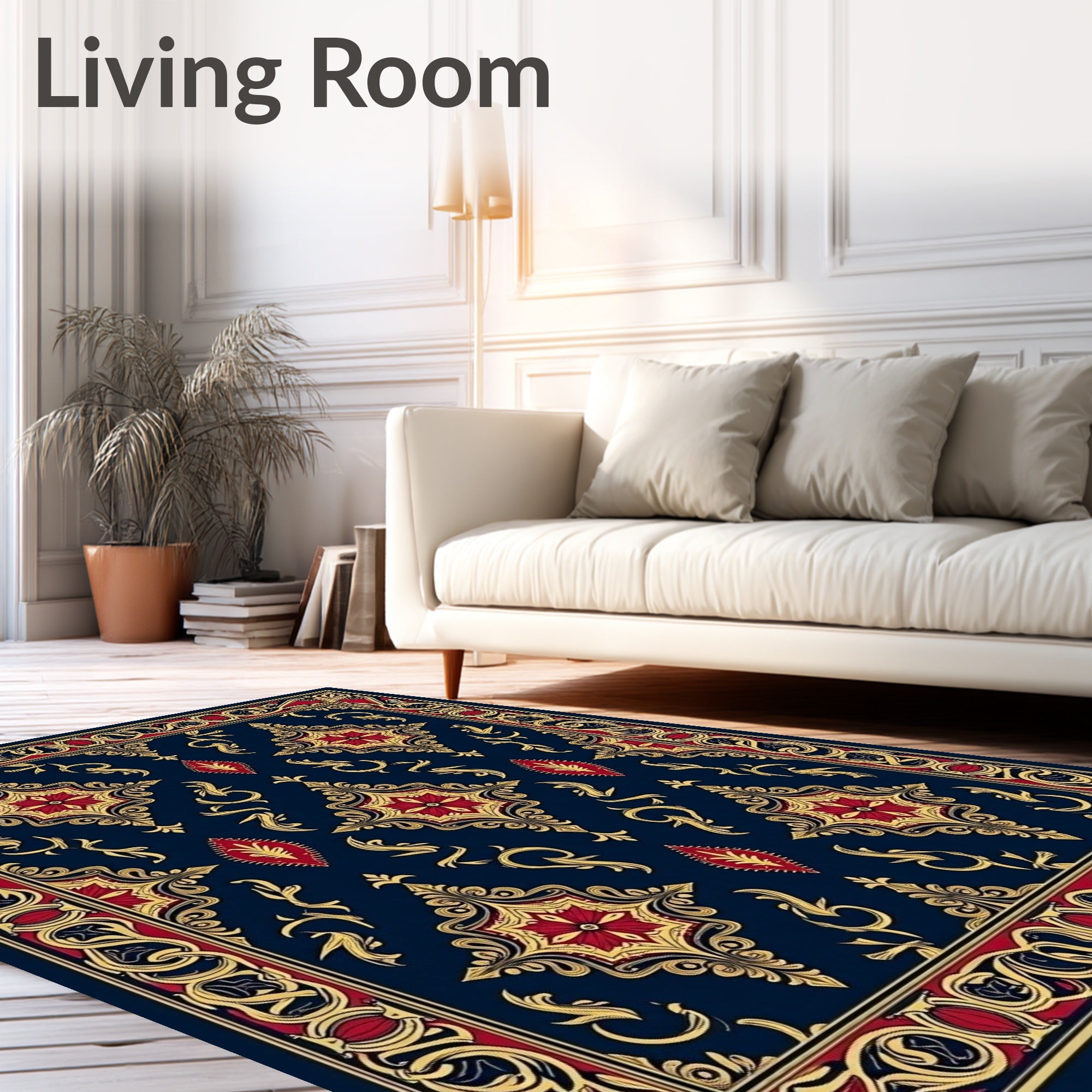 Ultra Soft Area Rug, Non Slip, Stain Resistant, Washable Area Rugs for Living Room, Bedroom, Stoffer Heritage Elegant Damask Nouveau Embellished(Blue) Overview: