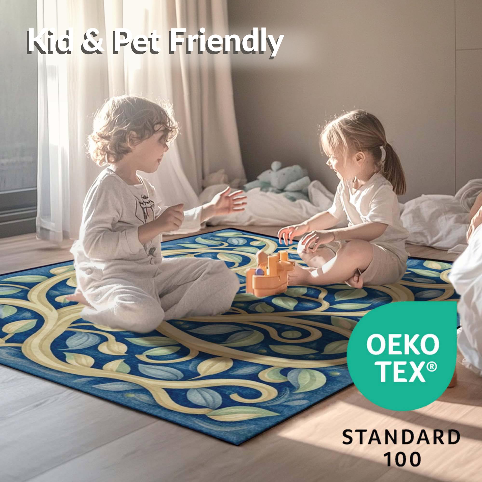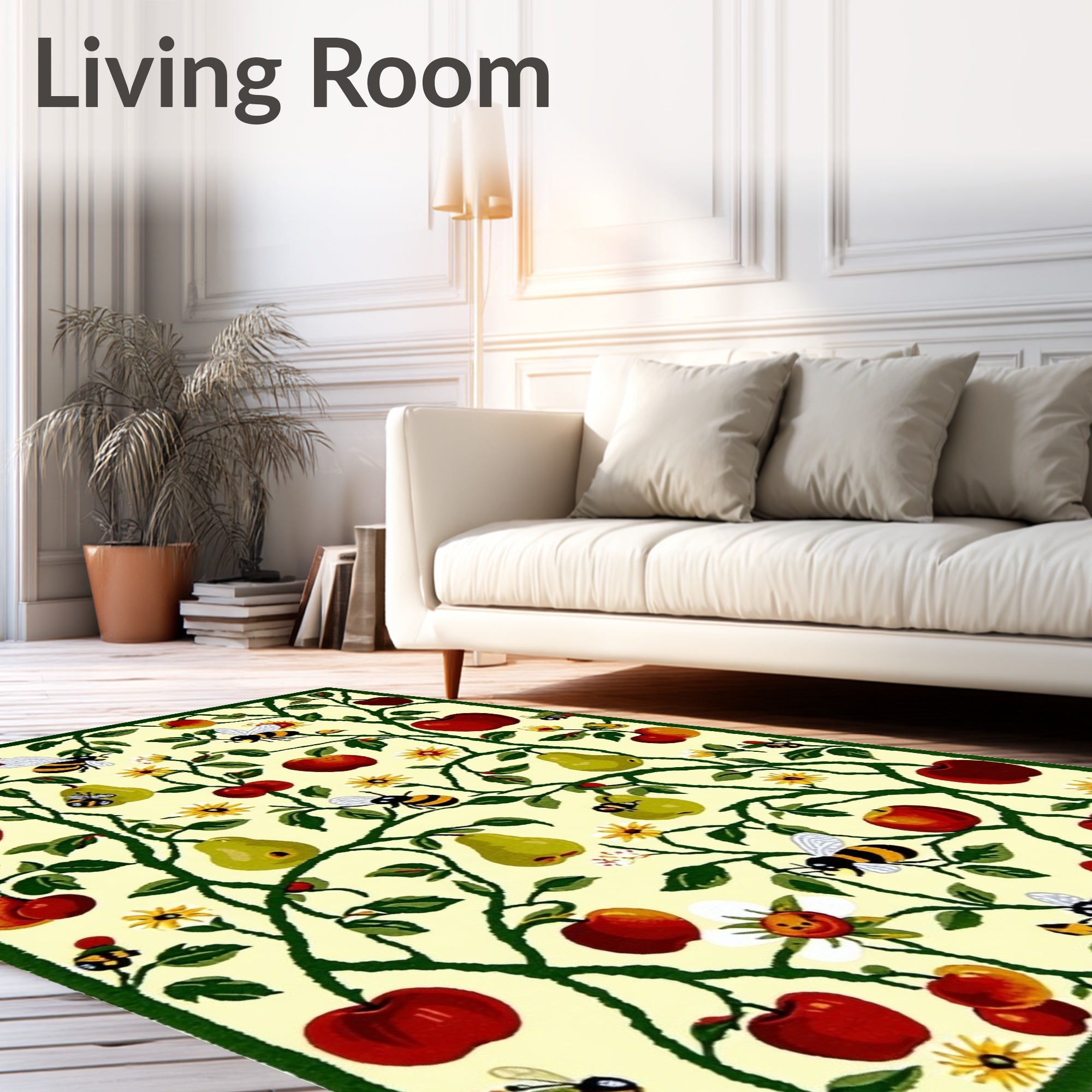 Ultra Soft Area Rug, Non Slip, Stain Resistant, Washable Area Rugs for Living Room, Bedroom, Storybook Orchard With Fruit Insects and Wildflowers(Red) Overview: