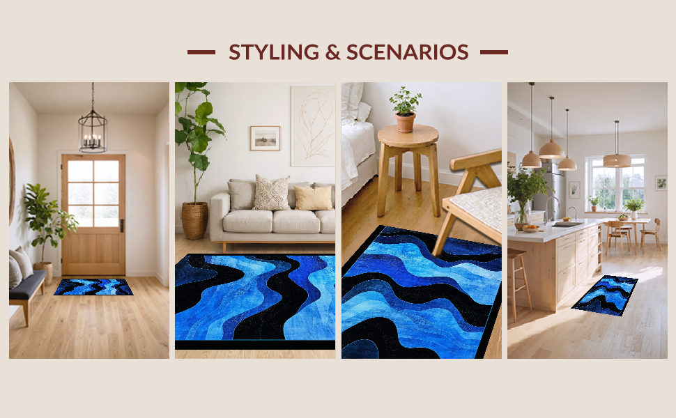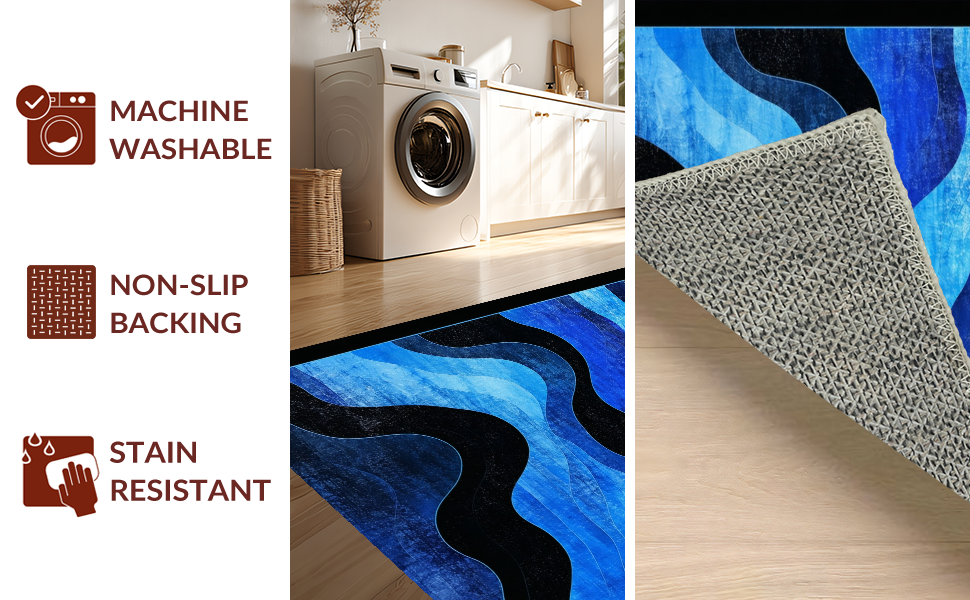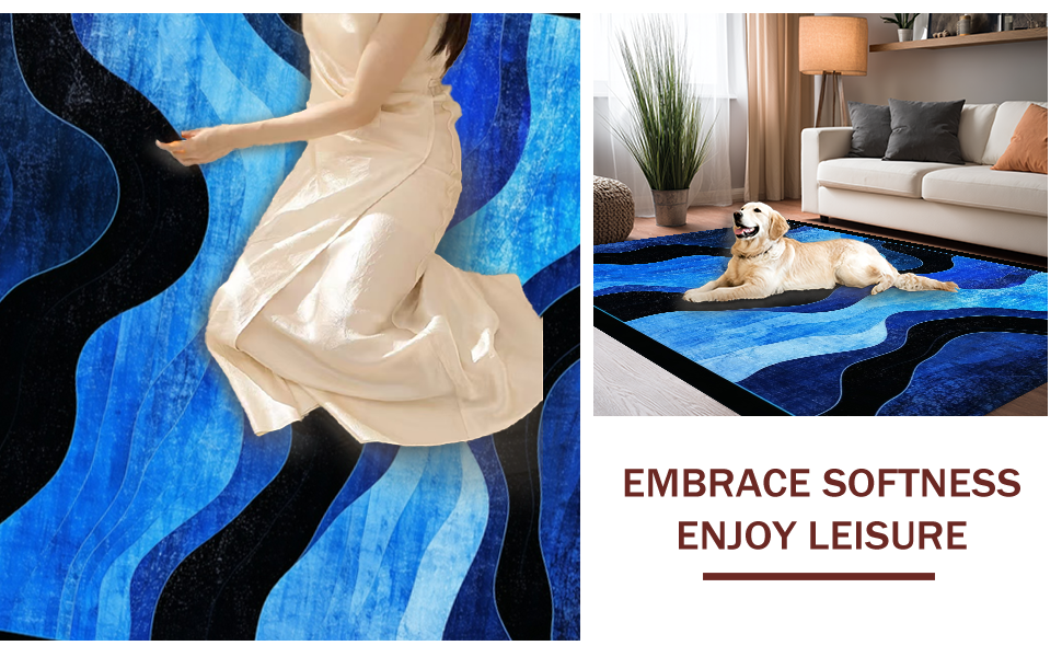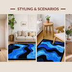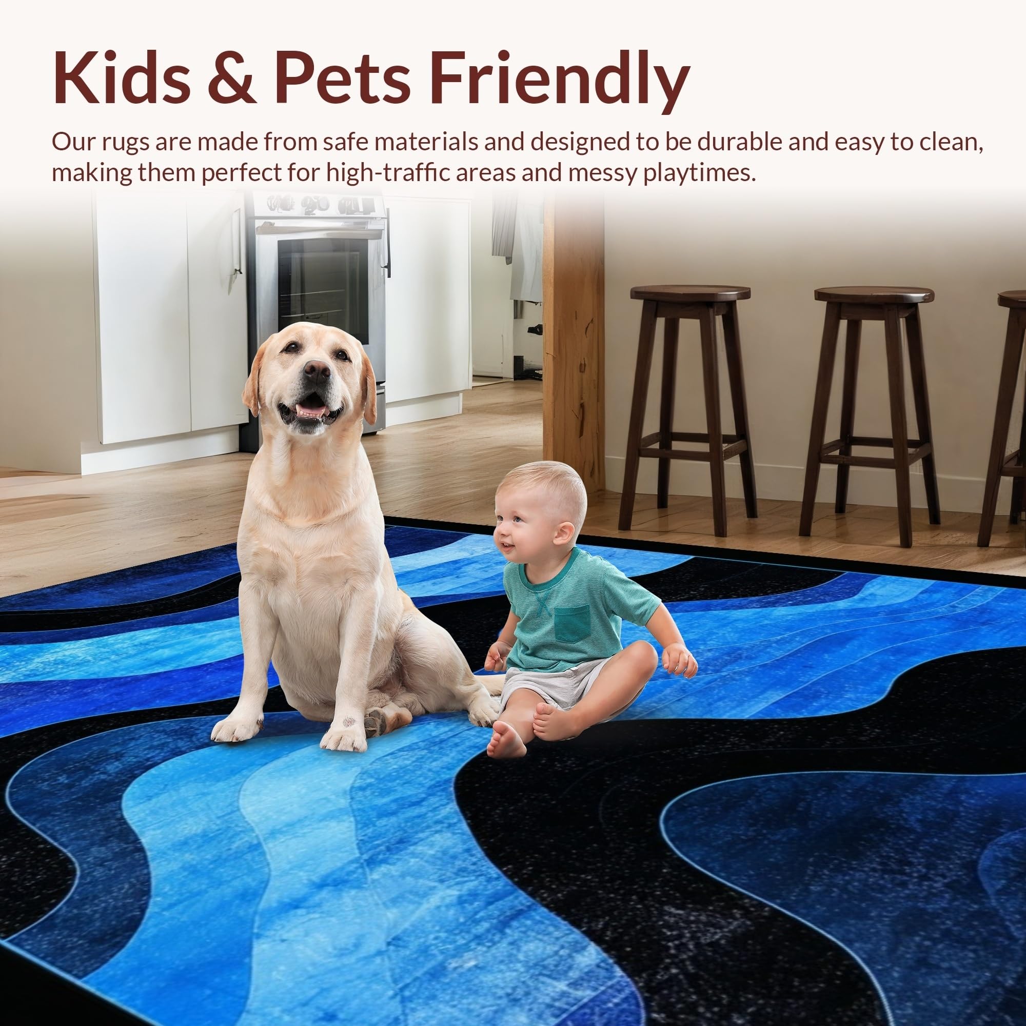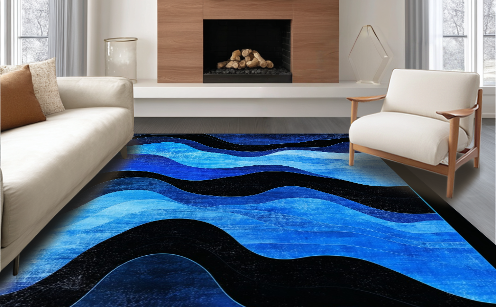 Ultra Soft Area Rug, Non Slip, Stain Resistant, Washable Area Rugs for Living Room, Bedroom, Striking Abstract Fluid Patterns(Blue) Overview: