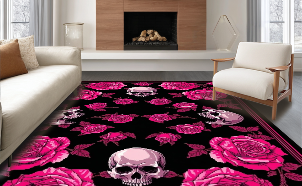Ultra Soft Area Rug, Non Slip, Stain Resistant, Washable Area Rugs for Living Room, Bedroom, Striking Black and Pink Design(Black) Overview: