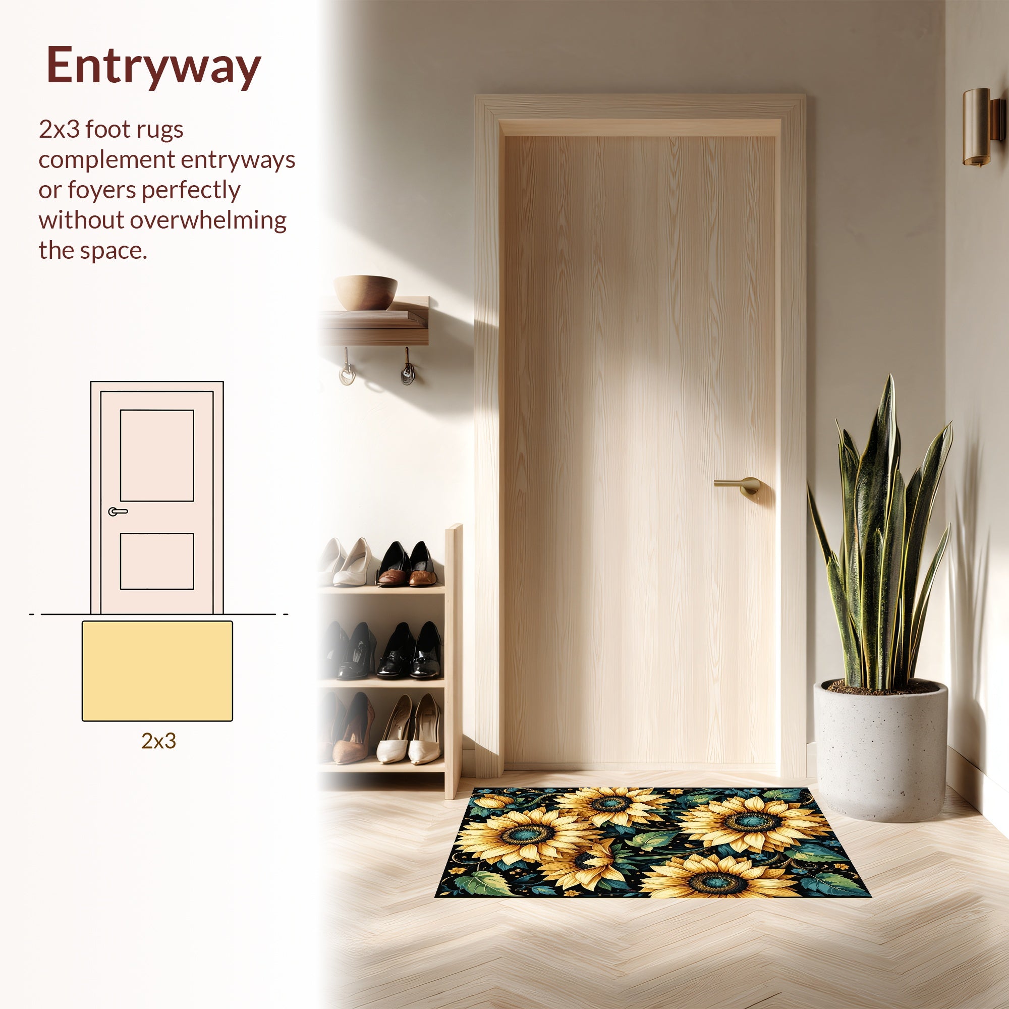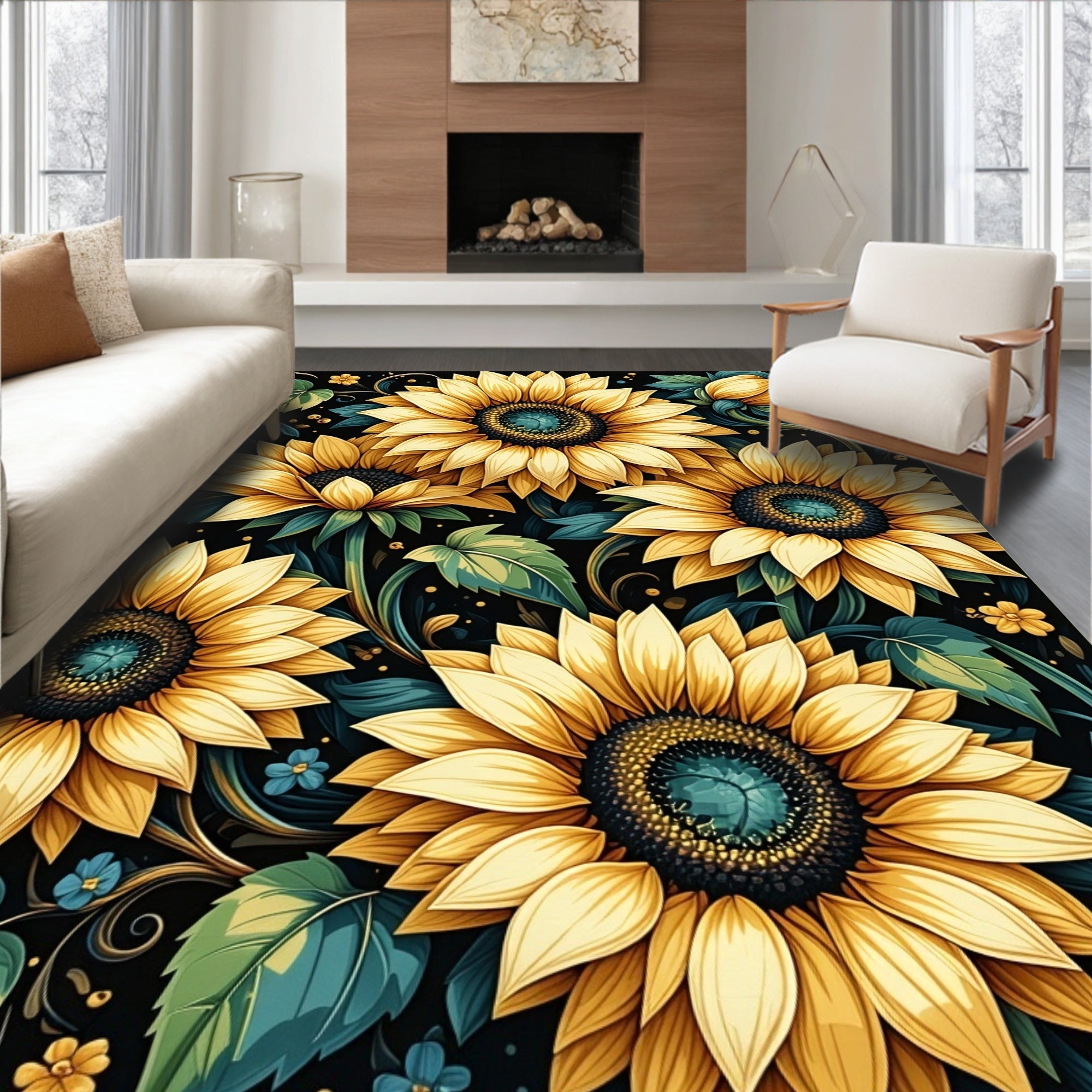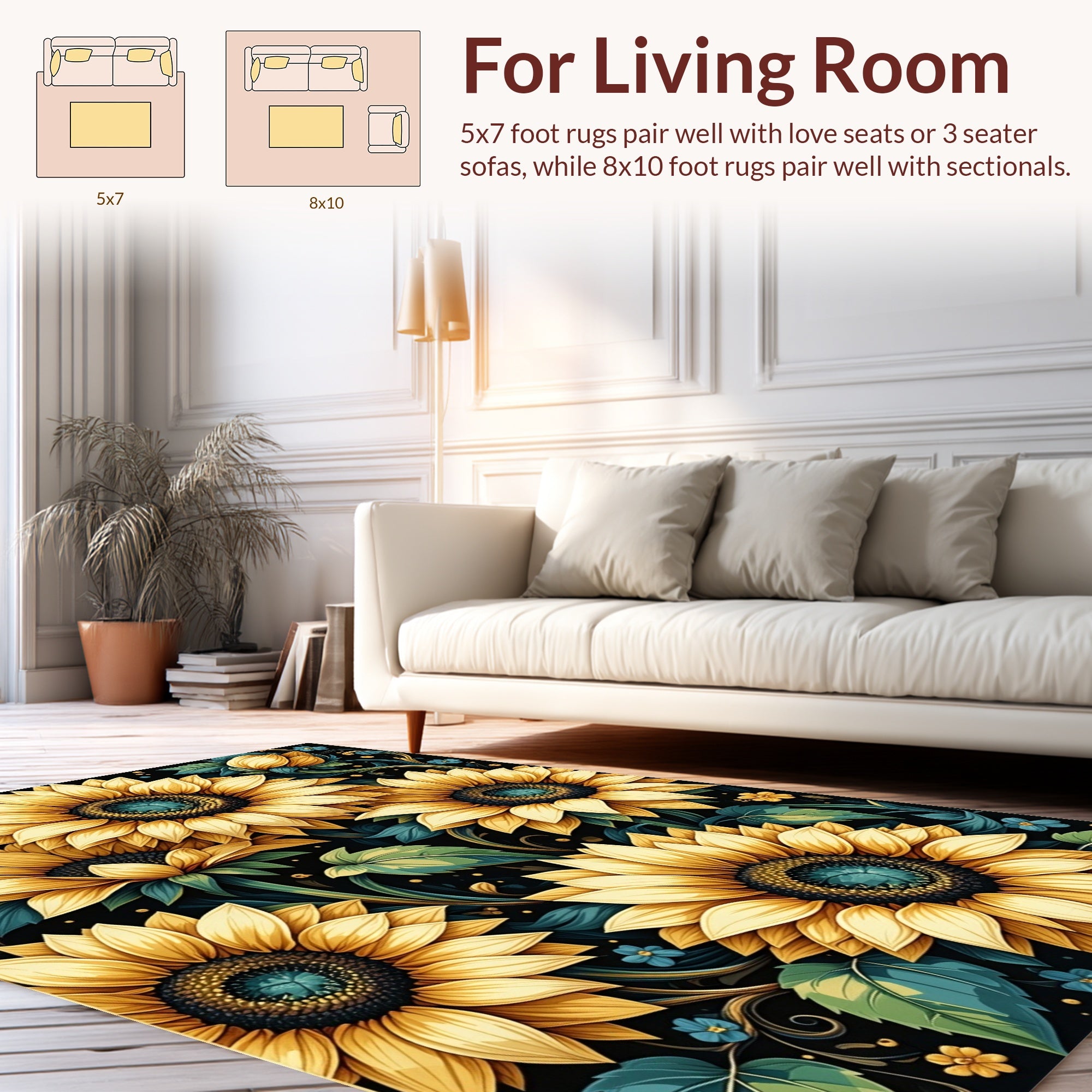 Flatwoven High Traffic Area Rug, Striking Black Background Design, Non Slip, Stain Resistant, Washable Area Rugs for Living Room, Bedroom (Yellow) Overview: