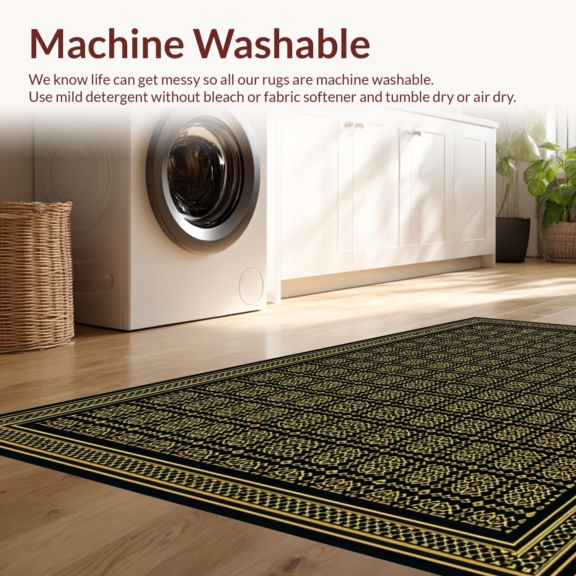 - Machine Washable: Our rugs can be easily thrown in the wash machine.