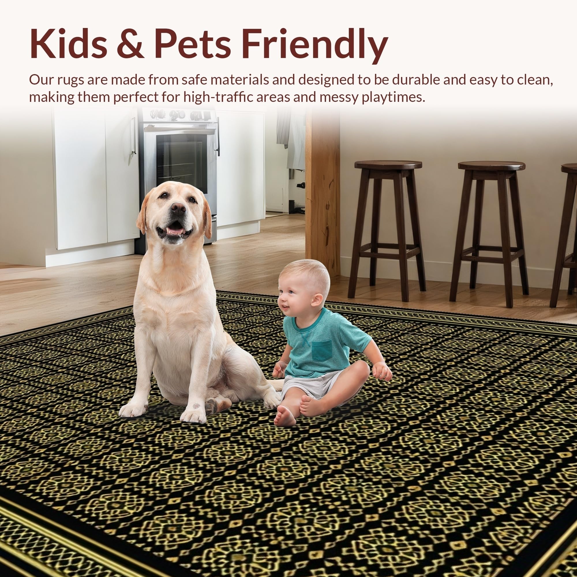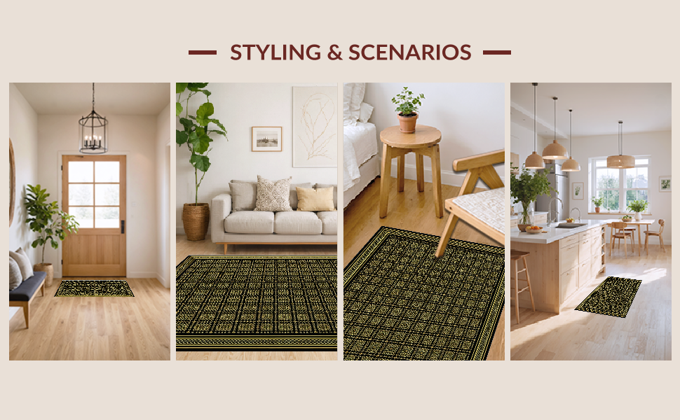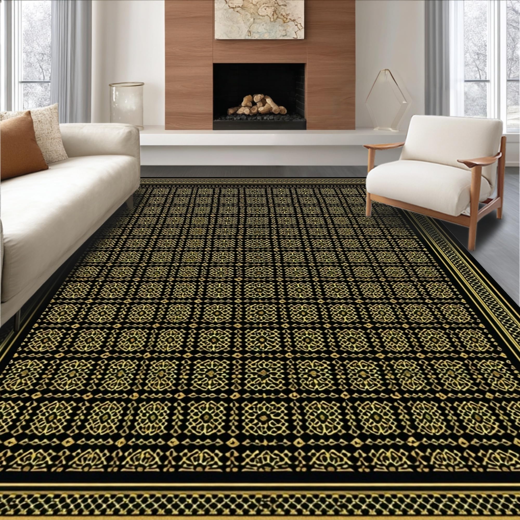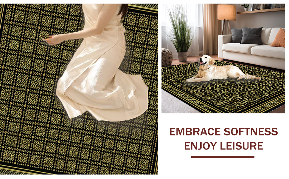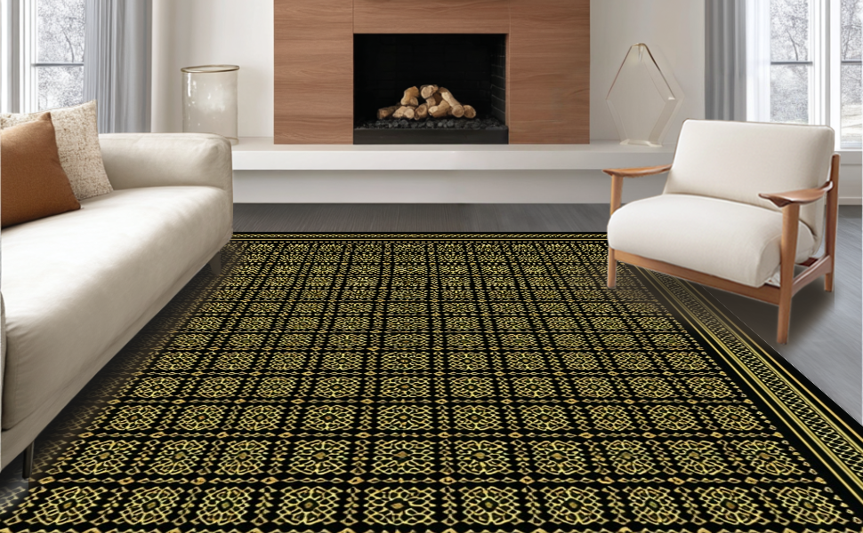 Ultra Soft Area Rug, Non Slip, Stain Resistant, Washable Area Rugs for Living Room, Bedroom, Striking Black Trellis Motif(Black) Overview: