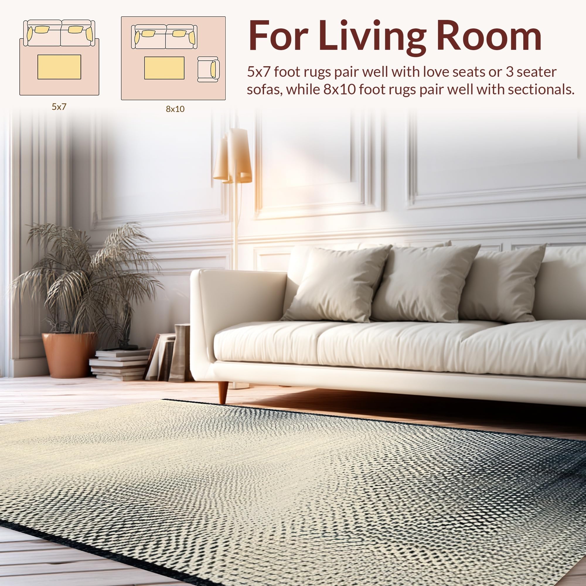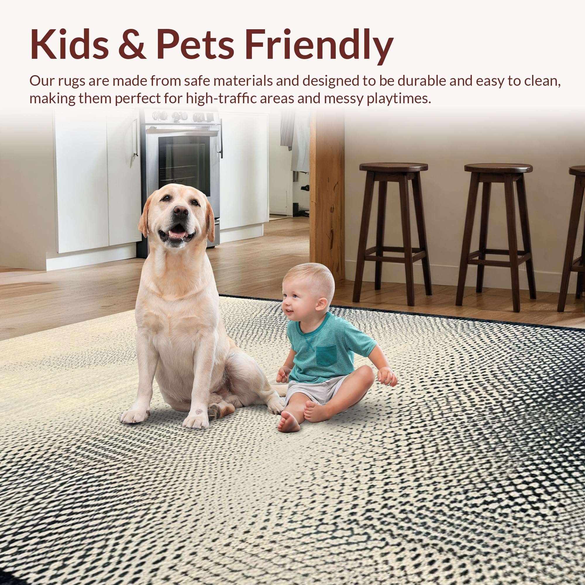 Ultra Soft Area Rug, Non Slip, Stain Resistant, Washable Area Rugs for Living Room, Bedroom, Striking Charcoal Animal Design(Beige) Overview: