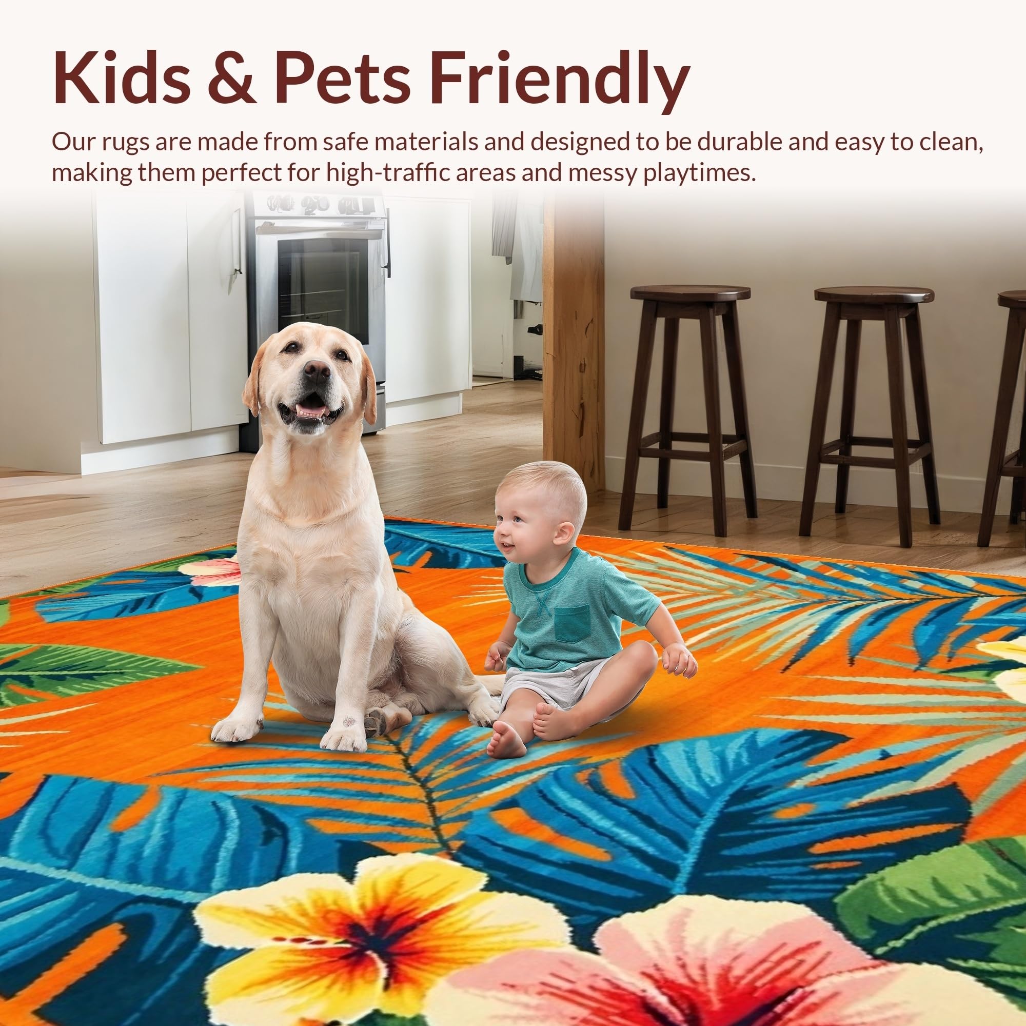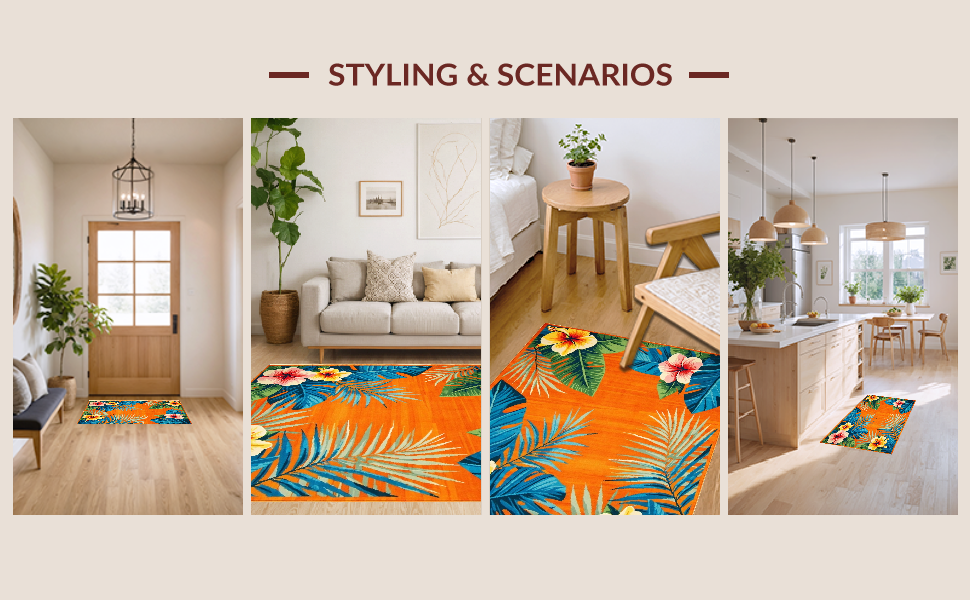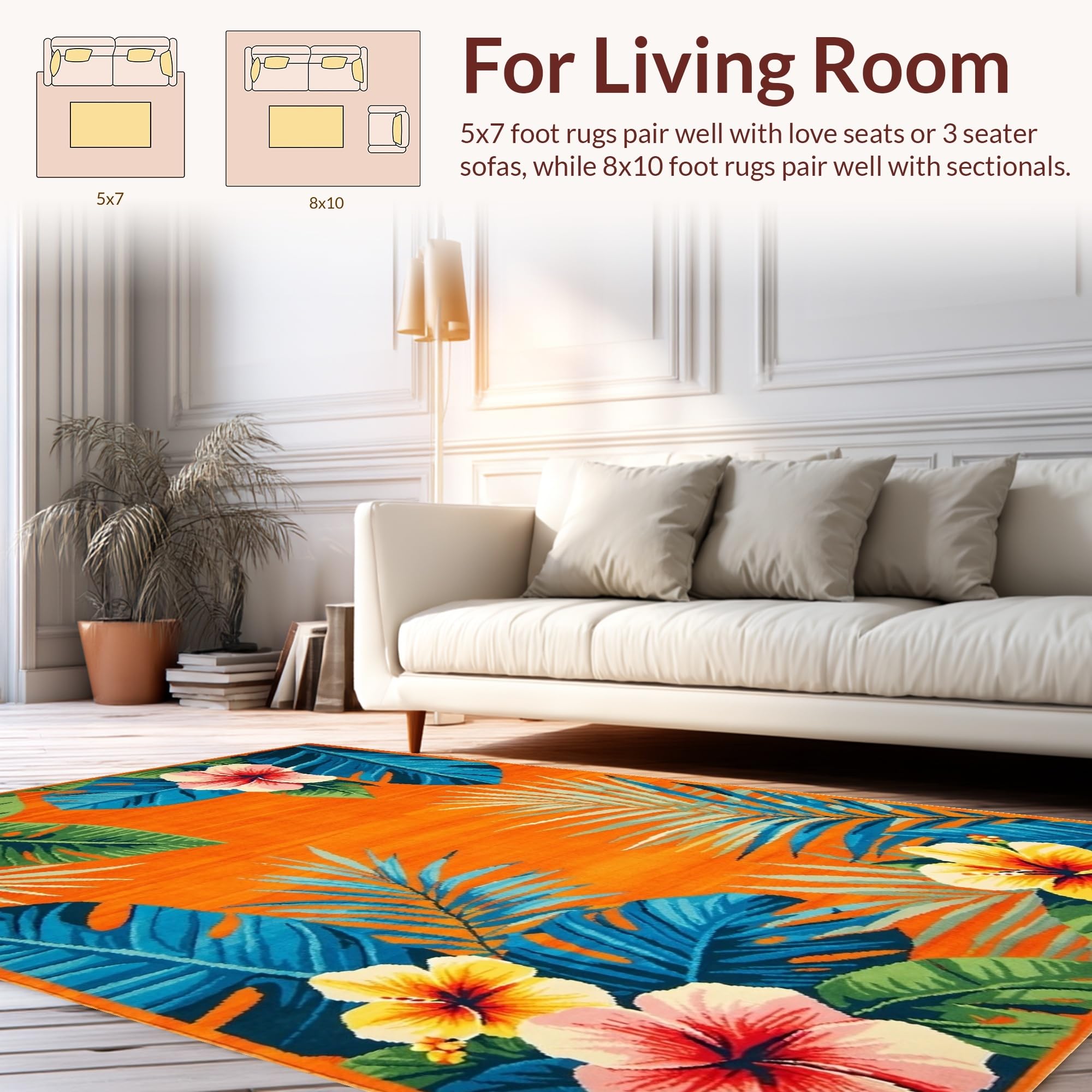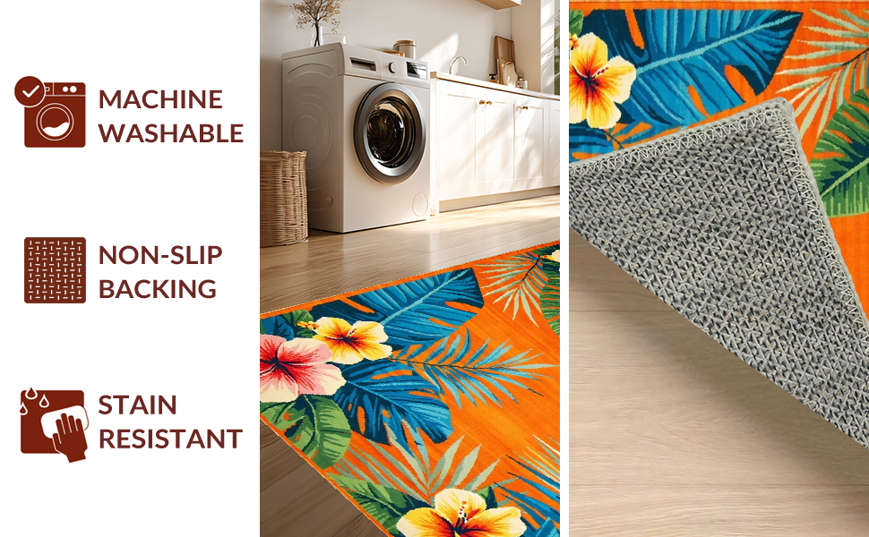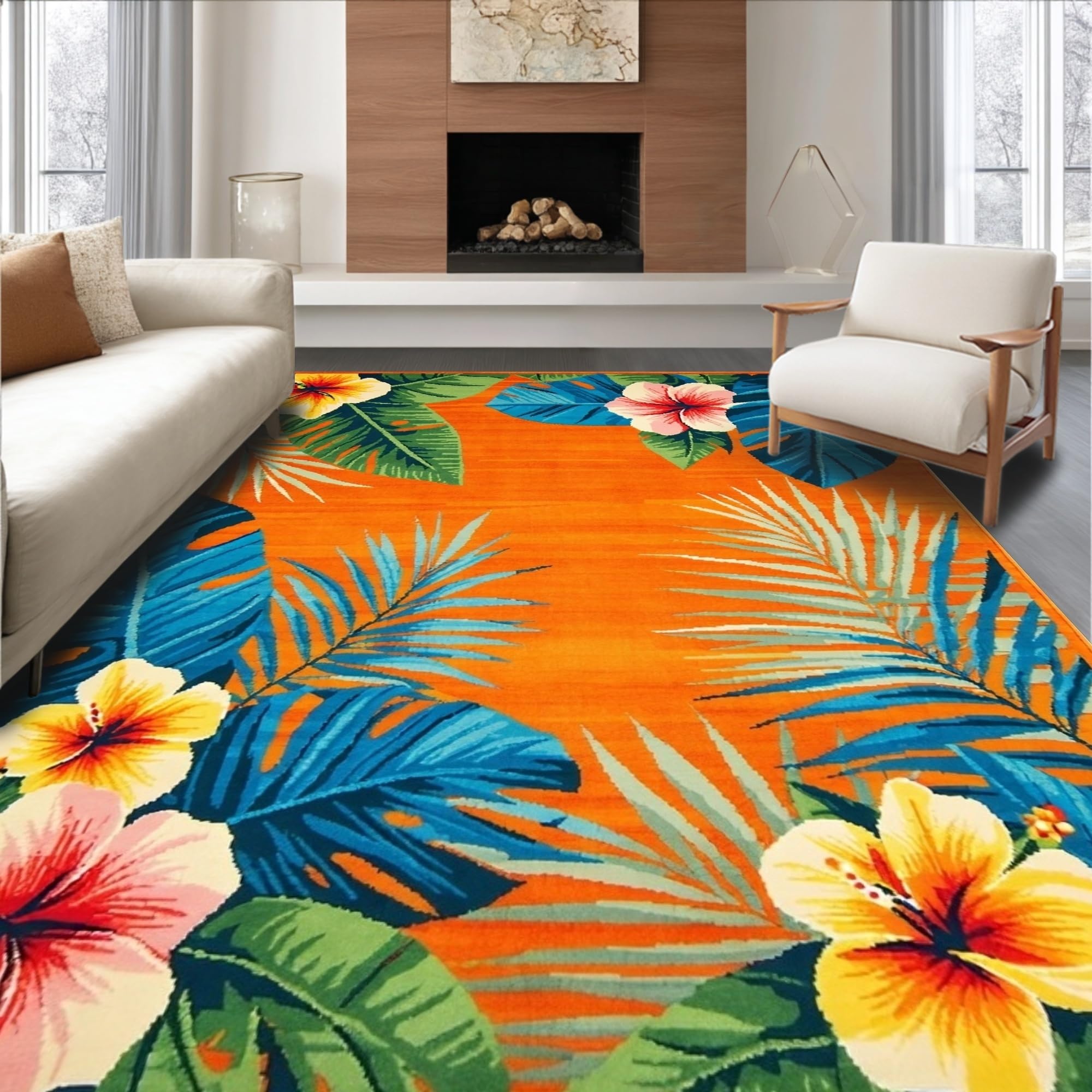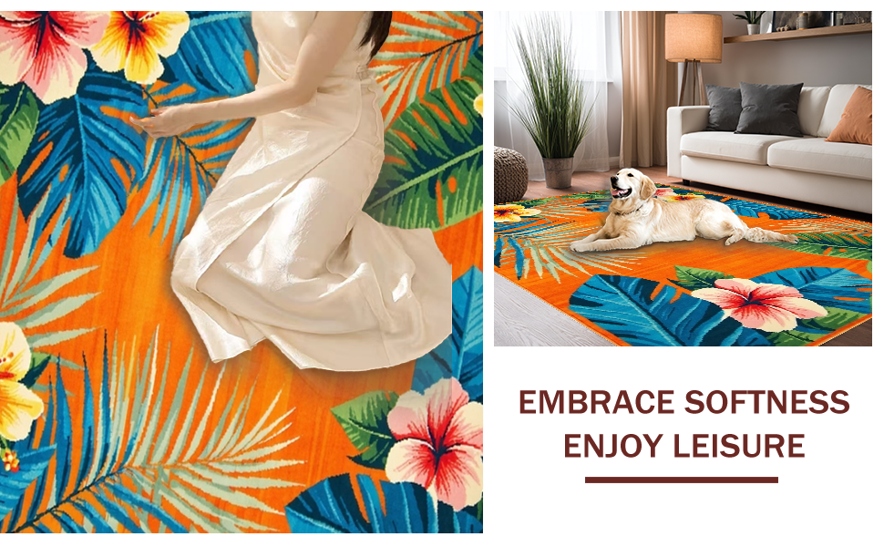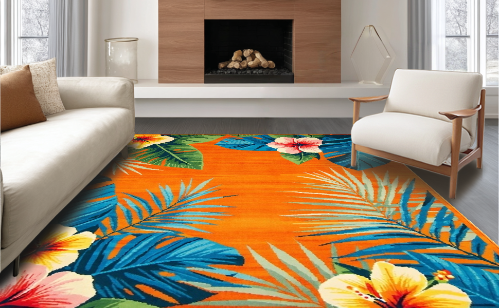 Ultra Soft Area Rug, Non Slip, Stain Resistant, Washable Area Rugs for Living Room, Bedroom, Striking Colorful Petal Composition(Orange) Overview: