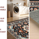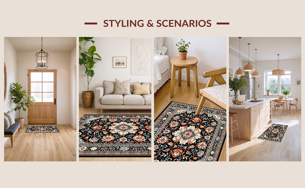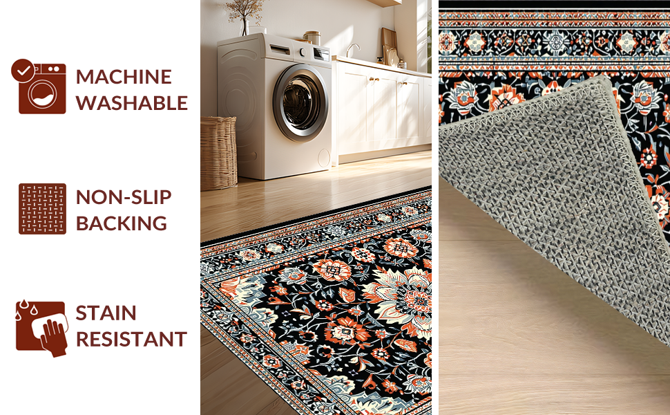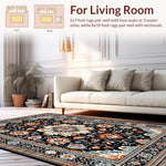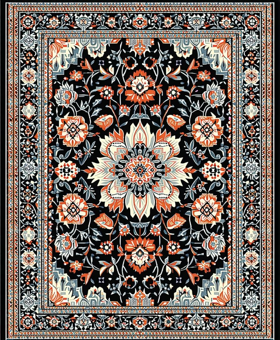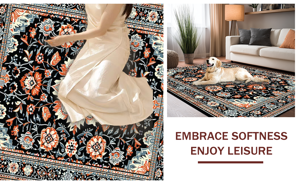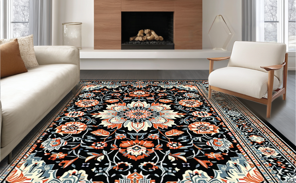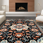 Ultra Soft Area Rug, Non Slip, Stain Resistant, Washable Area Rugs for Living Room, Bedroom, Striking Dark Floral Artistry(Black) Overview: