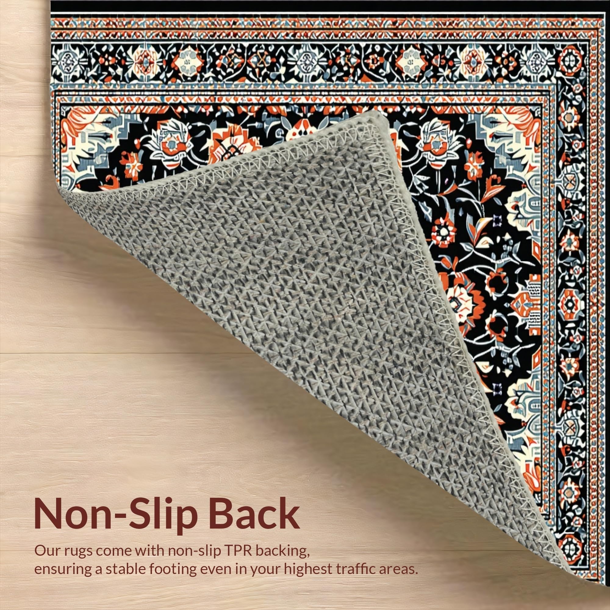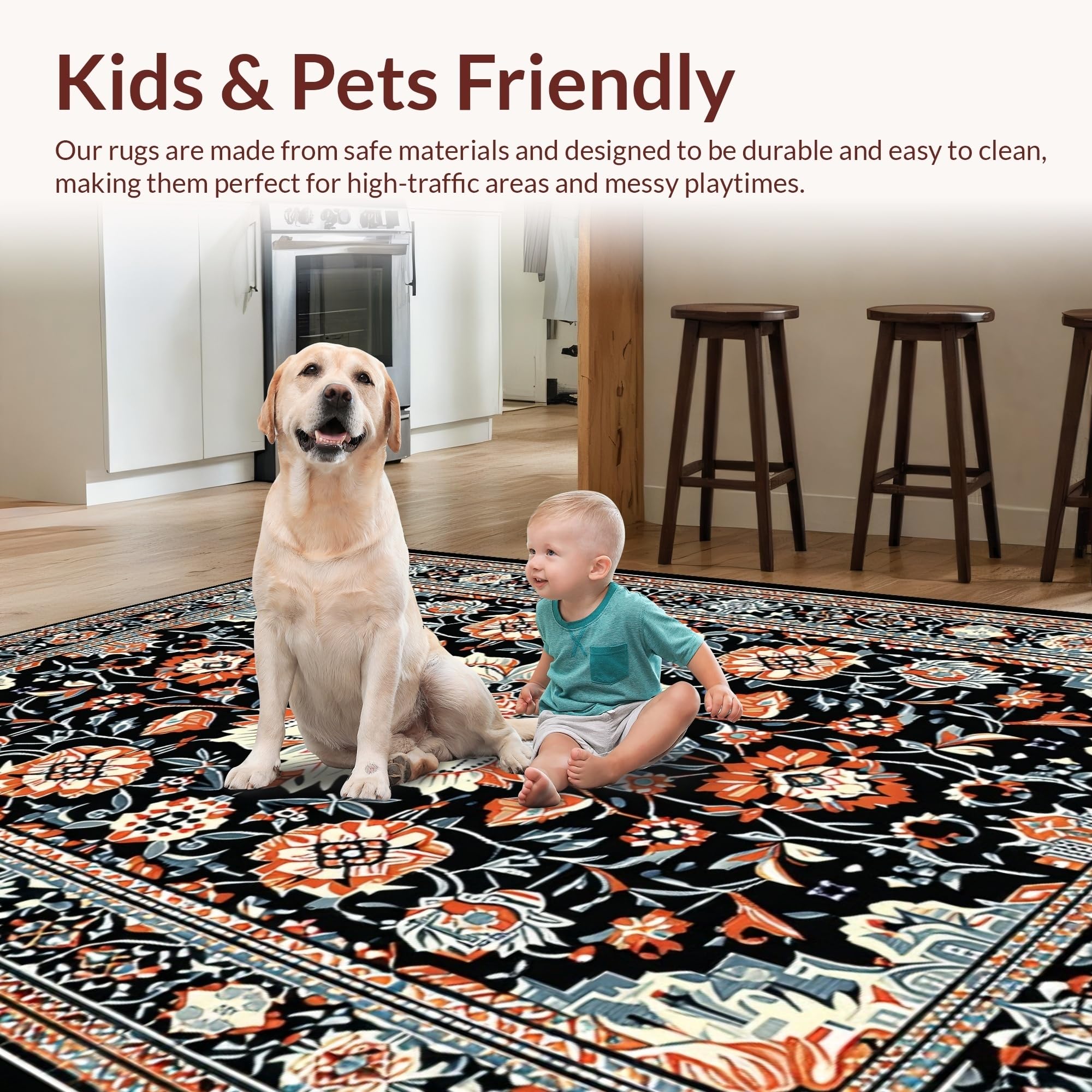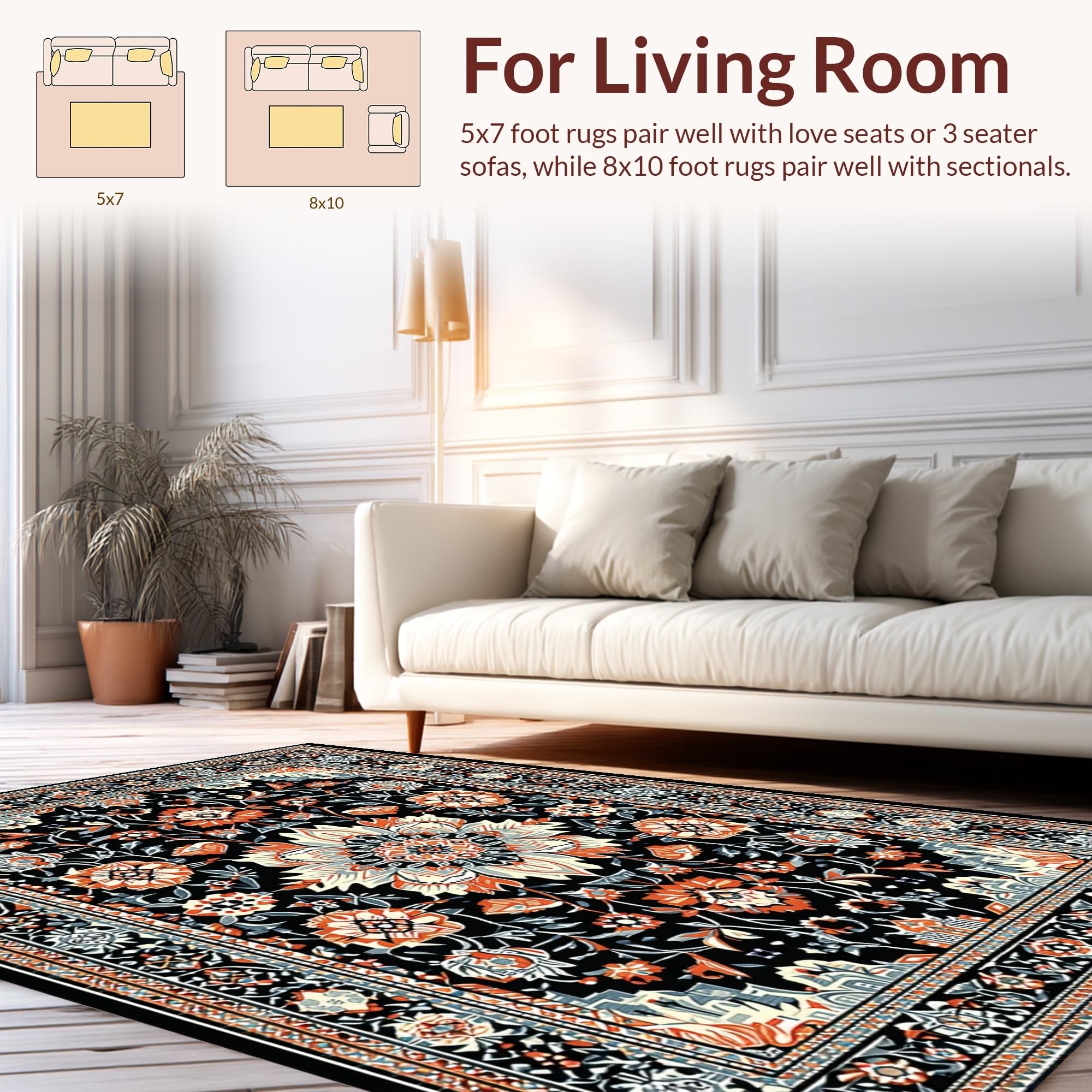 Ultra Soft Area Rug, Non Slip, Stain Resistant, Washable Area Rugs for Living Room, Bedroom, Striking Dark Floral Artistry(Black) Overview: