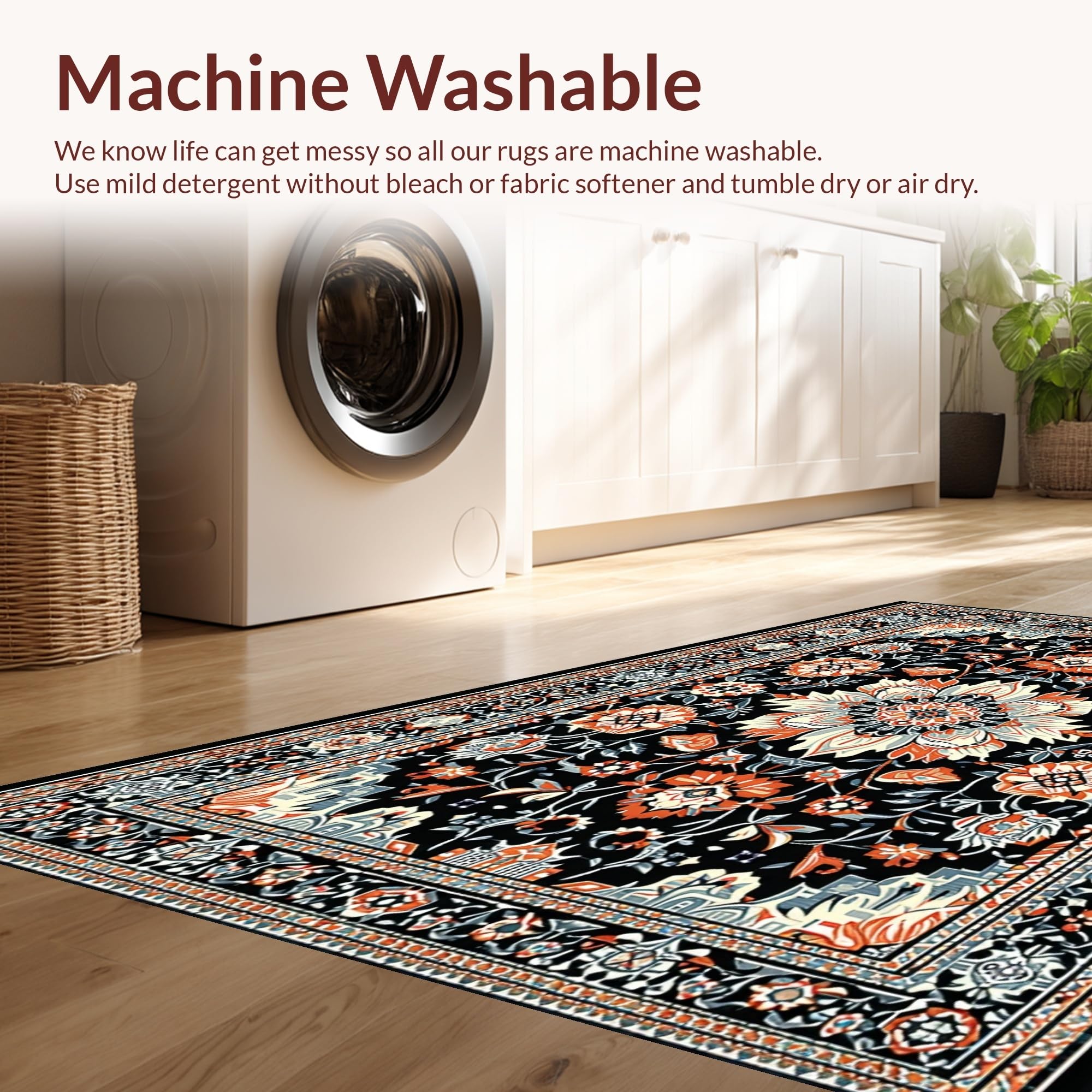 - Machine Washable: Our rugs can be easily thrown in the wash machine.