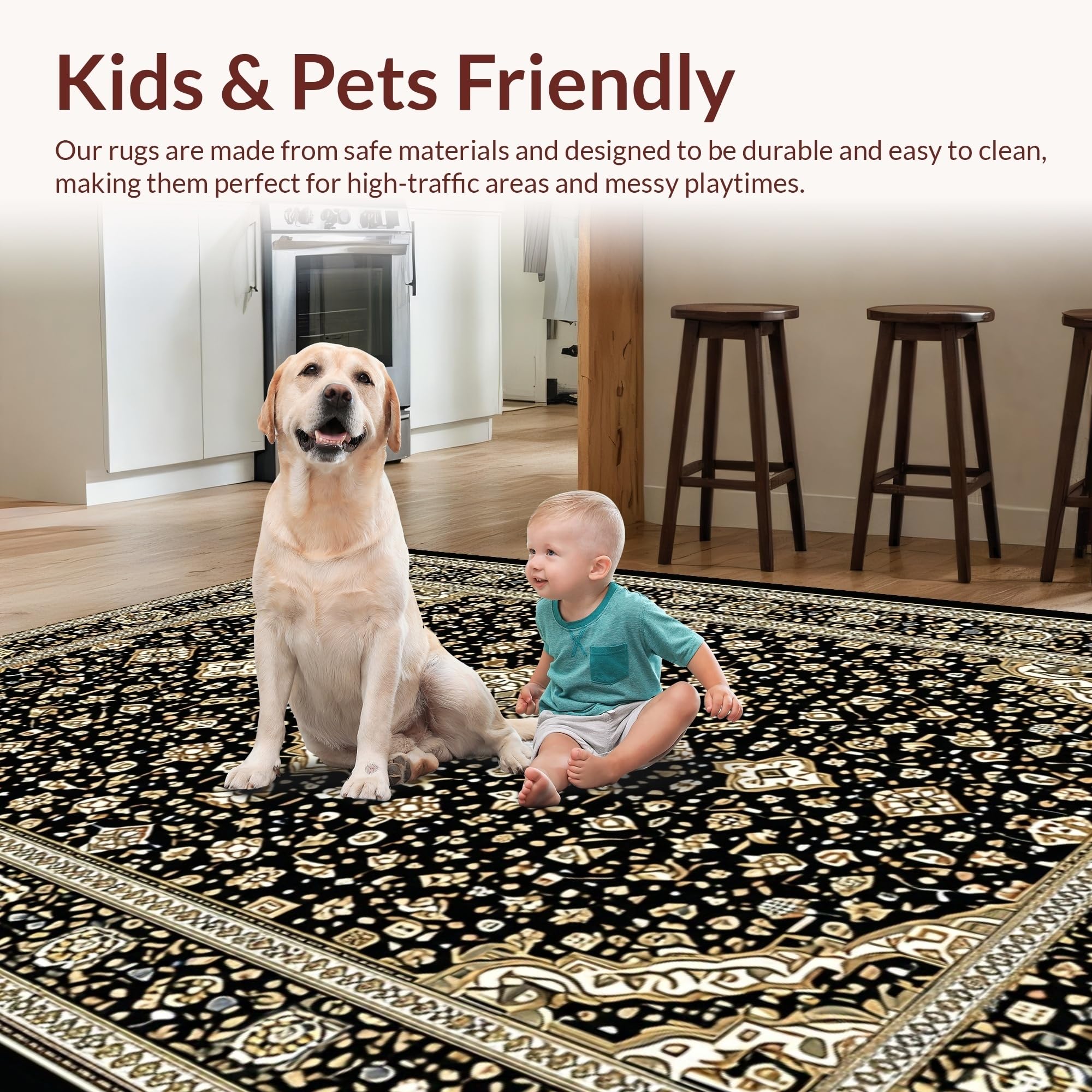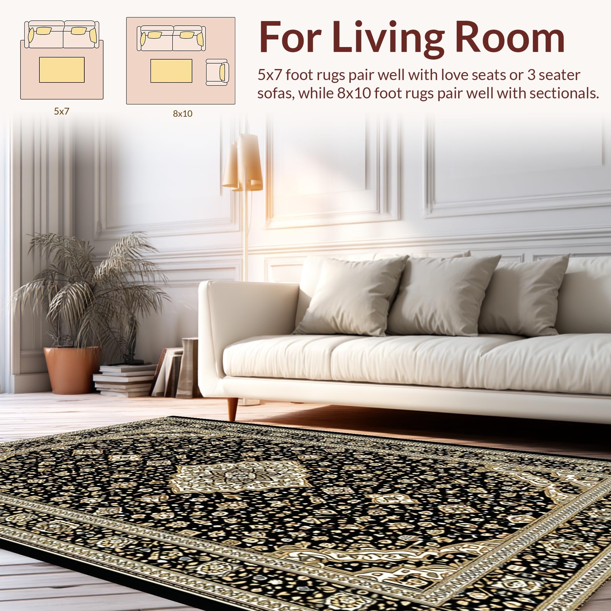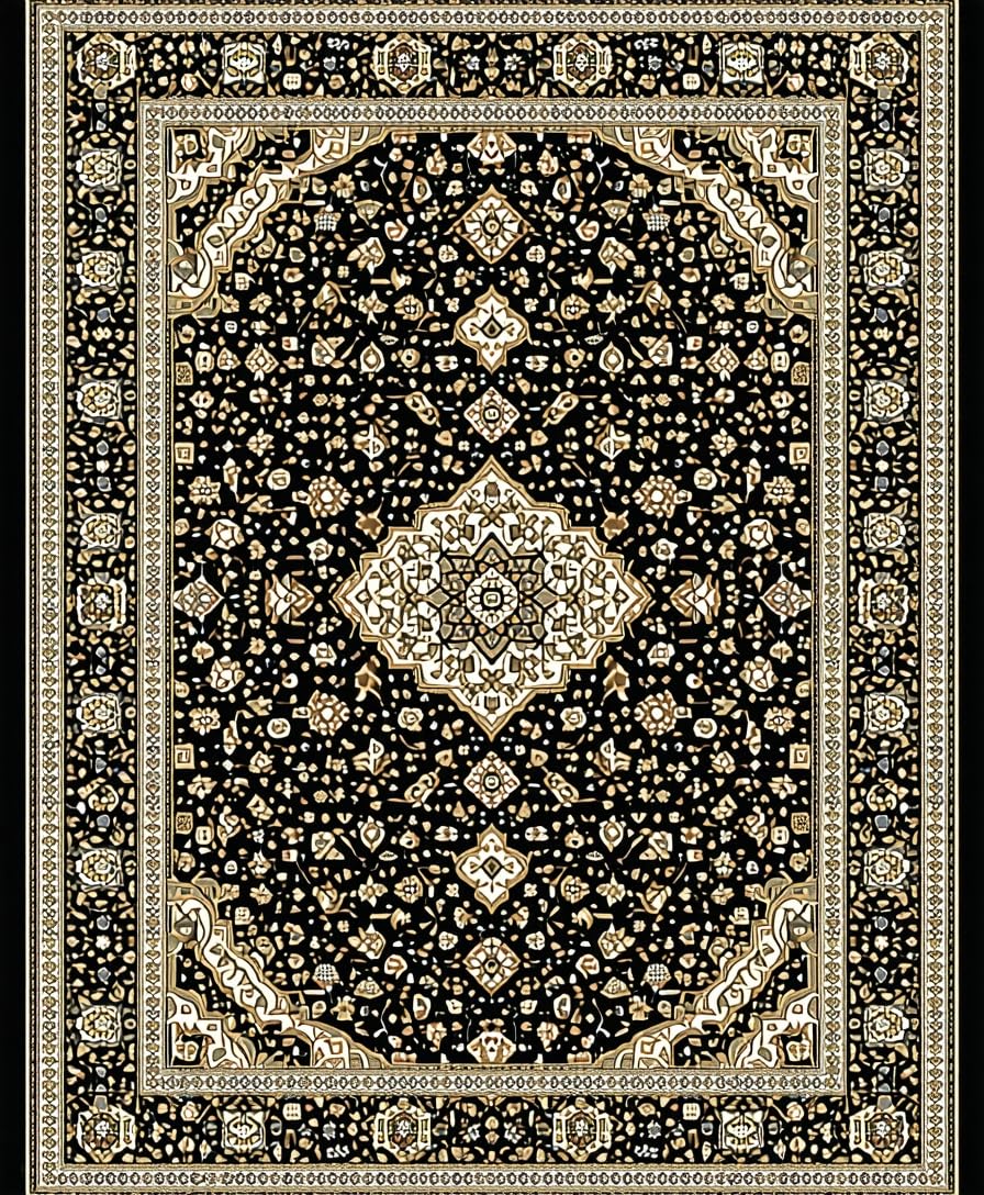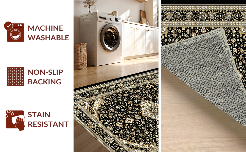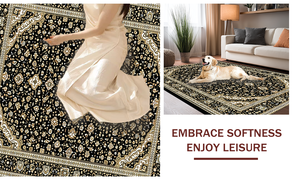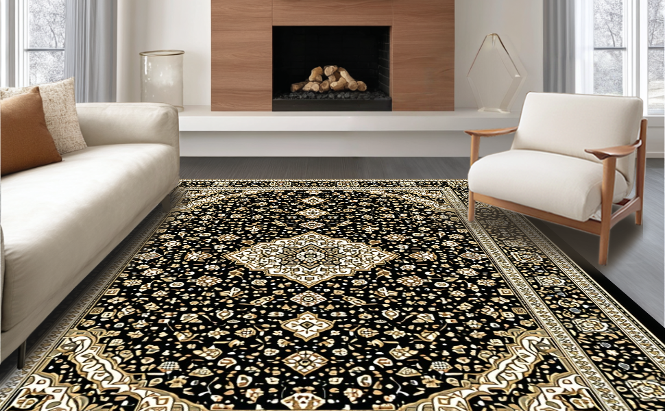 Ultra Soft Area Rug, Non Slip, Stain Resistant, Washable Area Rugs for Living Room, Bedroom, Striking Earth Tones with Modern Flair(Black) Overview: