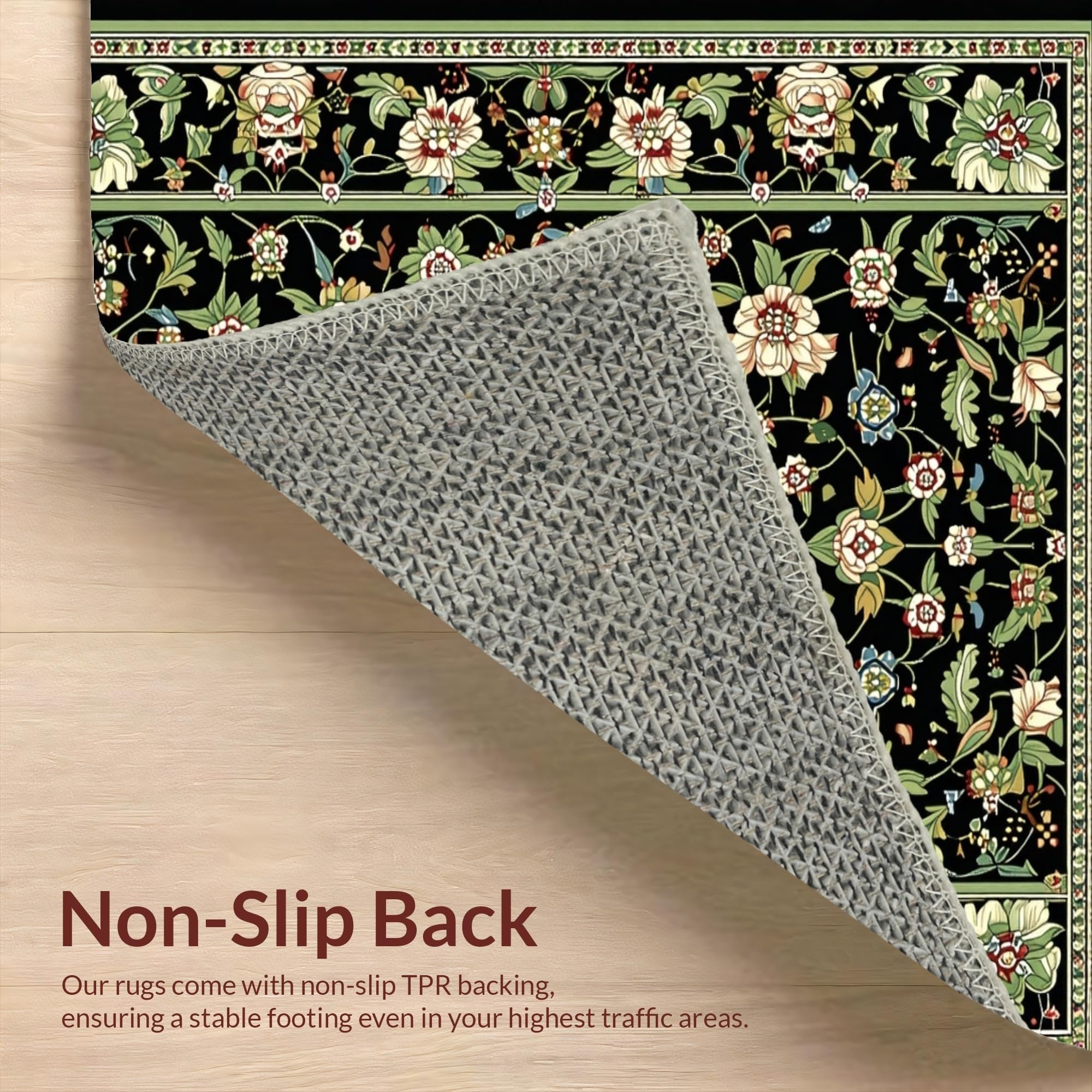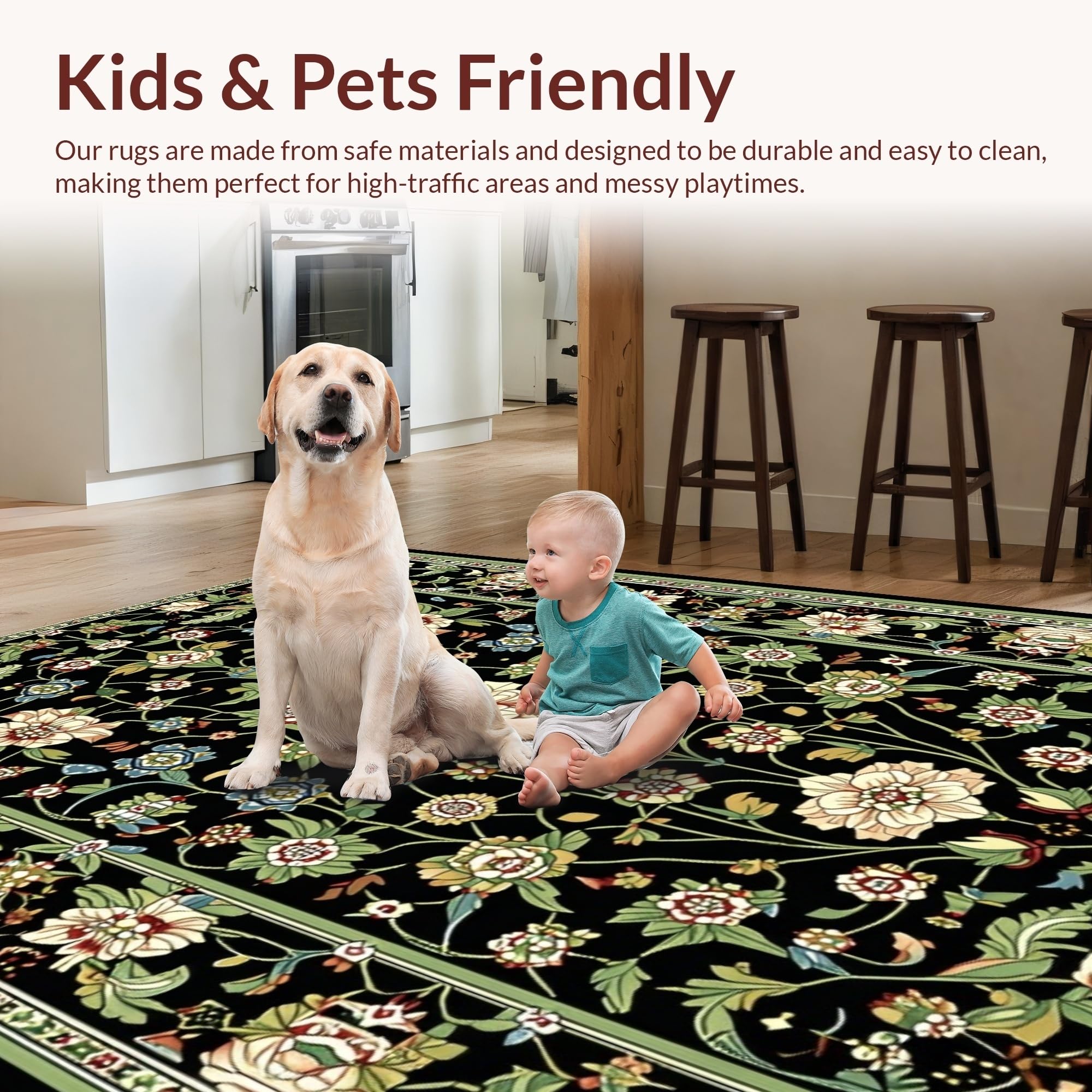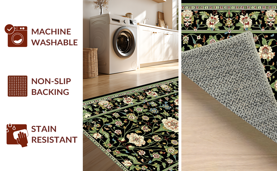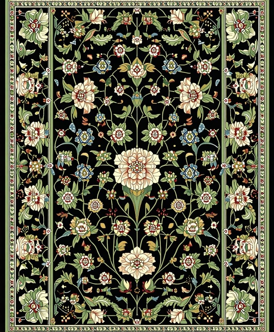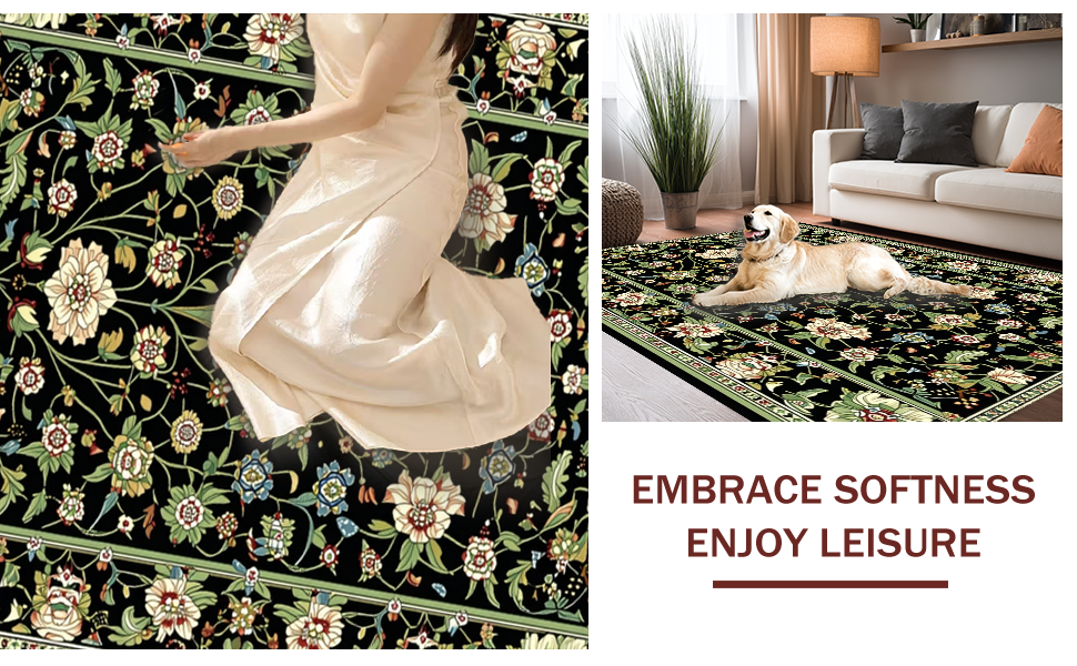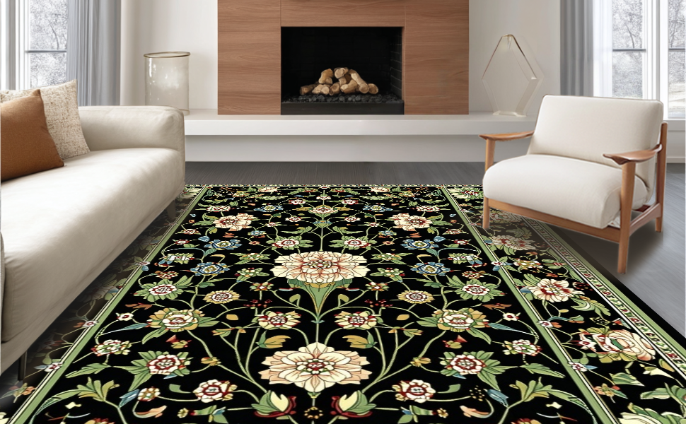 Ultra Soft Area Rug, Non Slip, Stain Resistant, Washable Area Rugs for Living Room, Bedroom, Striking Earthy Floral Aesthetics(Black) Overview: