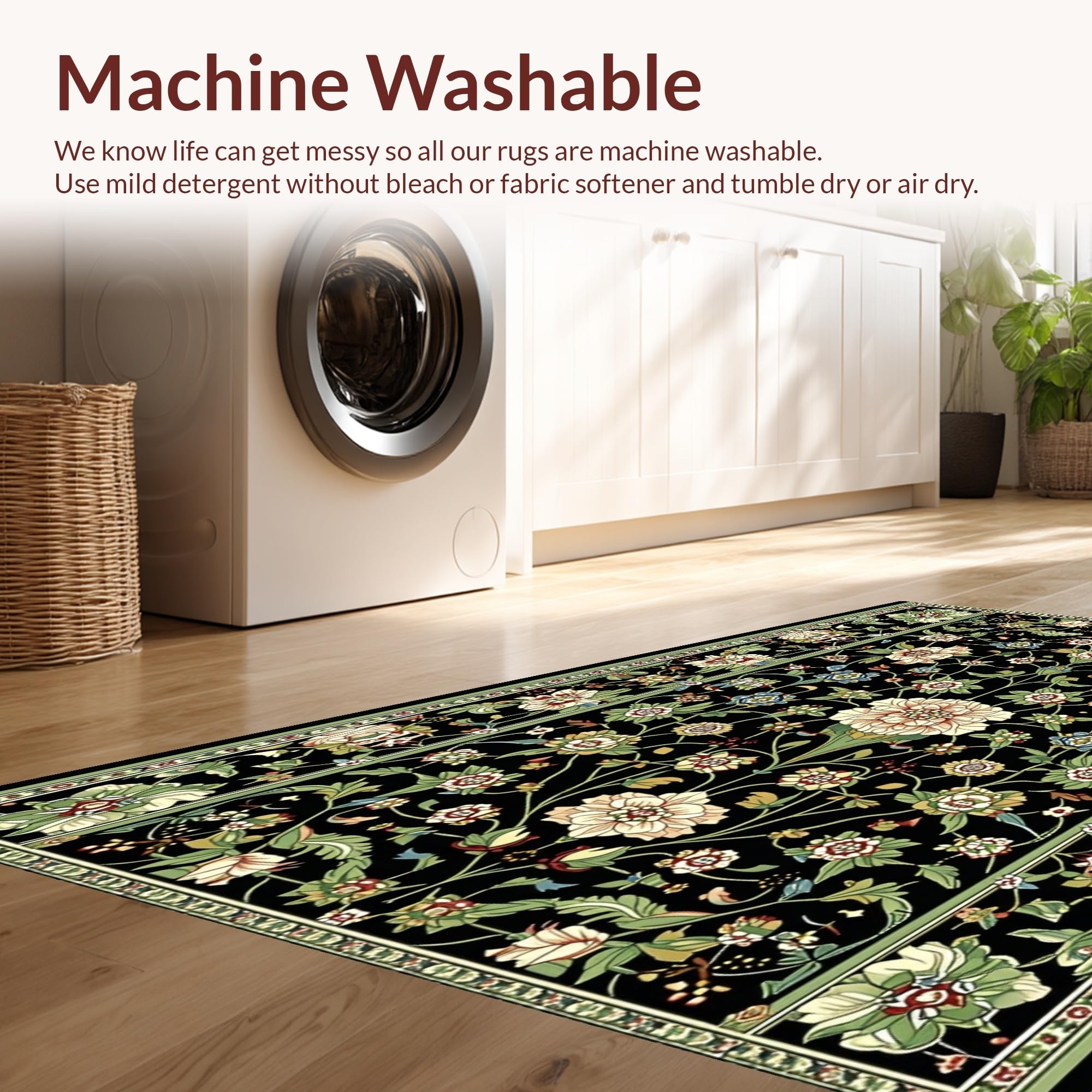 - Machine Washable: Our rugs can be easily thrown in the wash machine.
