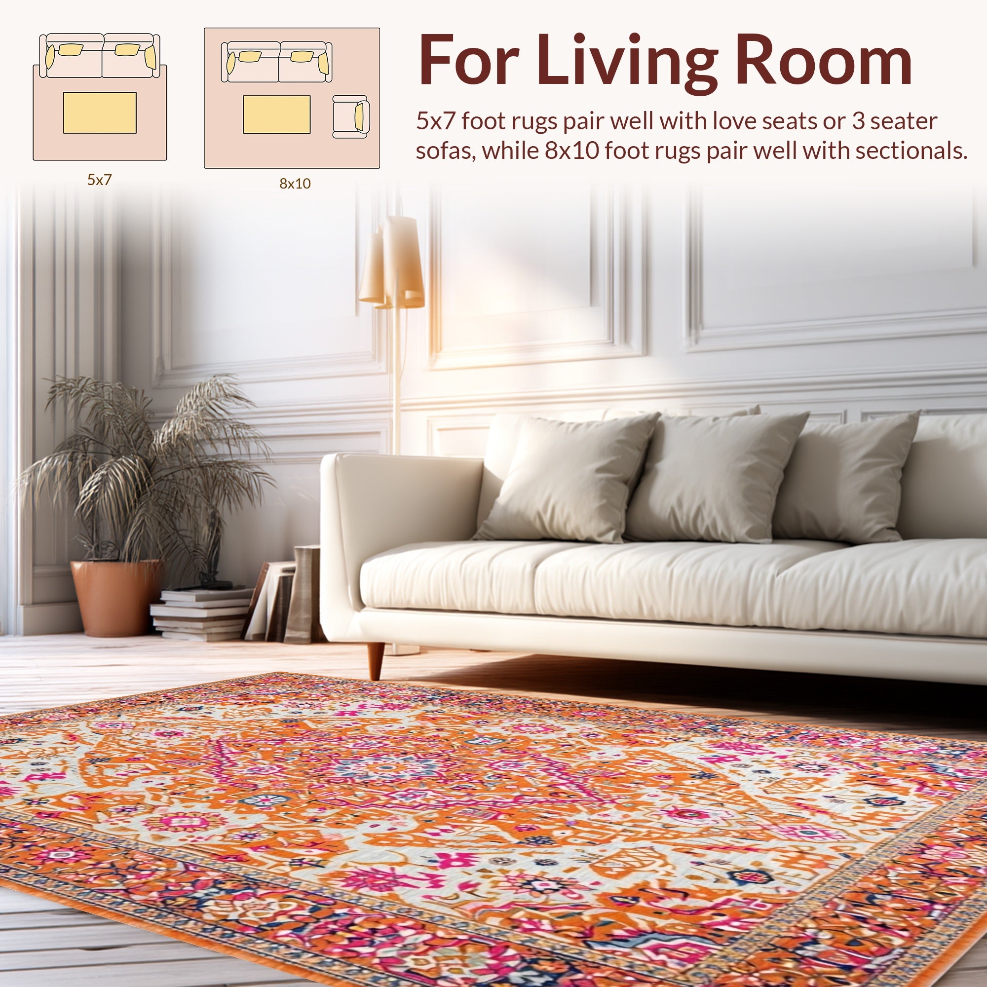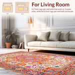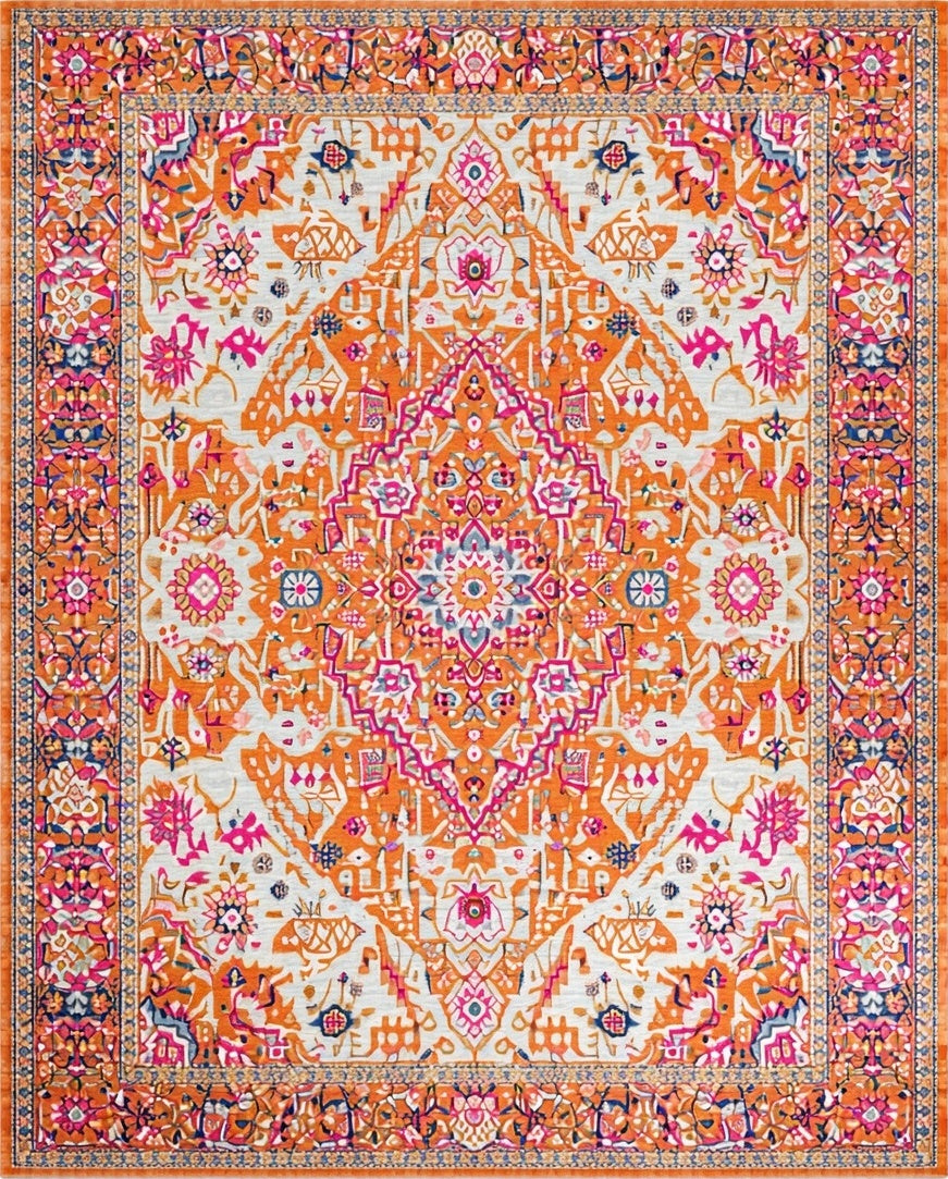 Flatwoven High Traffic Area Rug, Striking Eclectic Floral, Non Slip, Stain Resistant, Washable Area Rugs for Living Room, Bedroom (Orange) Overview:
