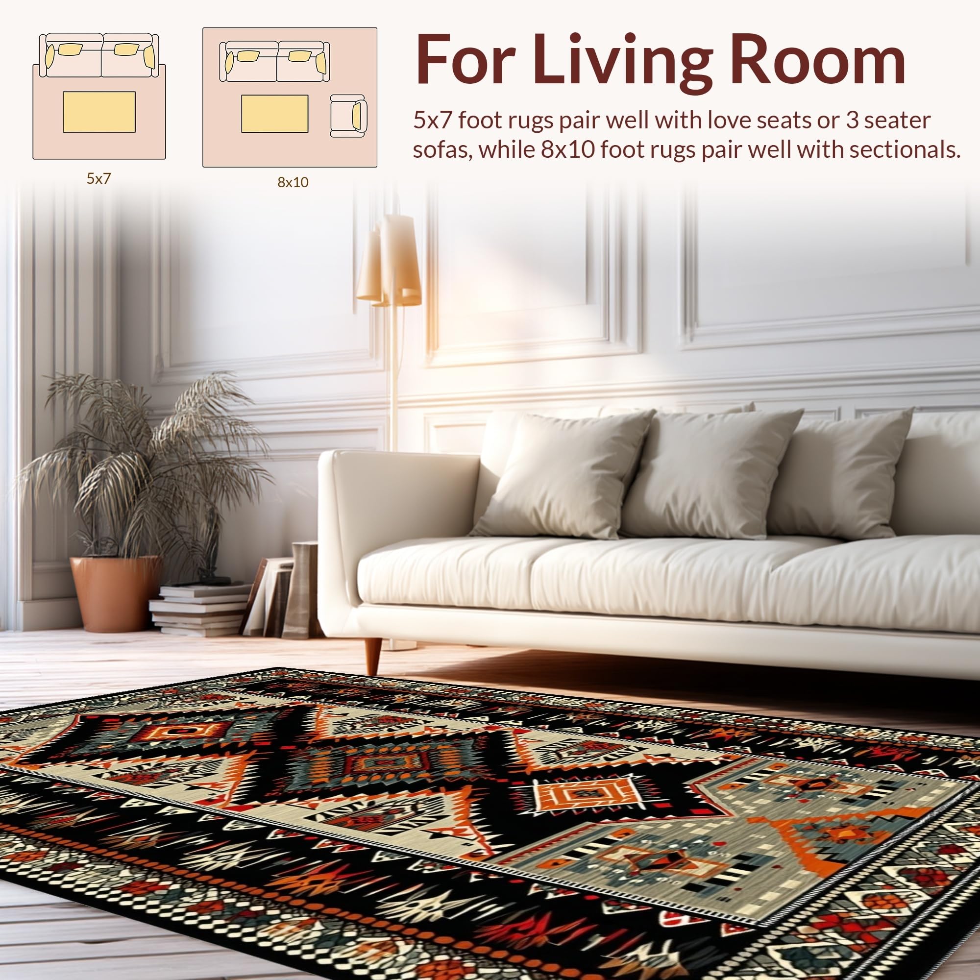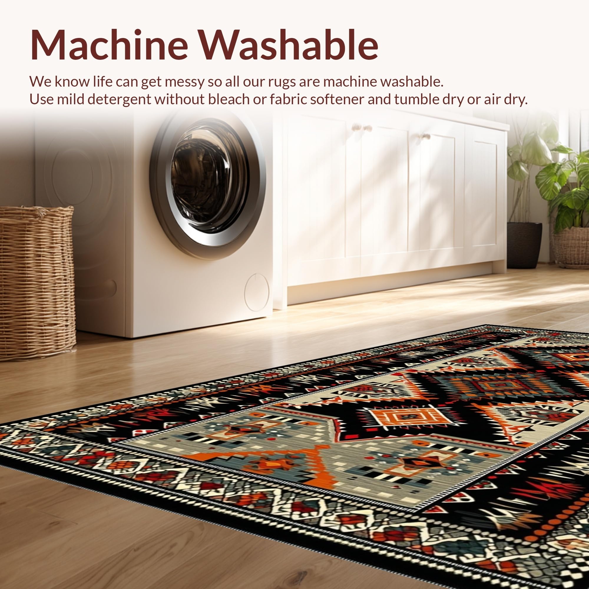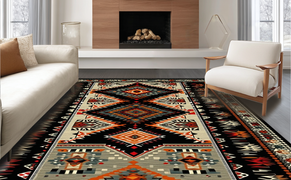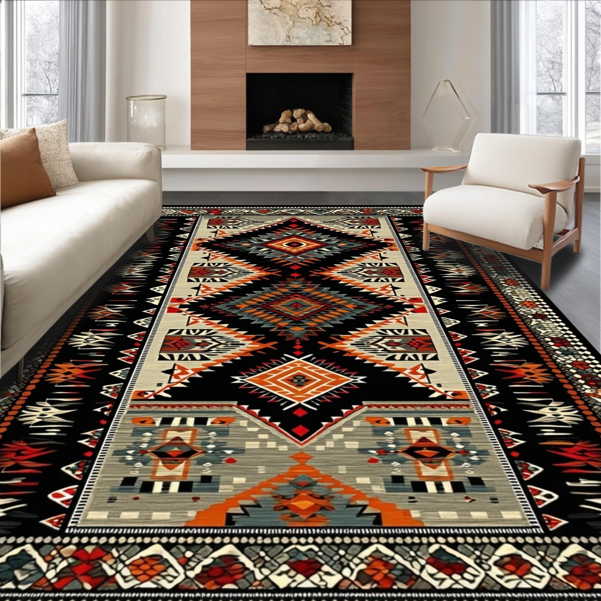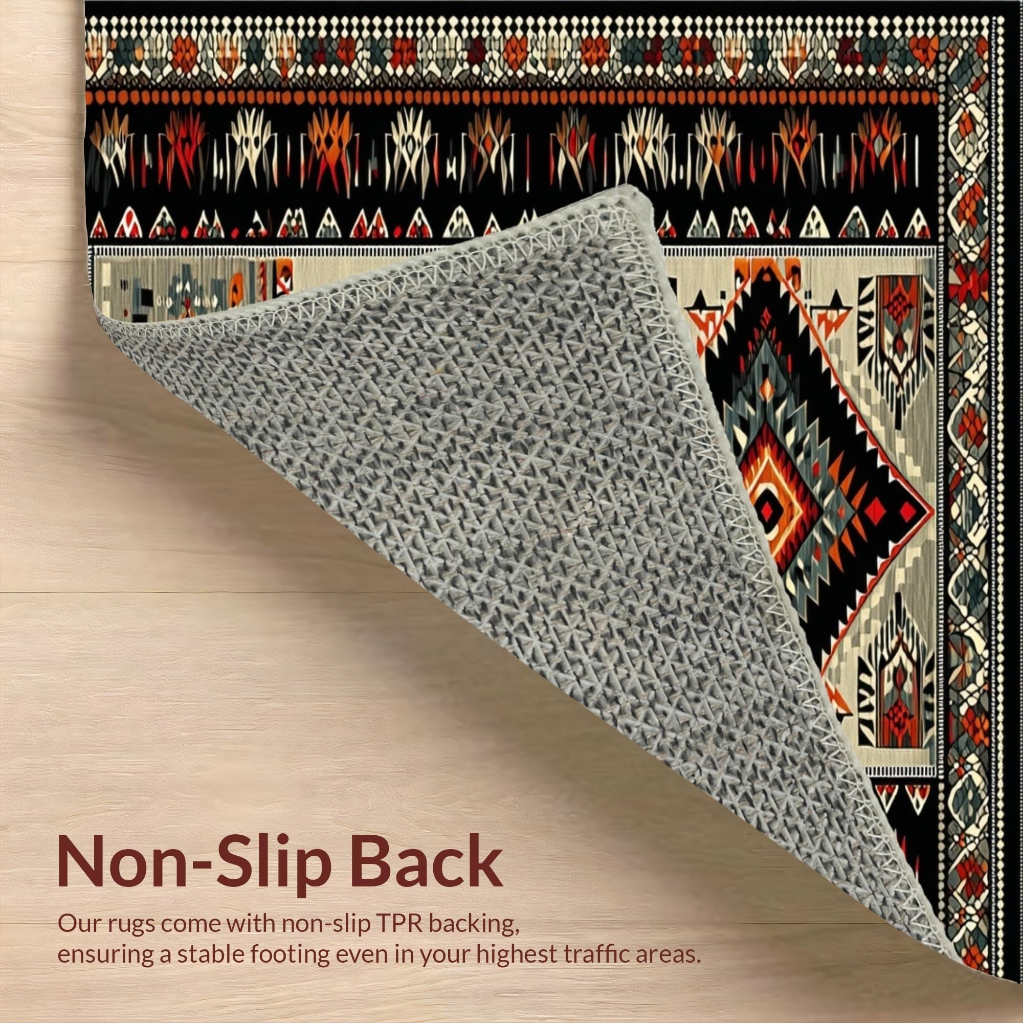 Ultra Soft Area Rug, Non Slip, Stain Resistant, Washable Area Rugs for Living Room, Bedroom, Striking Ethnic Diamond Pattern(Black) Overview: