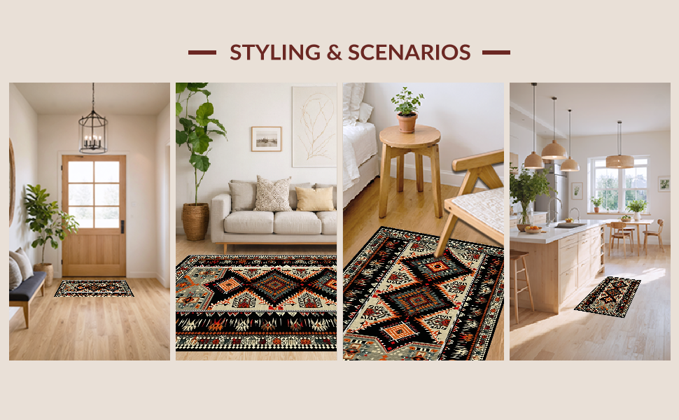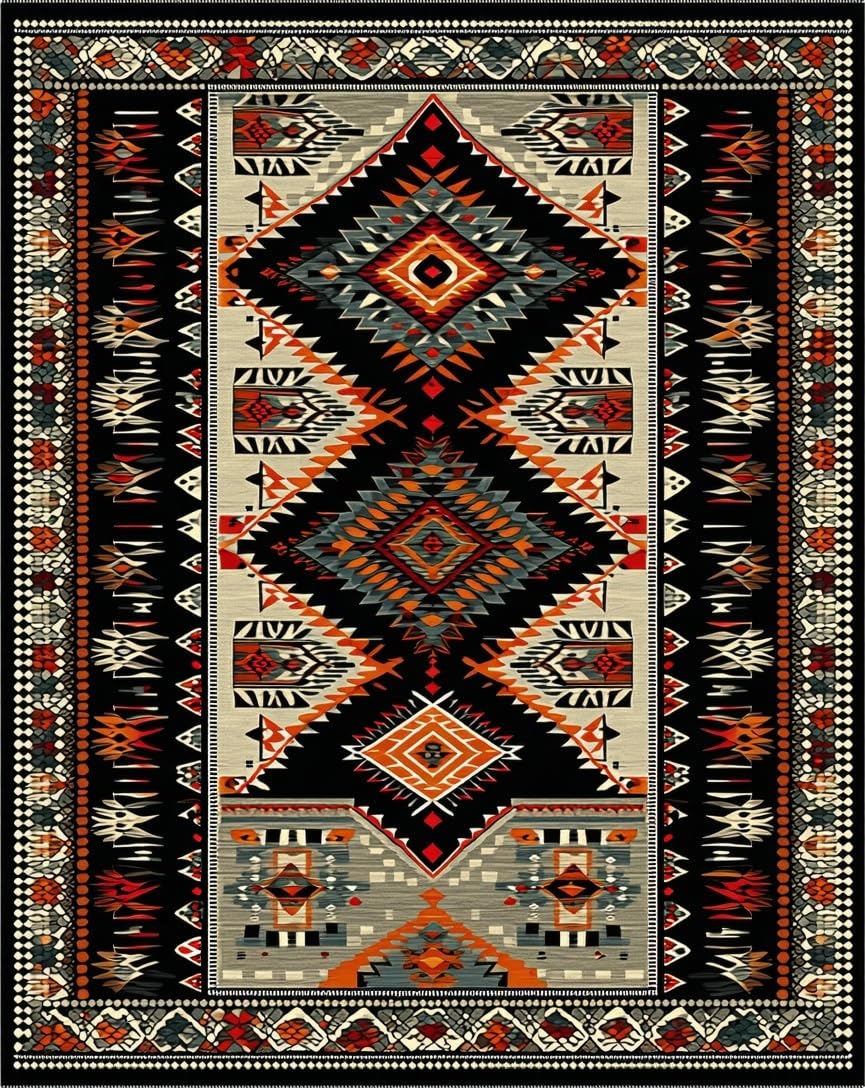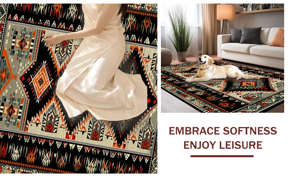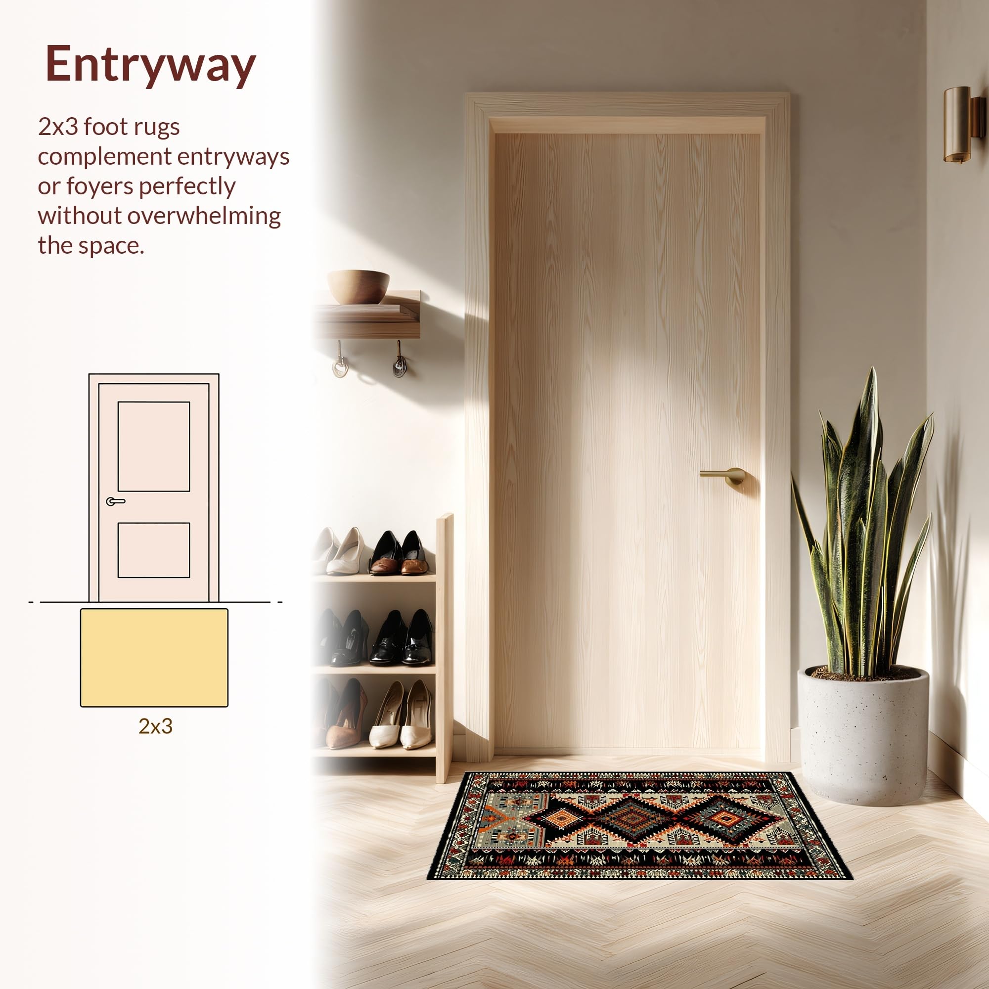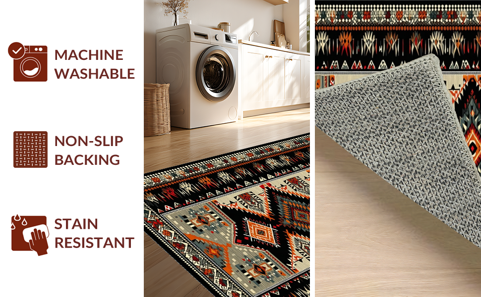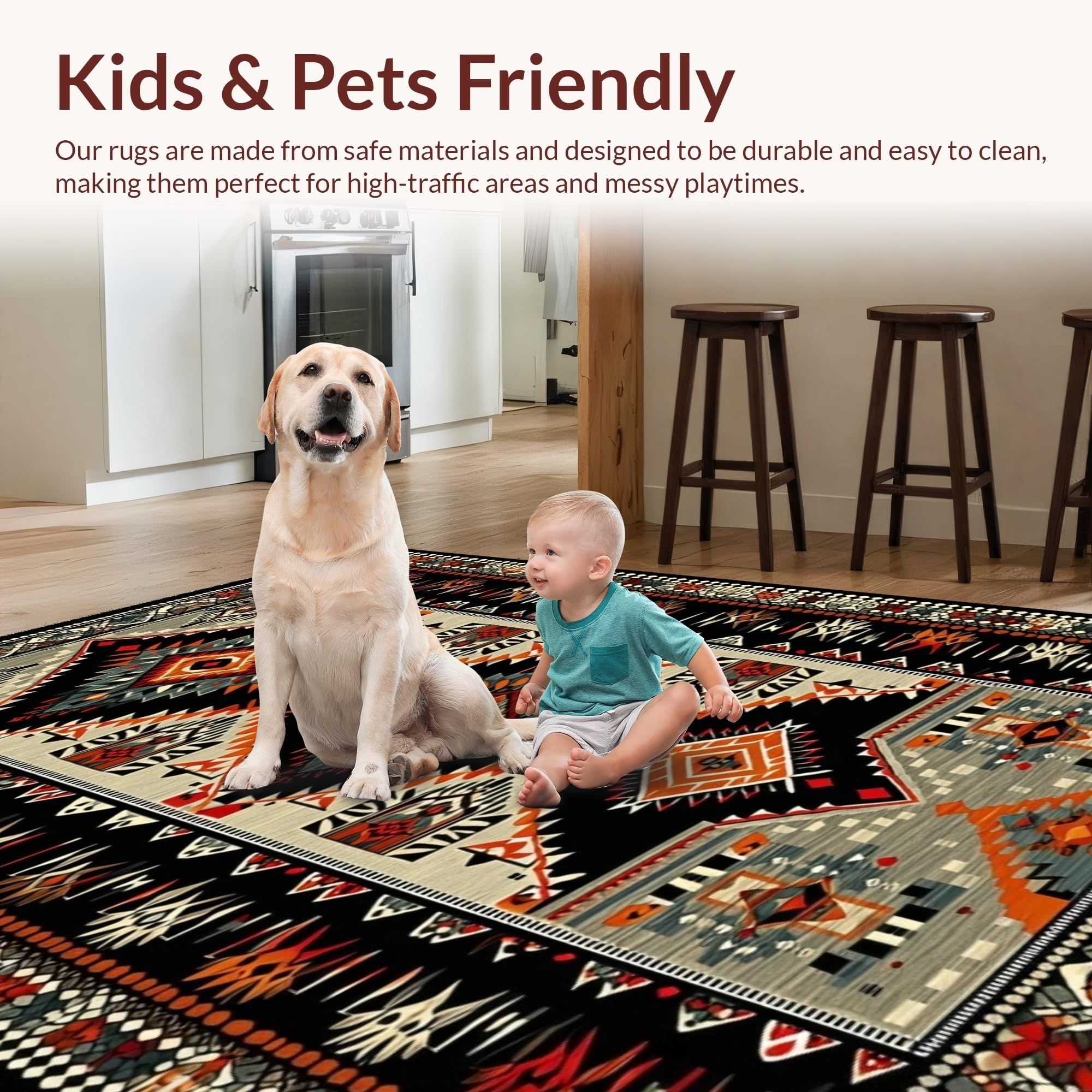 Ultra Soft Area Rug, Non Slip, Stain Resistant, Washable Area Rugs for Living Room, Bedroom, Striking Ethnic Diamond Pattern(Black) Overview:
