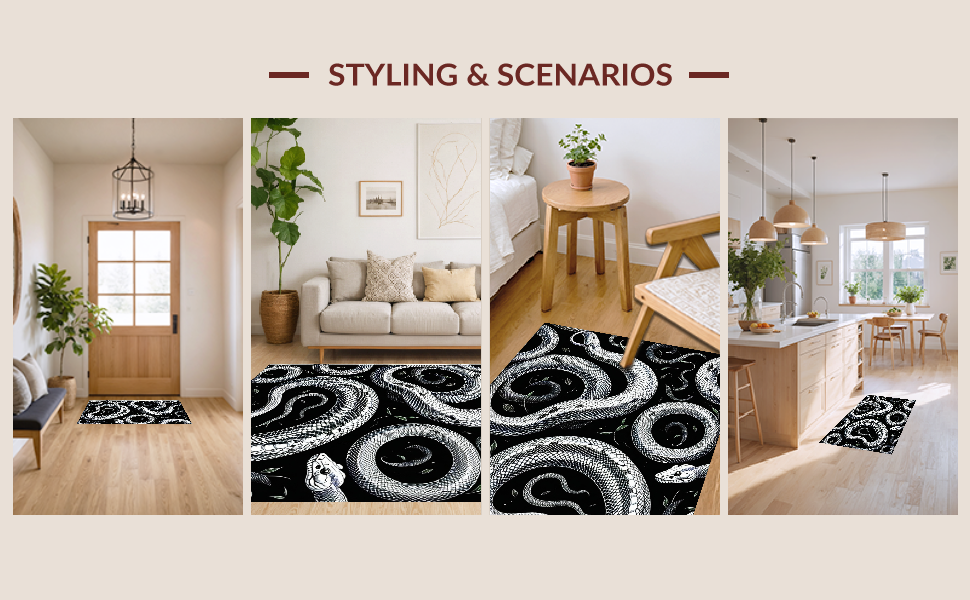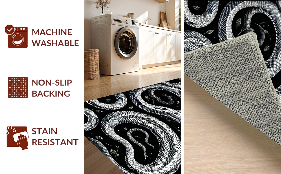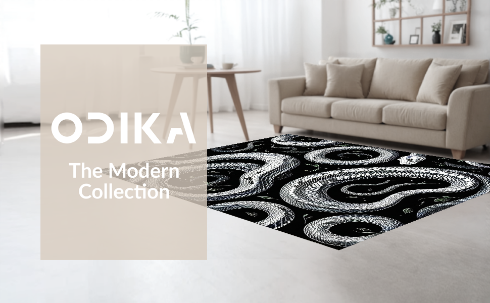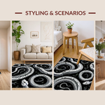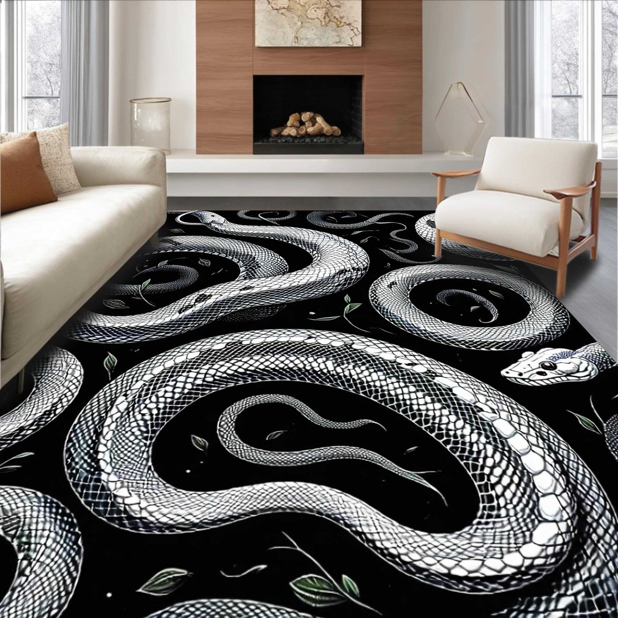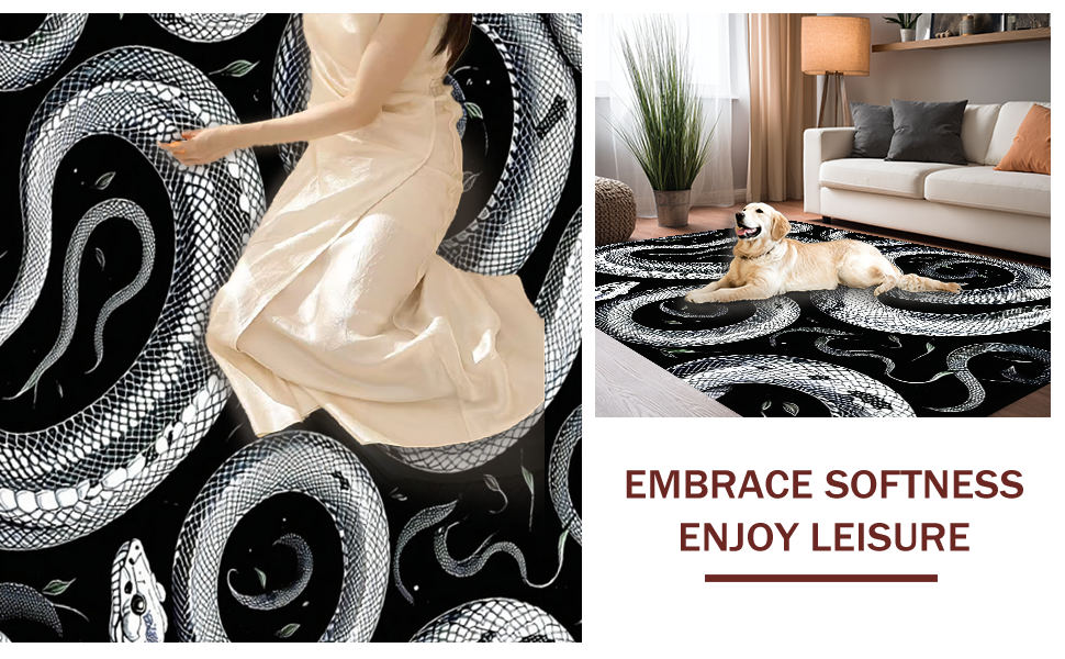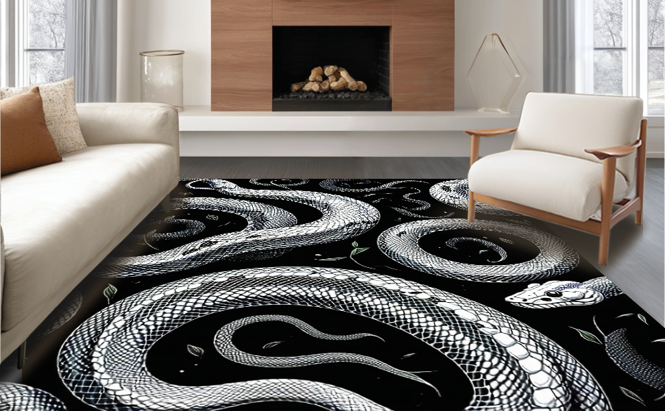 Ultra Soft Area Rug, Non Slip, Stain Resistant, Washable Area Rugs for Living Room, Bedroom, Striking Geometric Snake Illustration(Black) Overview: