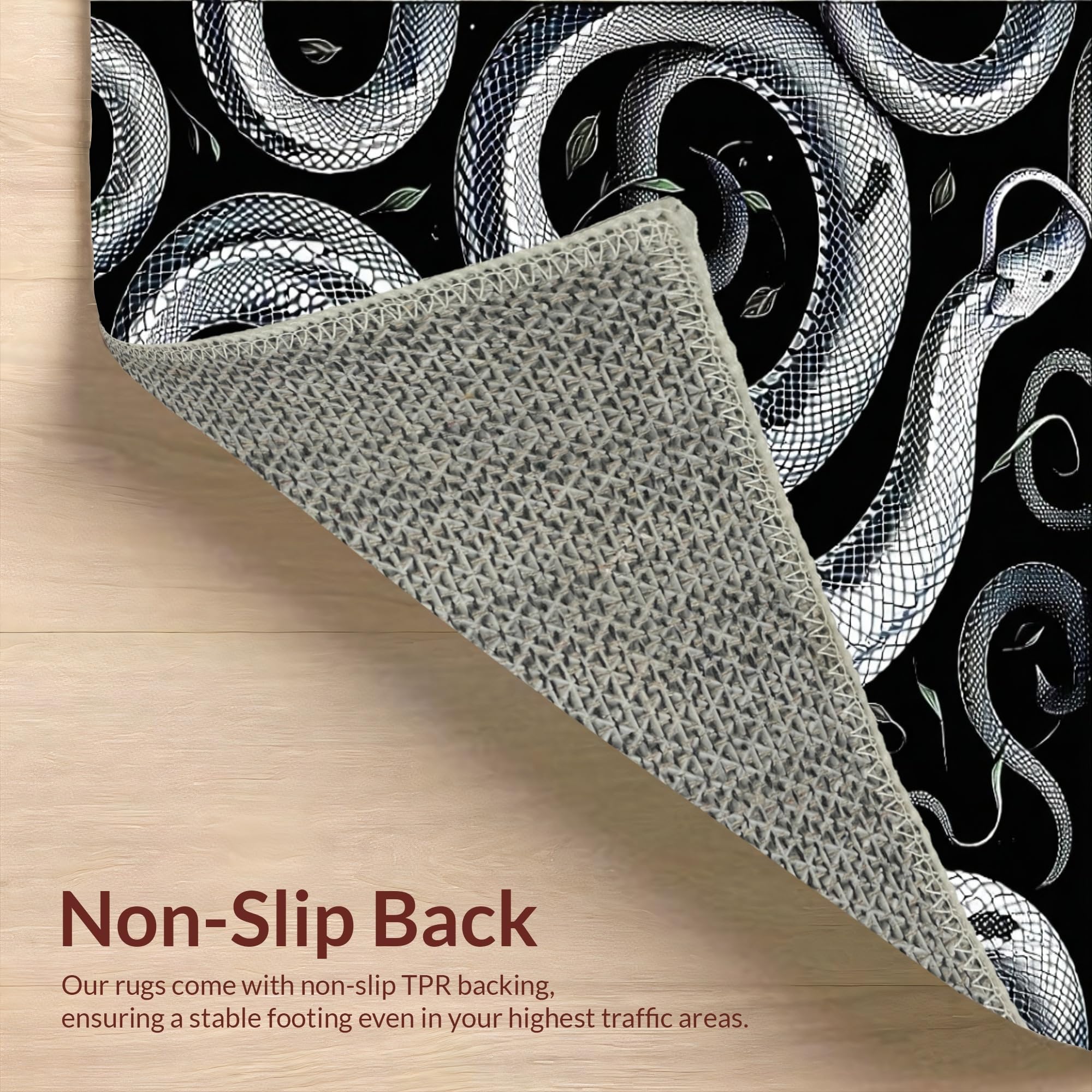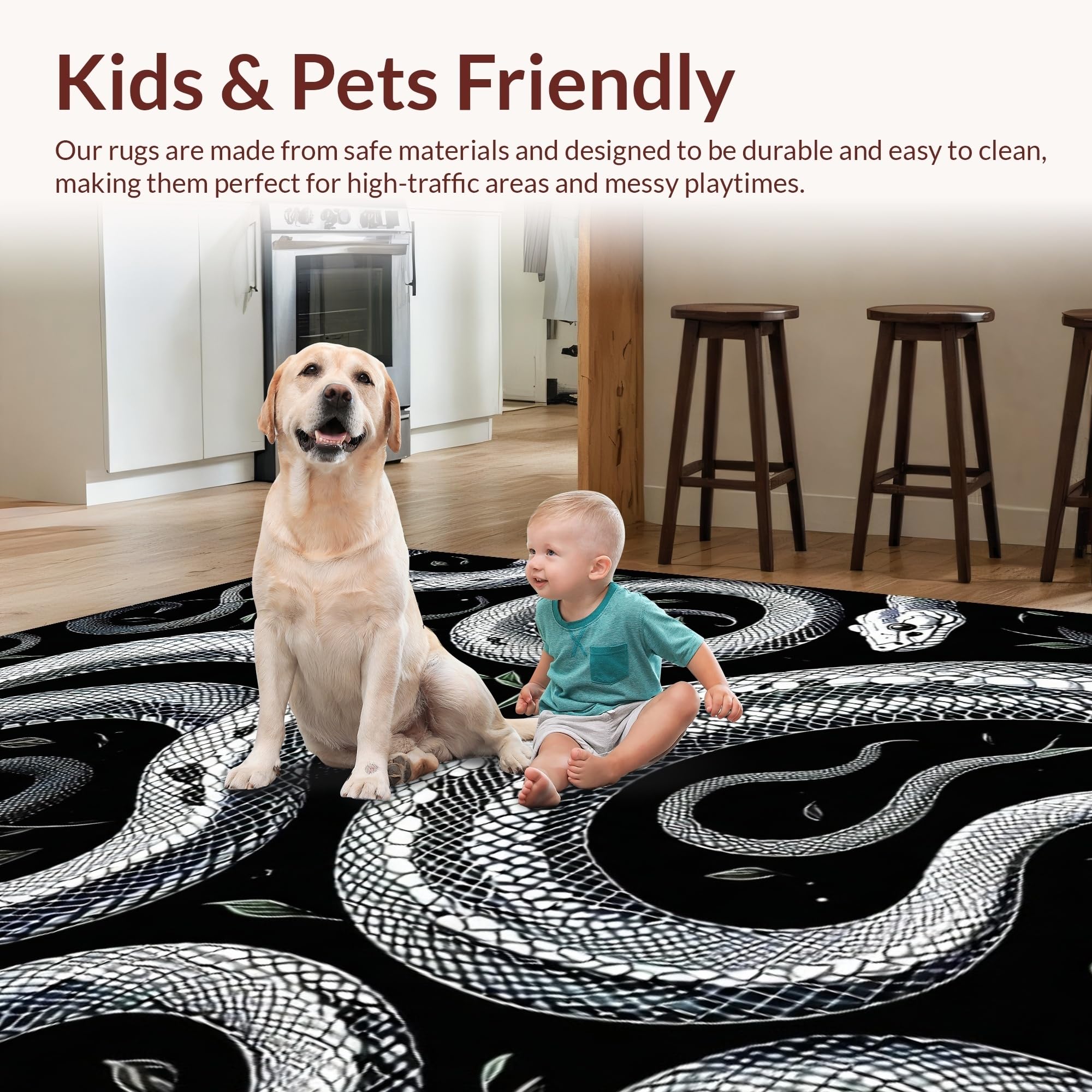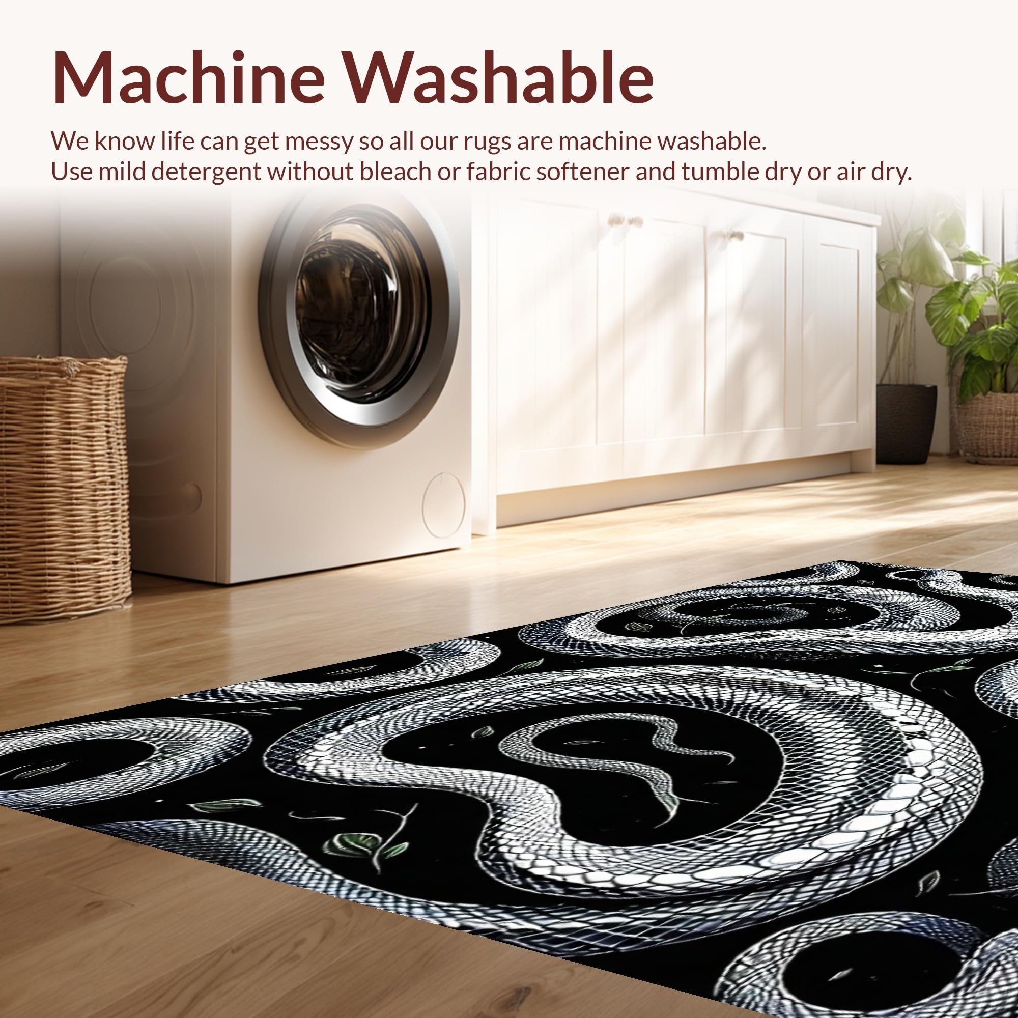 Ultra Soft Area Rug, Non Slip, Stain Resistant, Washable Area Rugs for Living Room, Bedroom, Striking Geometric Snake Illustration(Black) Overview: